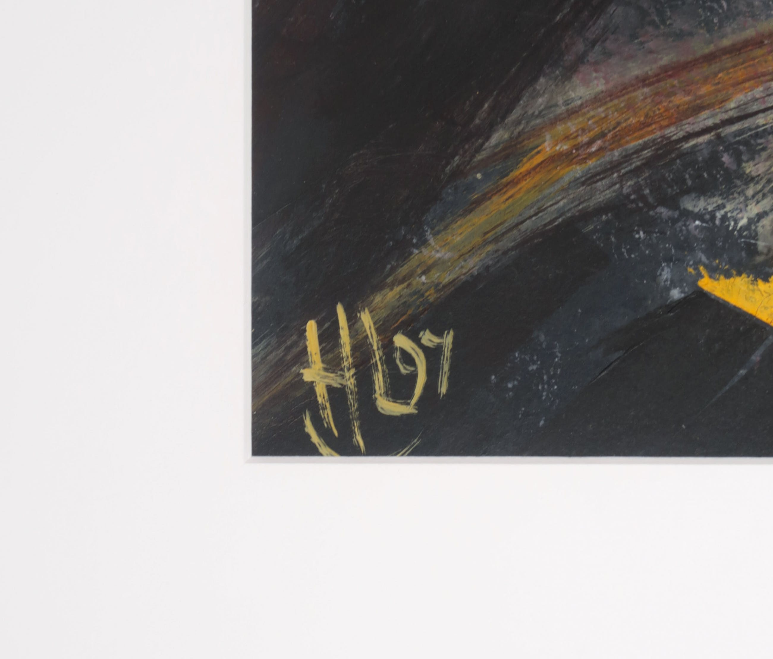 Het werk is bevestigd in een passe-partout. De afmetingen van het passe-partout zijn: 85 x 67,5 cm