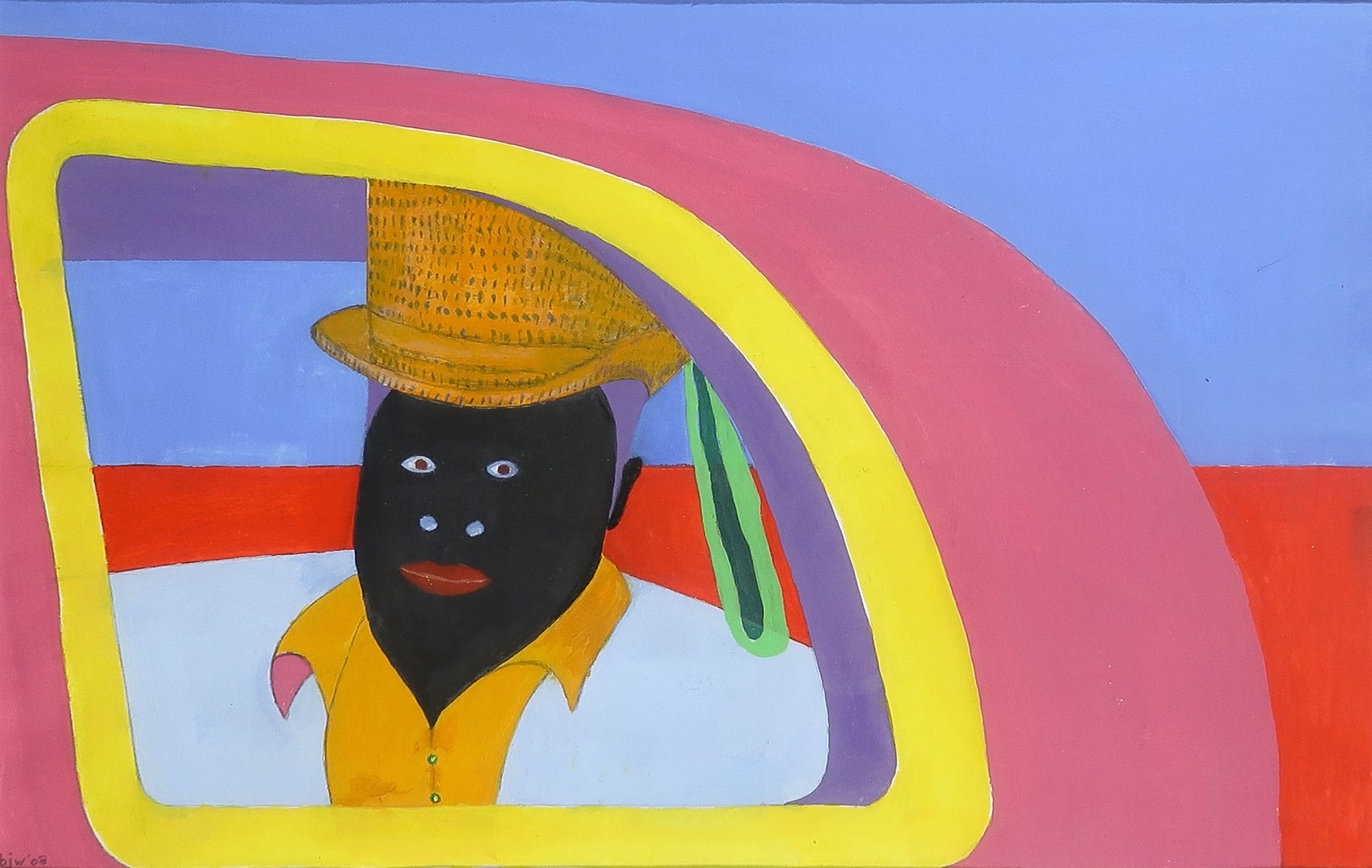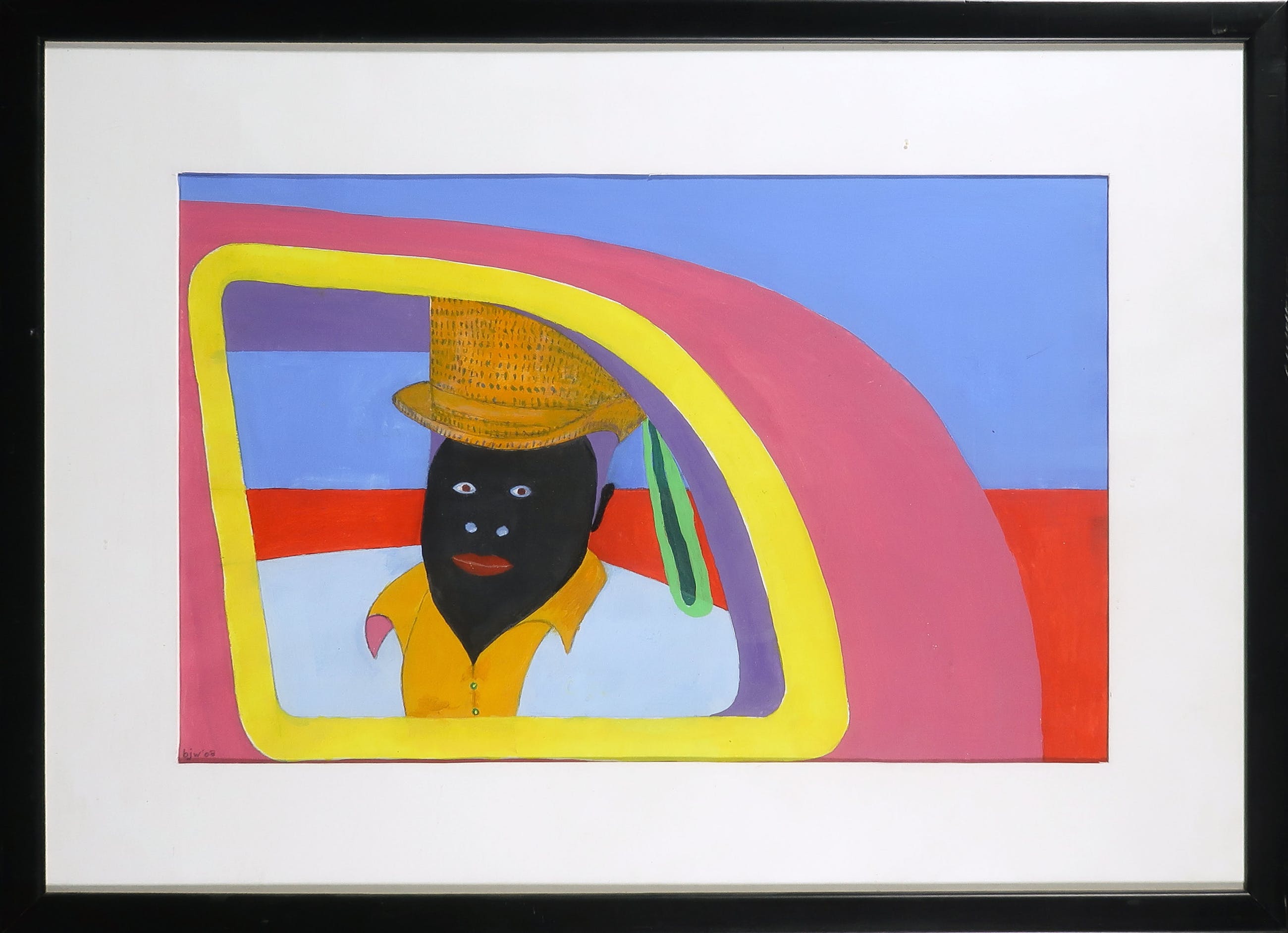 Onbekend - Acryl op papier, Zonder titel - Ingelijst - Verkocht