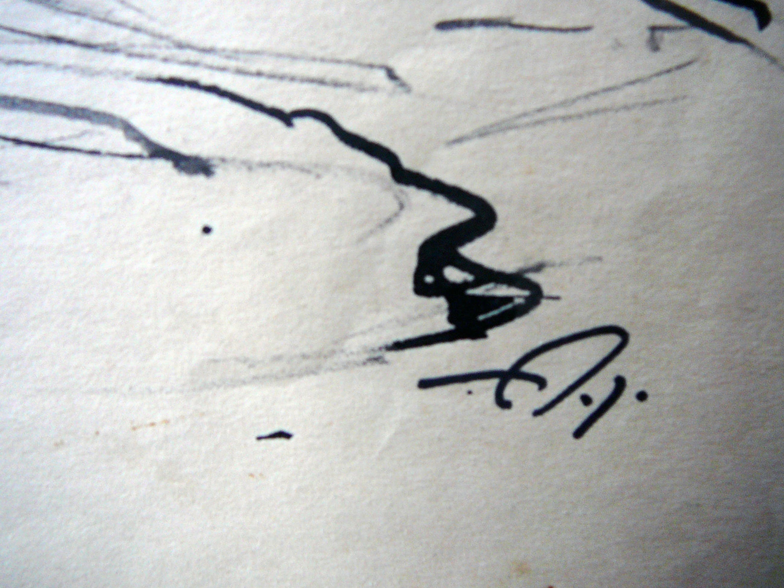 Onleesbaar gesigneerde inkttekening met een voorstelling van een jongeman op bed. Netto maat tekening 25 x 40 cm binnen een gesloten passe-partout van 50 x 65 cm. Datering naar schatting circa 1960.