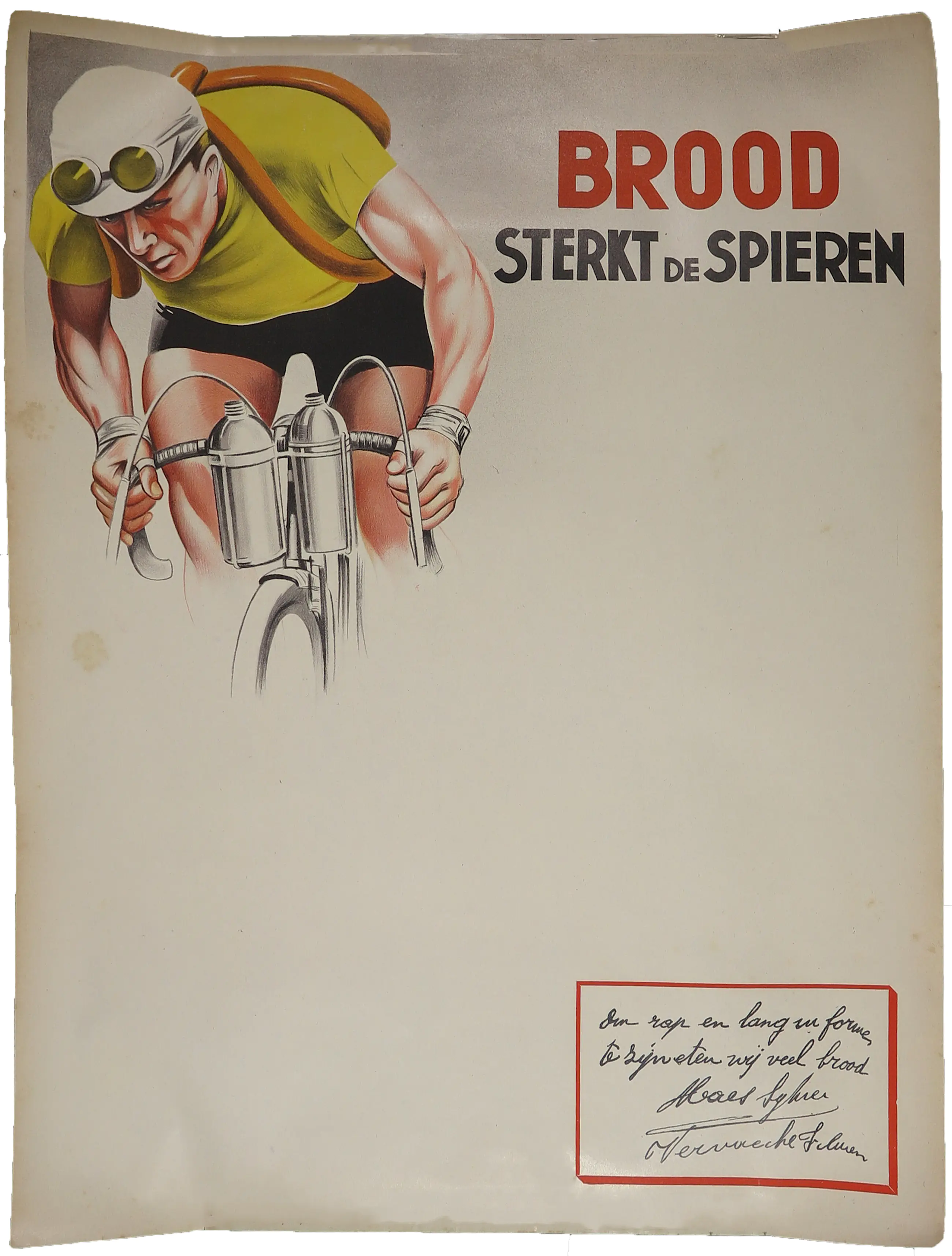 | Het papier is verkleurd, op de affiche bevinden zich veel vlekjes. Het papier heeft altijd opgerold gezeten en krult dus erg op. | |||||||||||