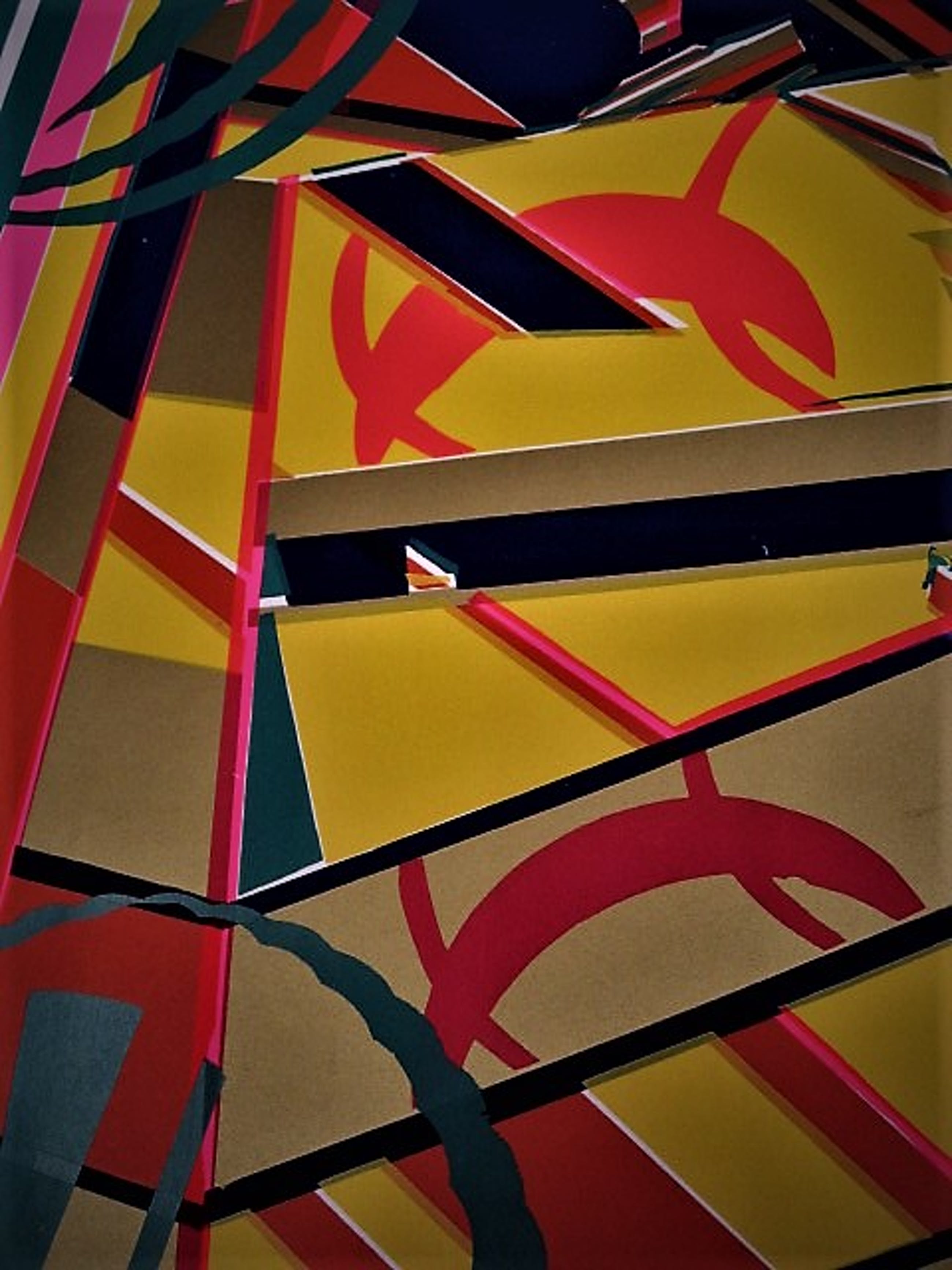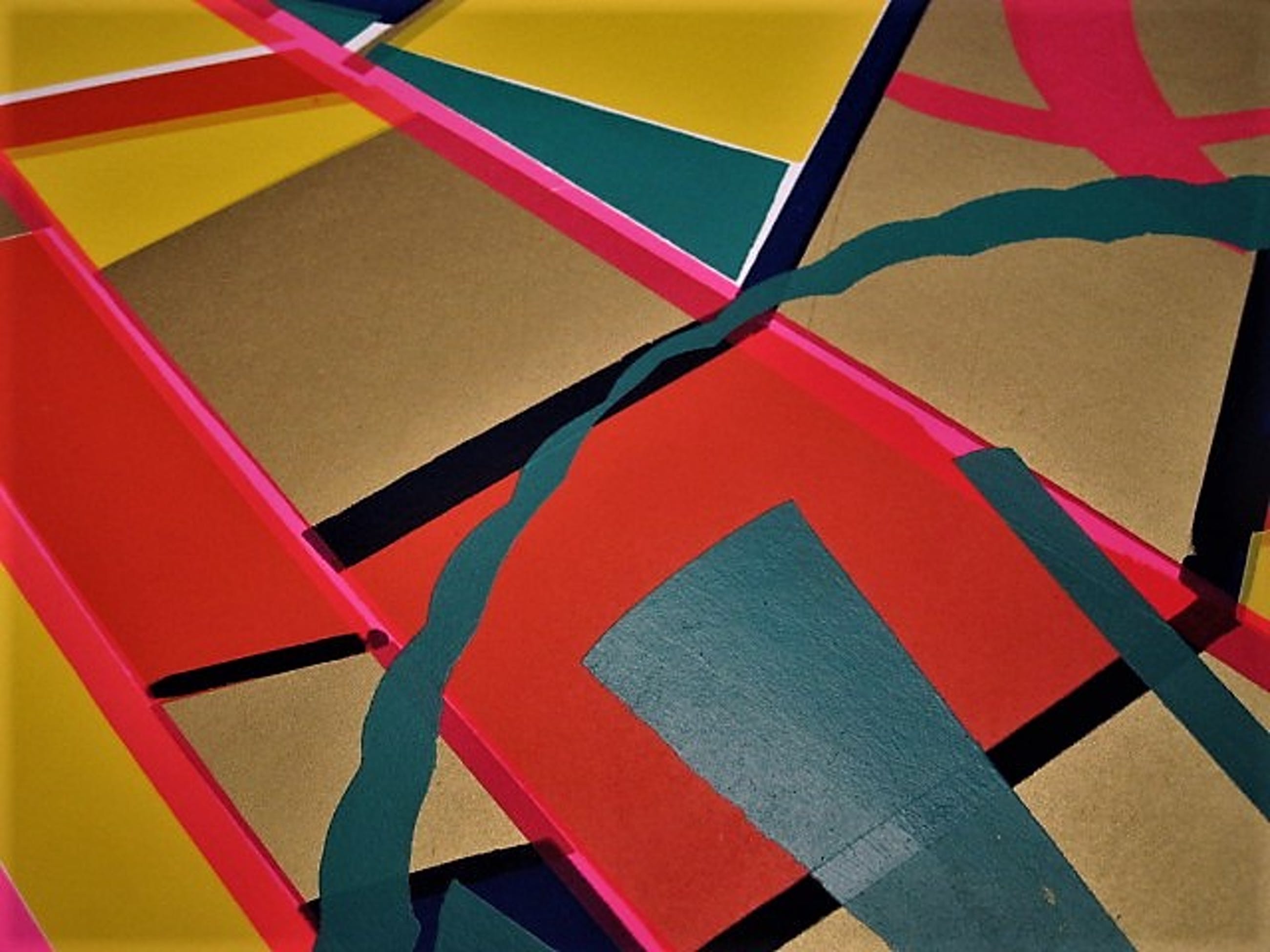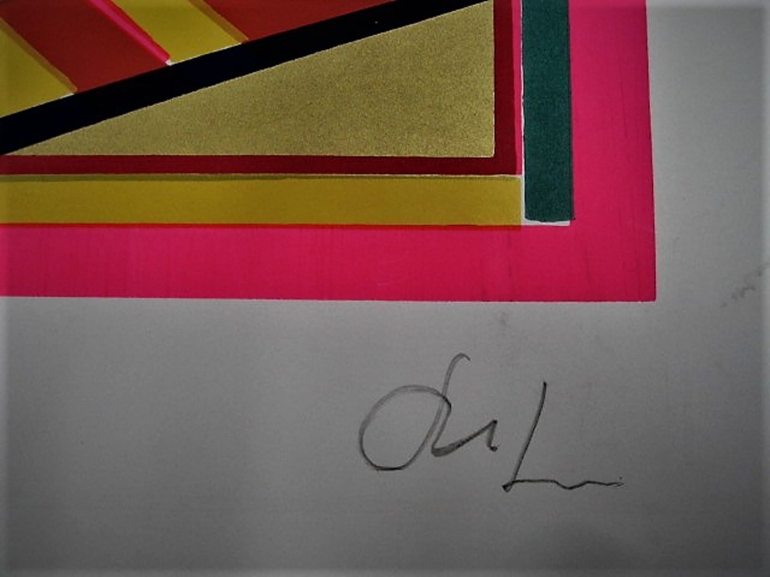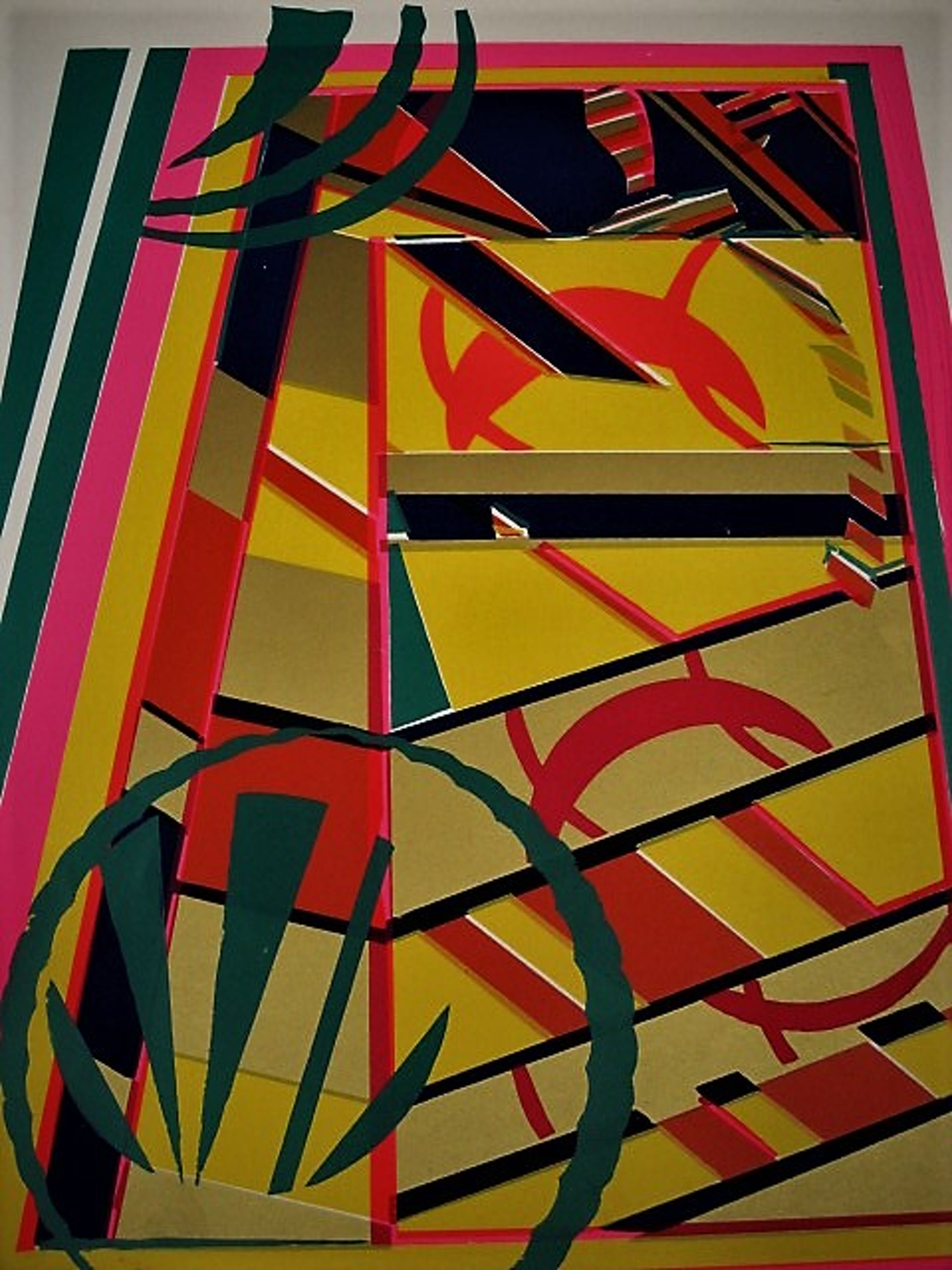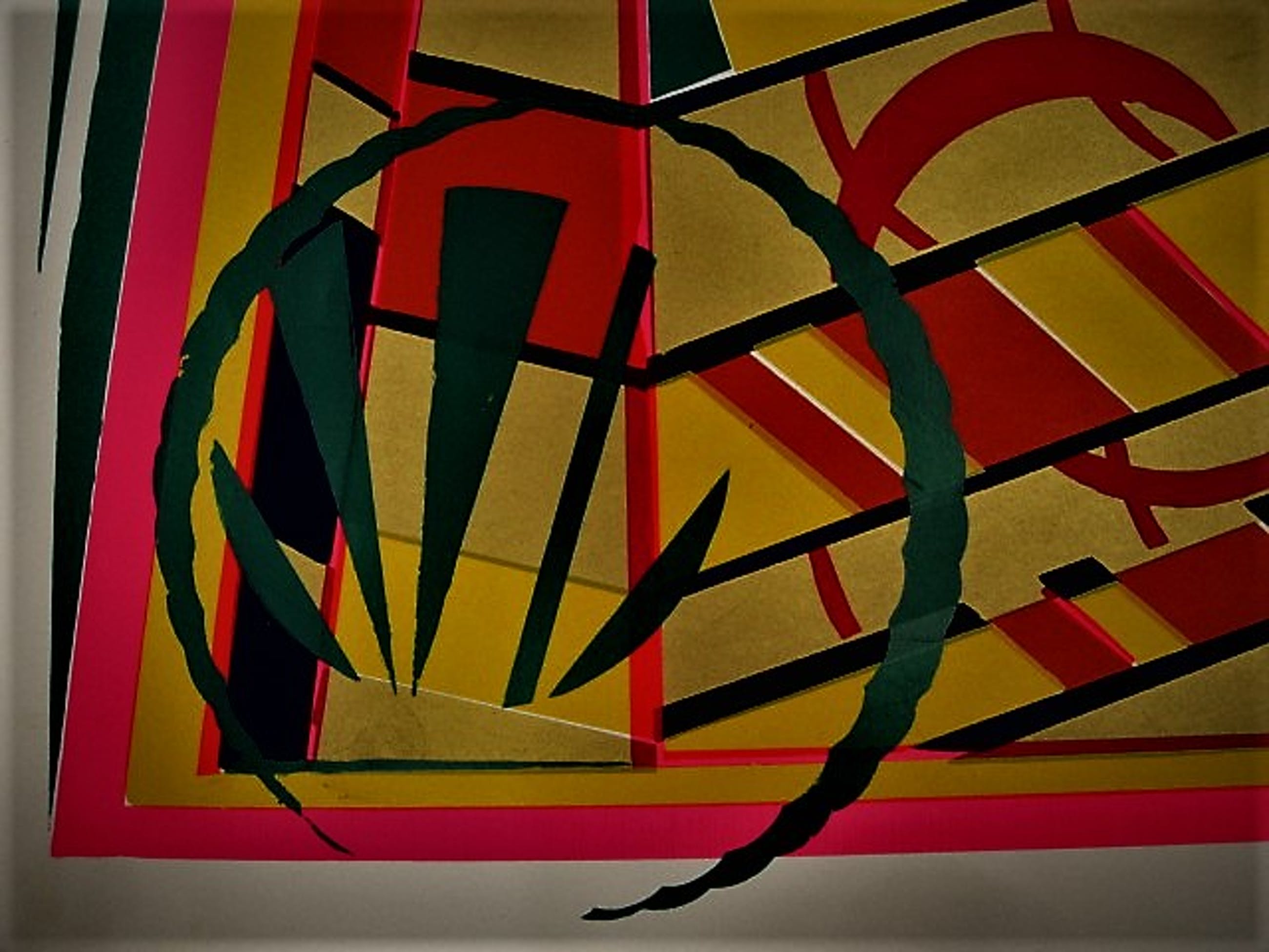 Groot jaren 70 Geometrisch abstracte voorstelling op papier. Rechtsonder met potlood gesigneerd. De naam van de kunstenaar zou Williams moeten zijn. Was onderdeel van de collectie van de Amerikaans/Nederlandse collage kunstenaar Ssam Middleton (1928-2015).