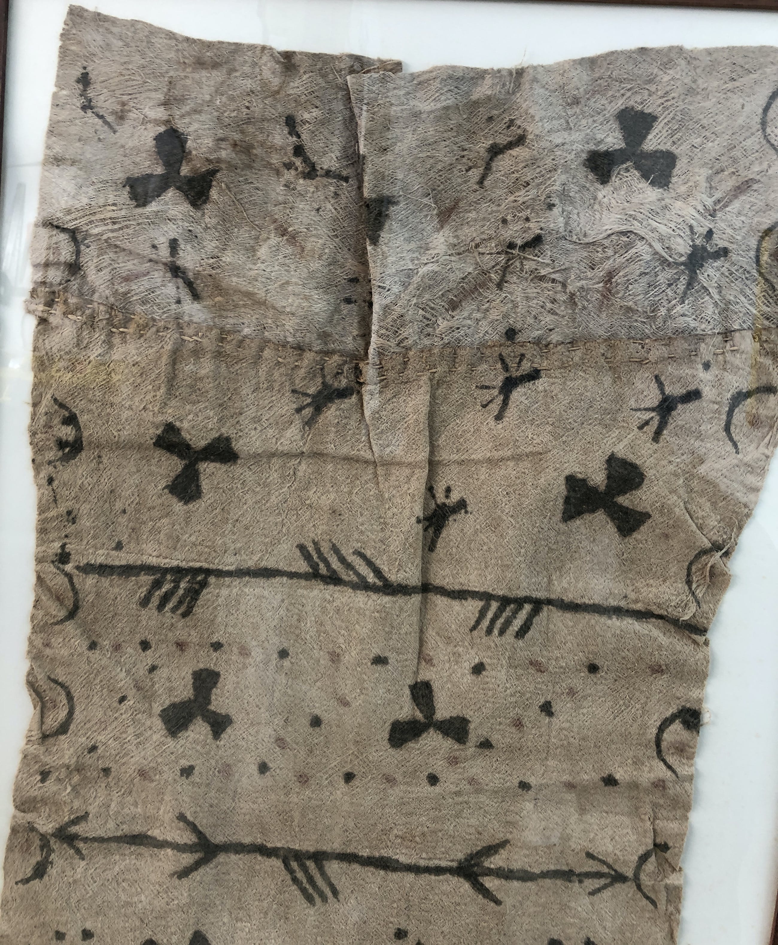 Afrikaans hand-printed op vezeldoek. Ingelijst in glas met lijst