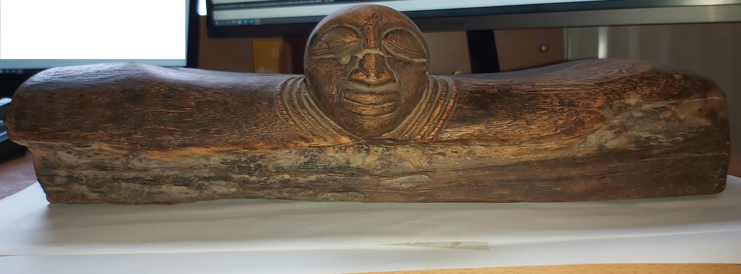 Een Afrikaans zitbankje. Aangekocht lang geleden op een veiling. Afkomst onbekend.