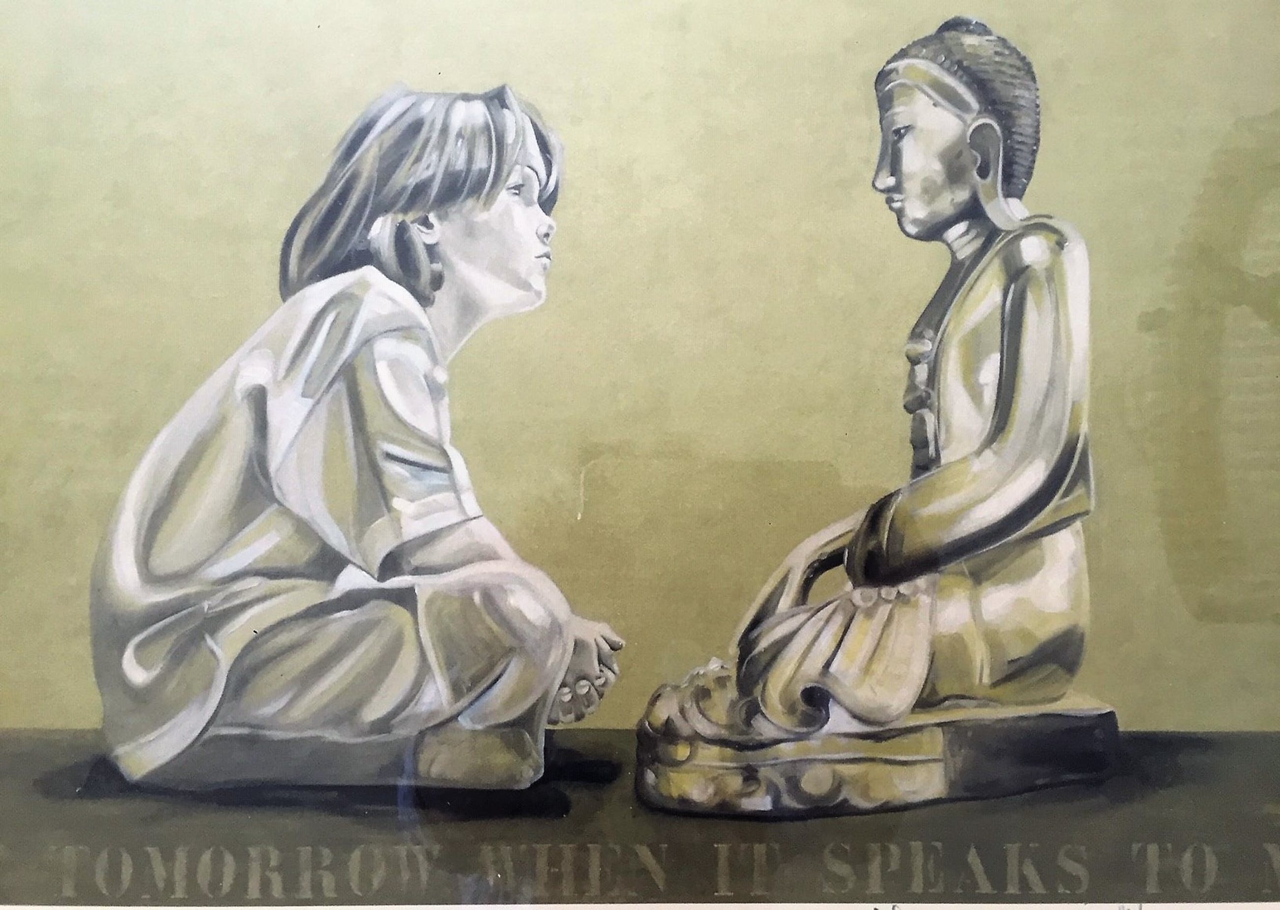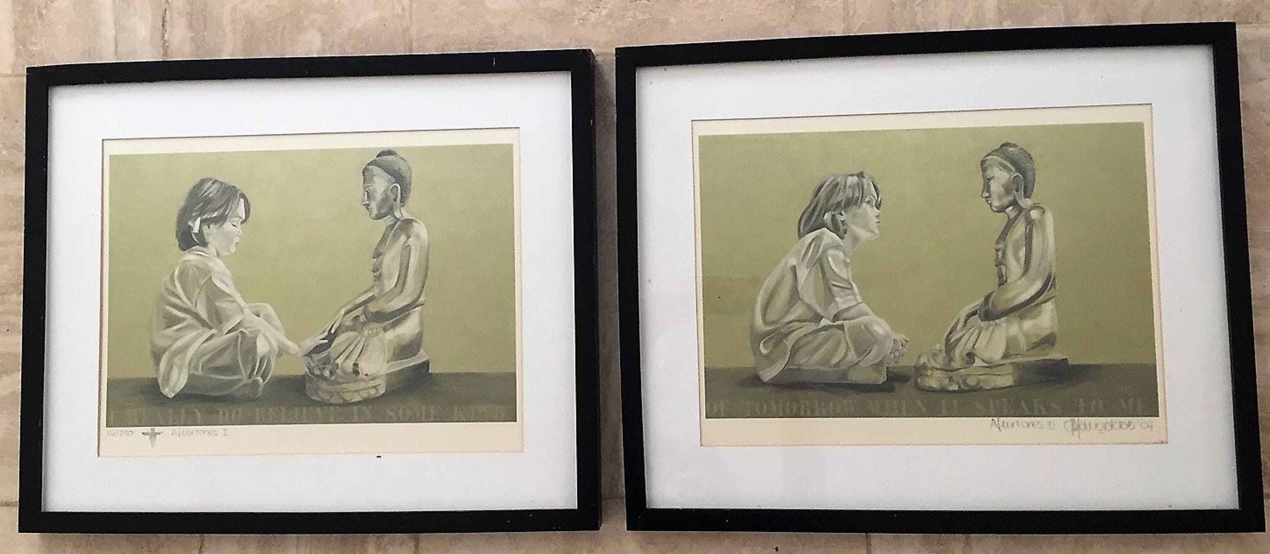 Religieus getinte werken duo in gelijst handtekening voor mij niet te trasseren!