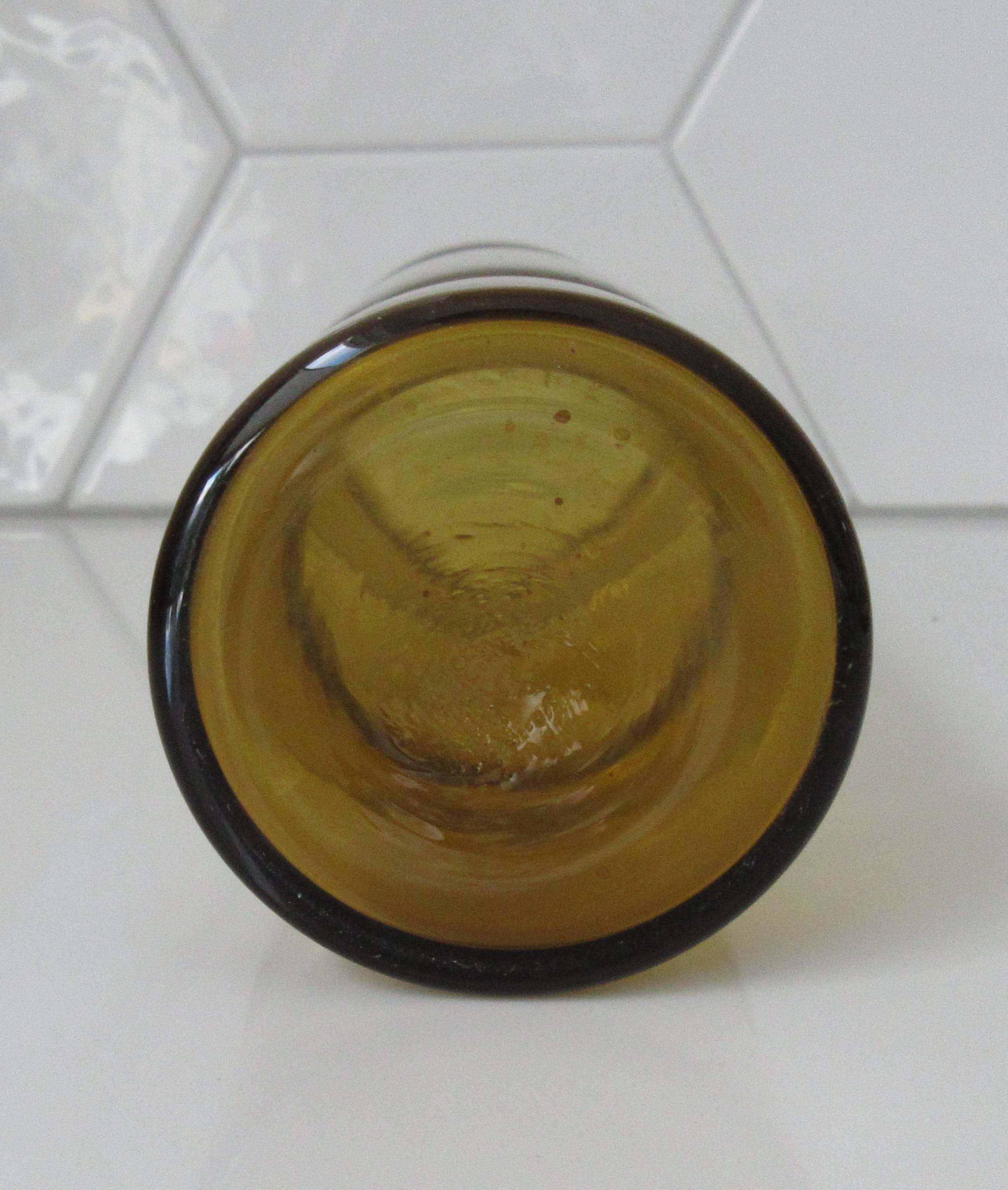 Amber glazen sixties "hooped" vaas. Maker onbekend, zeer waarschijnlijk gemaakt bij een van de Zweedse of Duitse glasfabriekjes. Prima conditie.