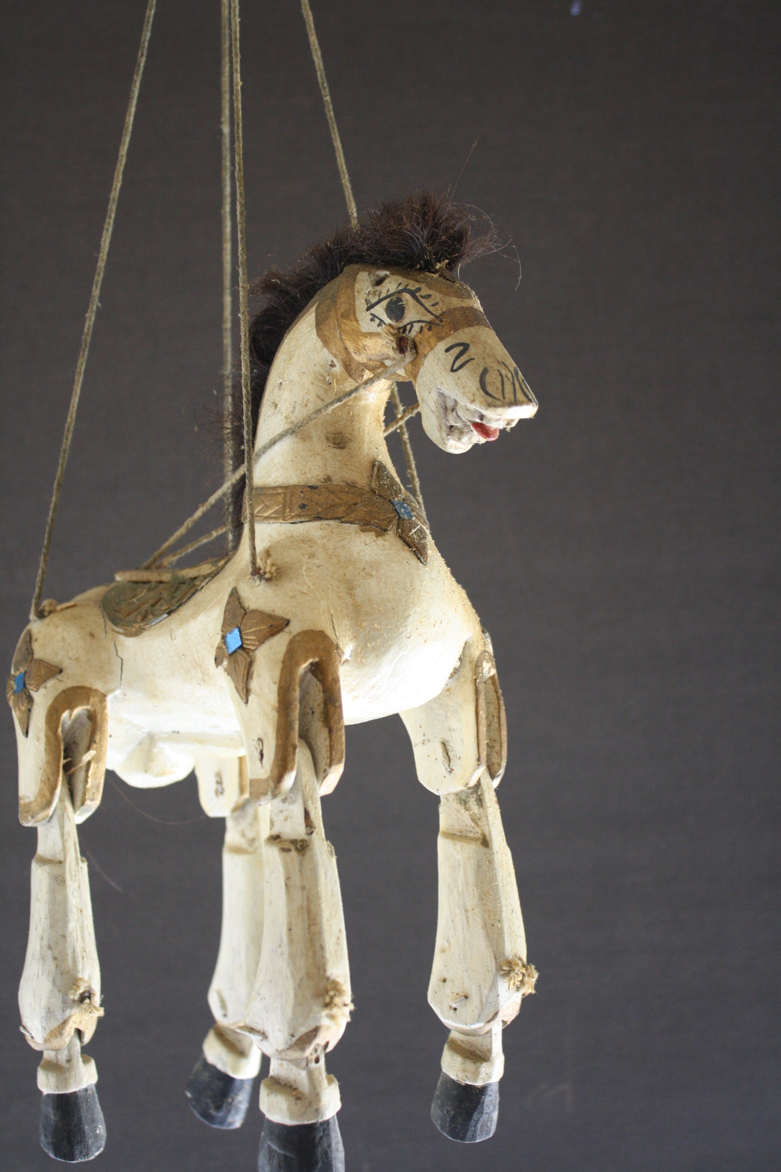 Onbekend - Antiek Polychroom beschilderd marionetten paard - Verkocht