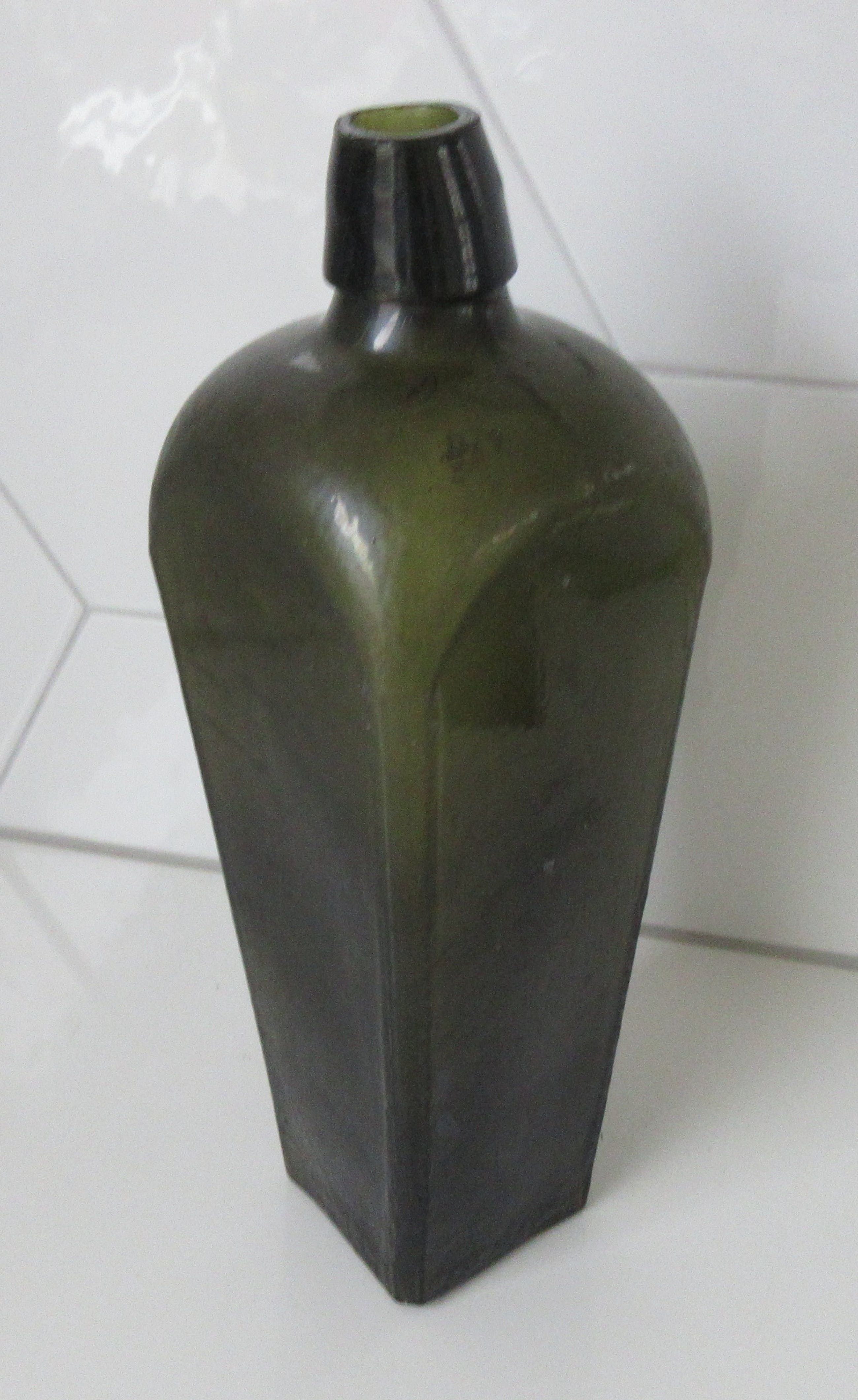 Antieke 19e eeuwse groen glazen fles (vierkante voet). In prima conditie, mooie patina.