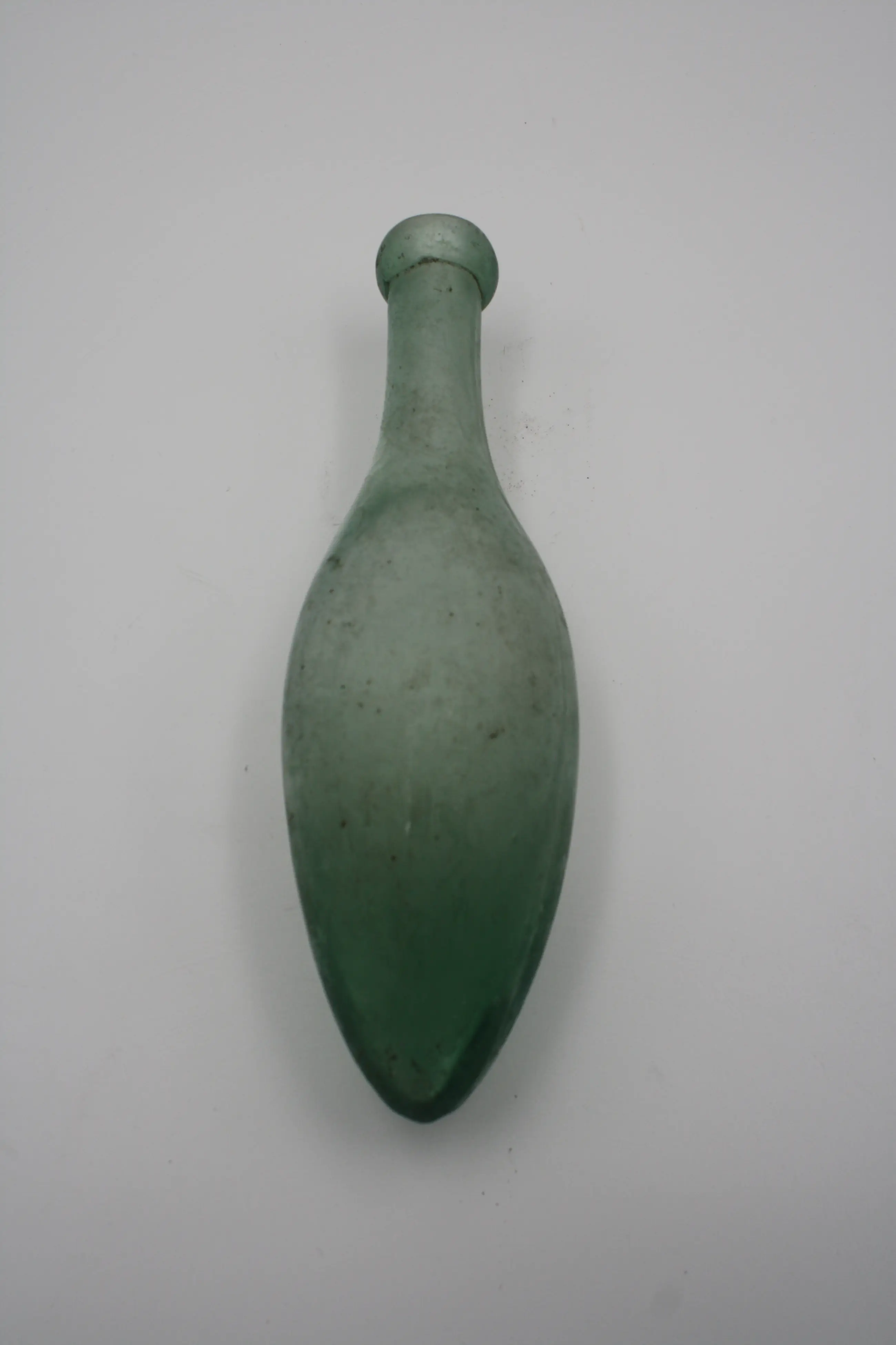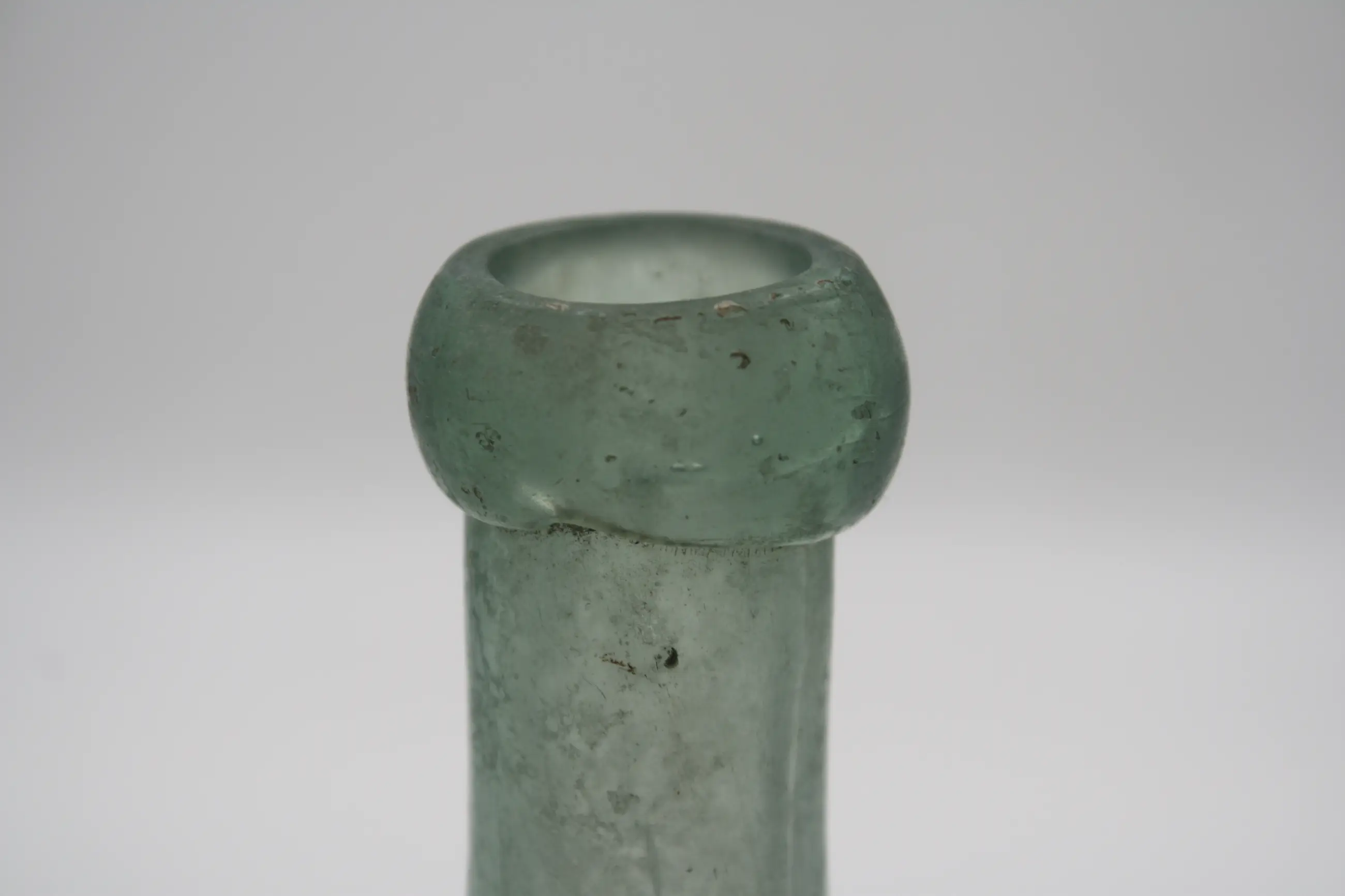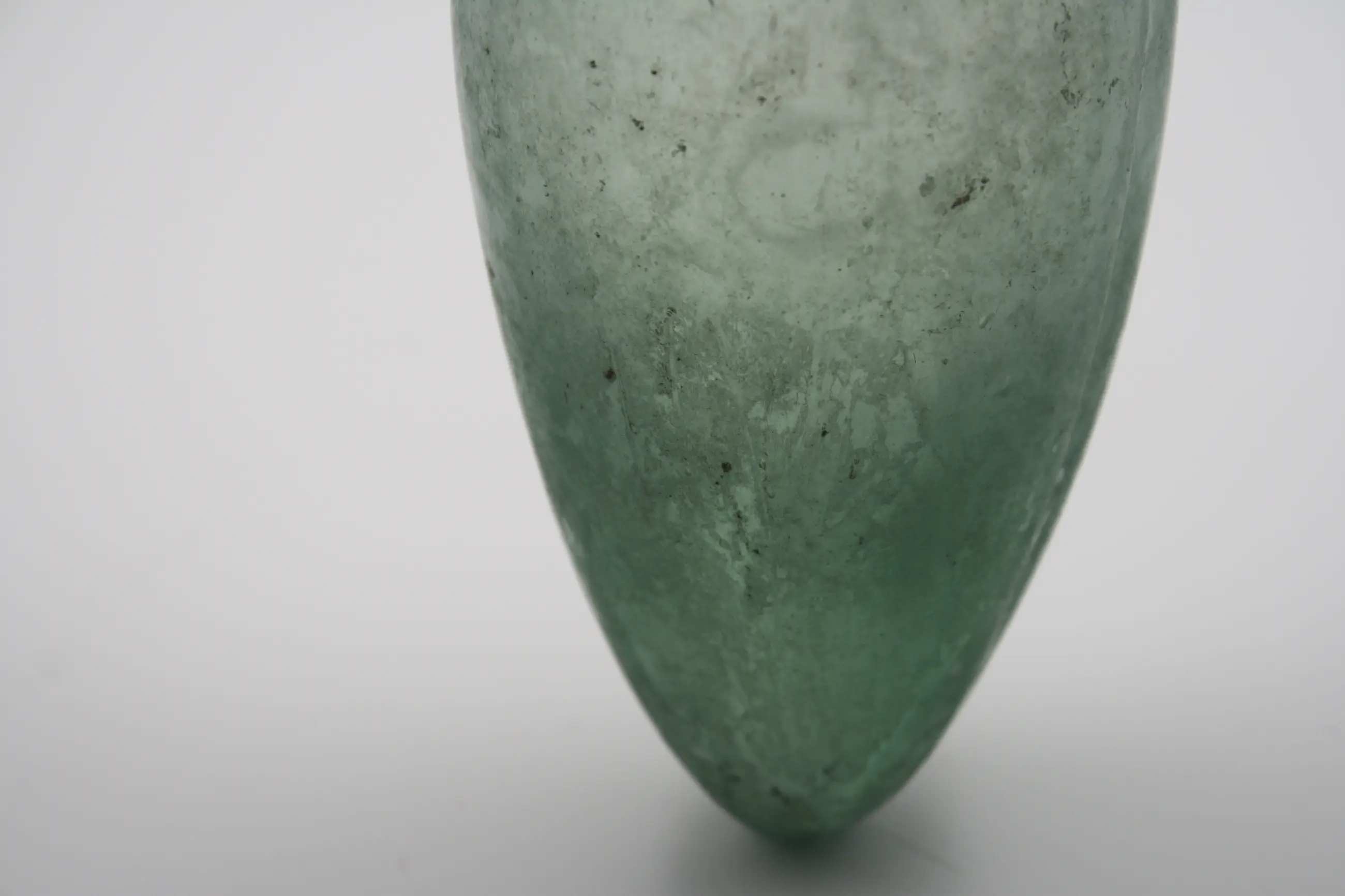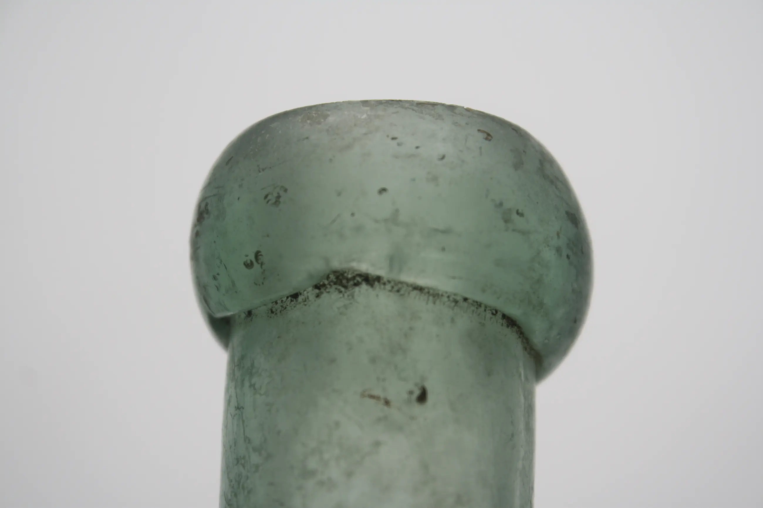 Zeer oude antieke blob top torpedo fles, Zeegroen getint glas met Puntige bodem, torpedo vormige fles.