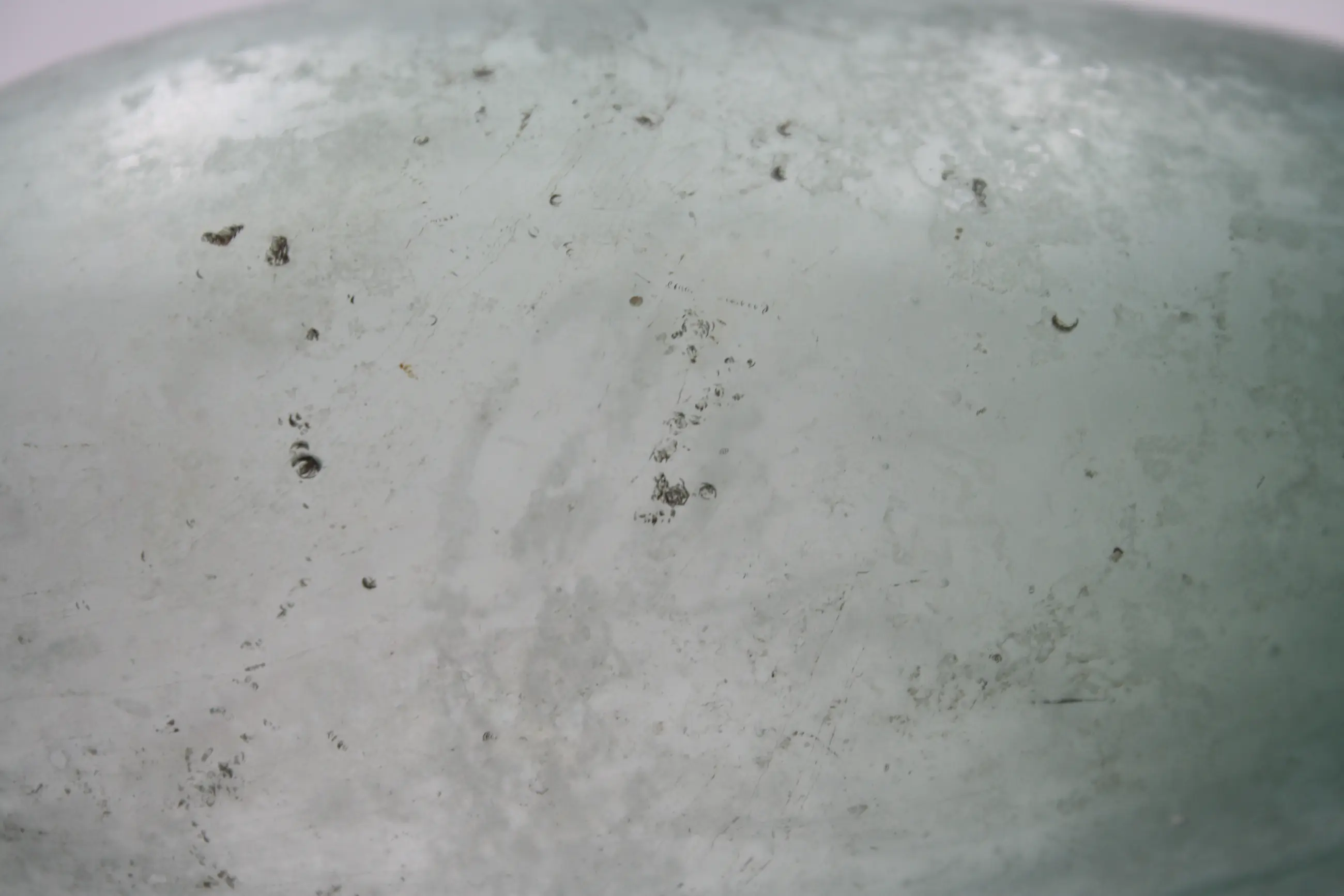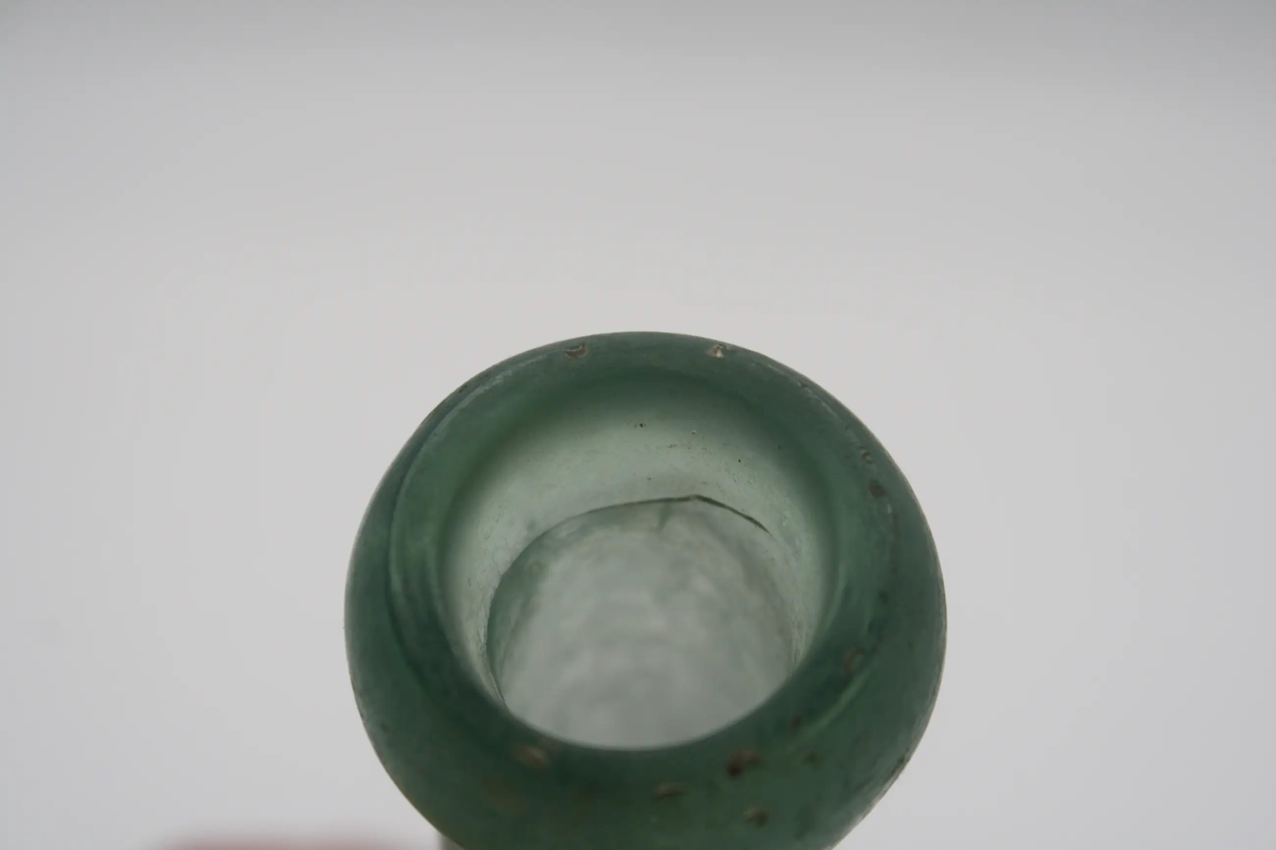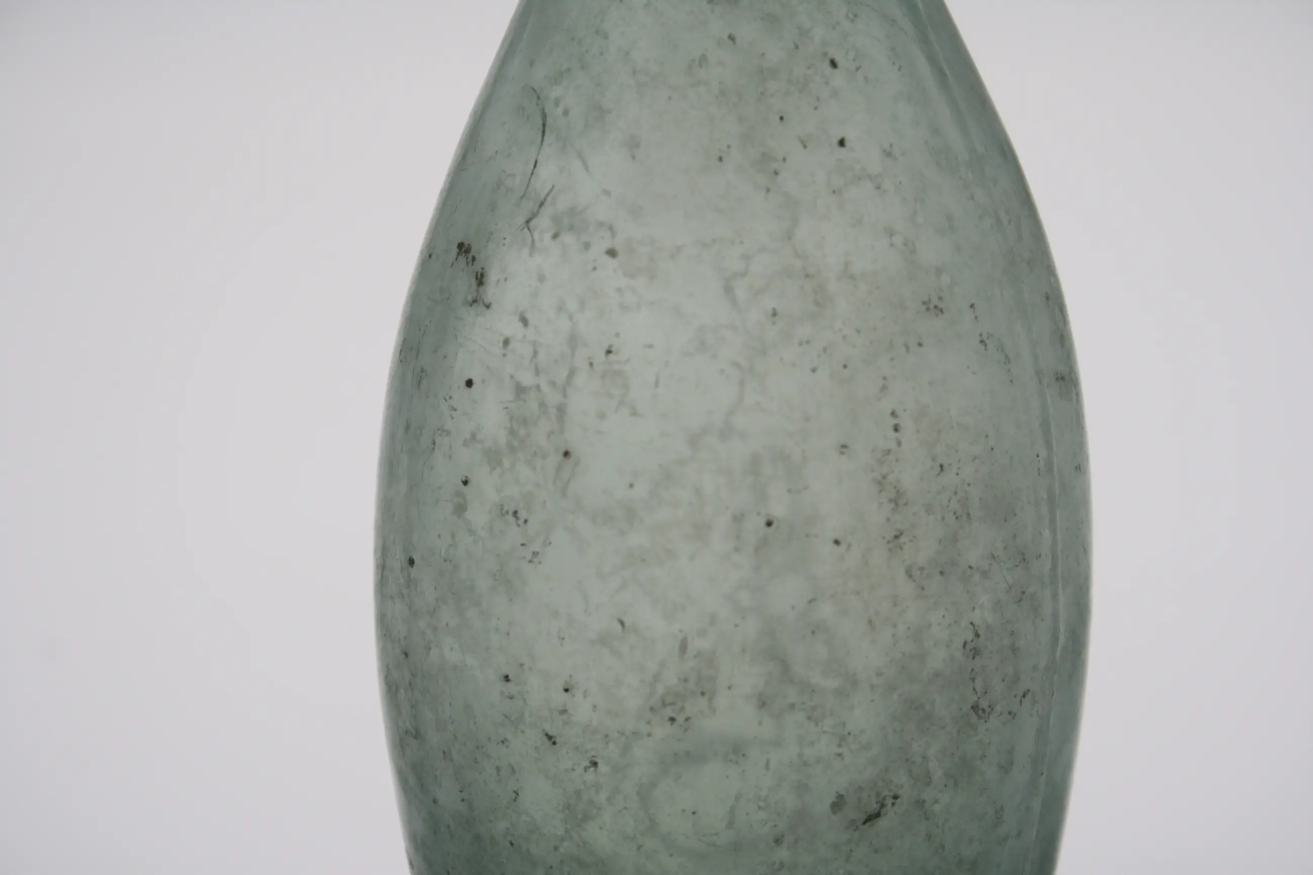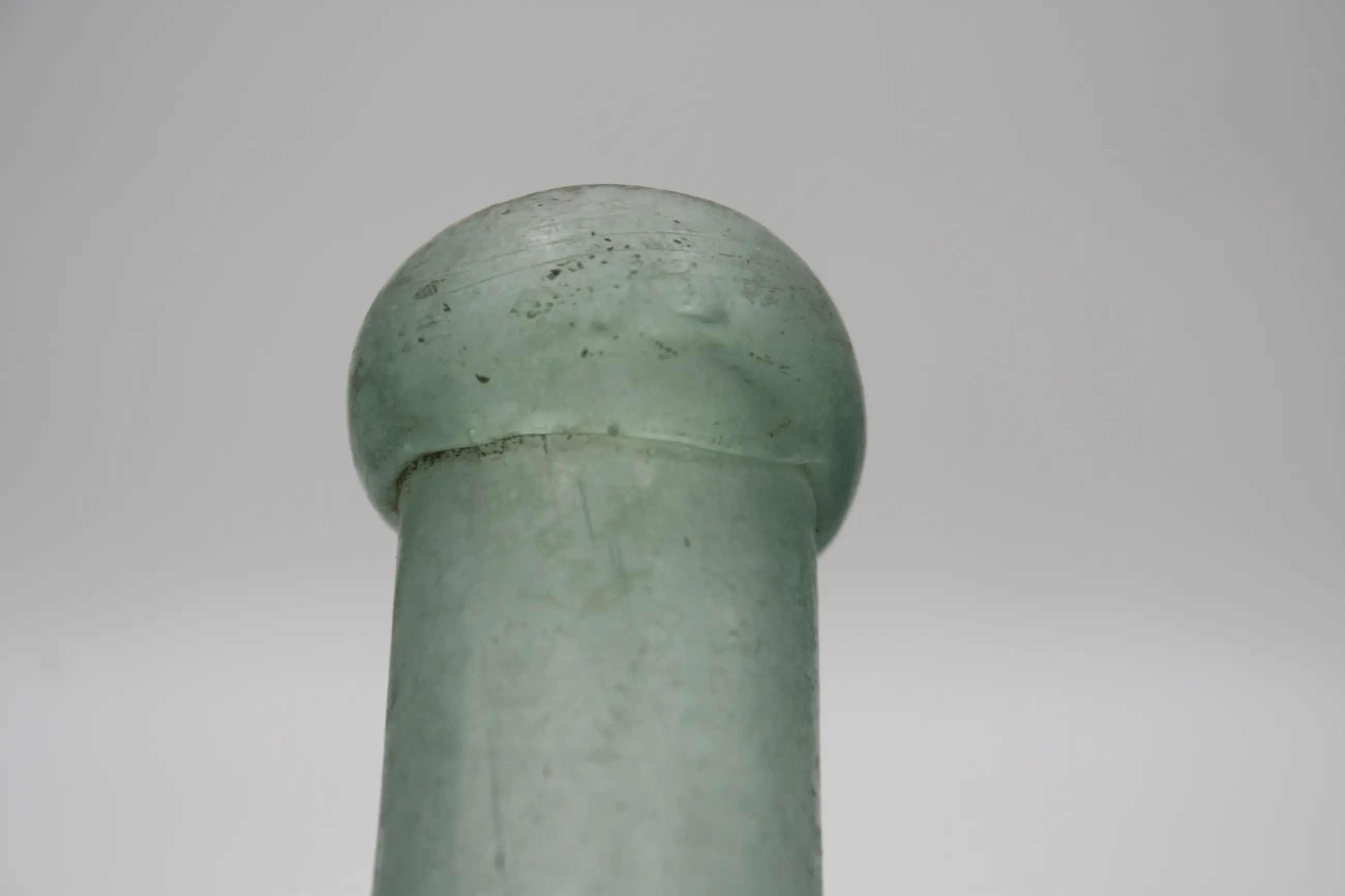 Zeer oude antieke blob top torpedo fles, Zeegroen getint glas met Puntige bodem, torpedo vormige fles.