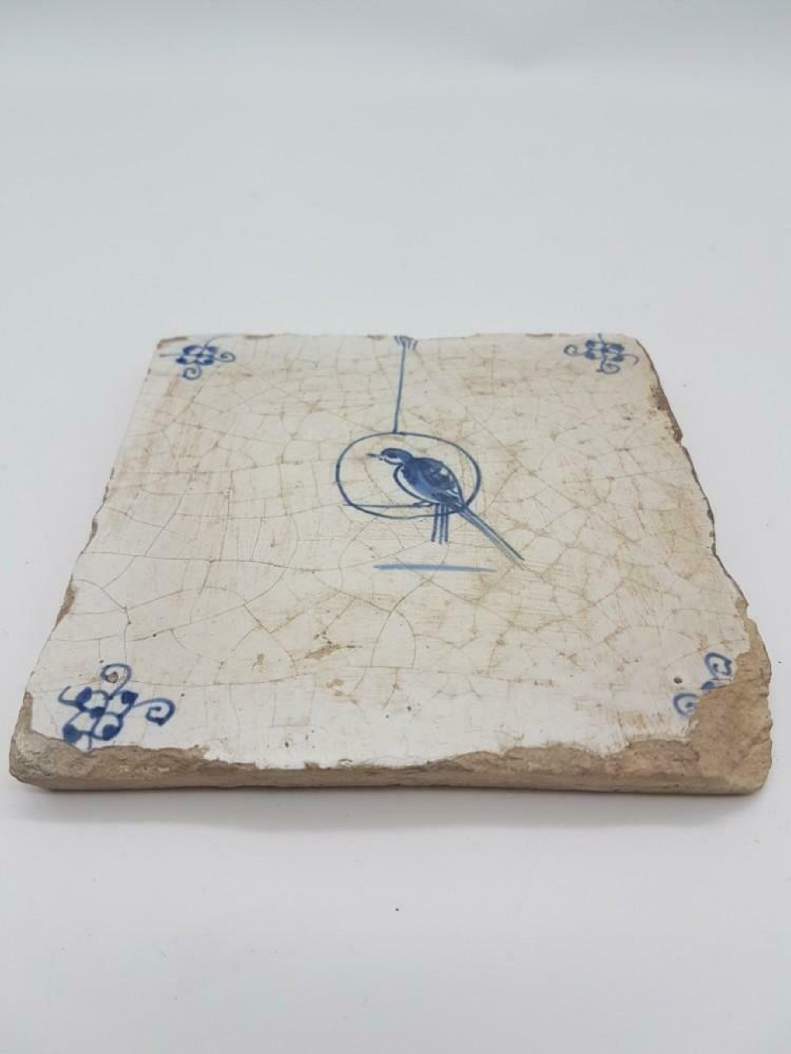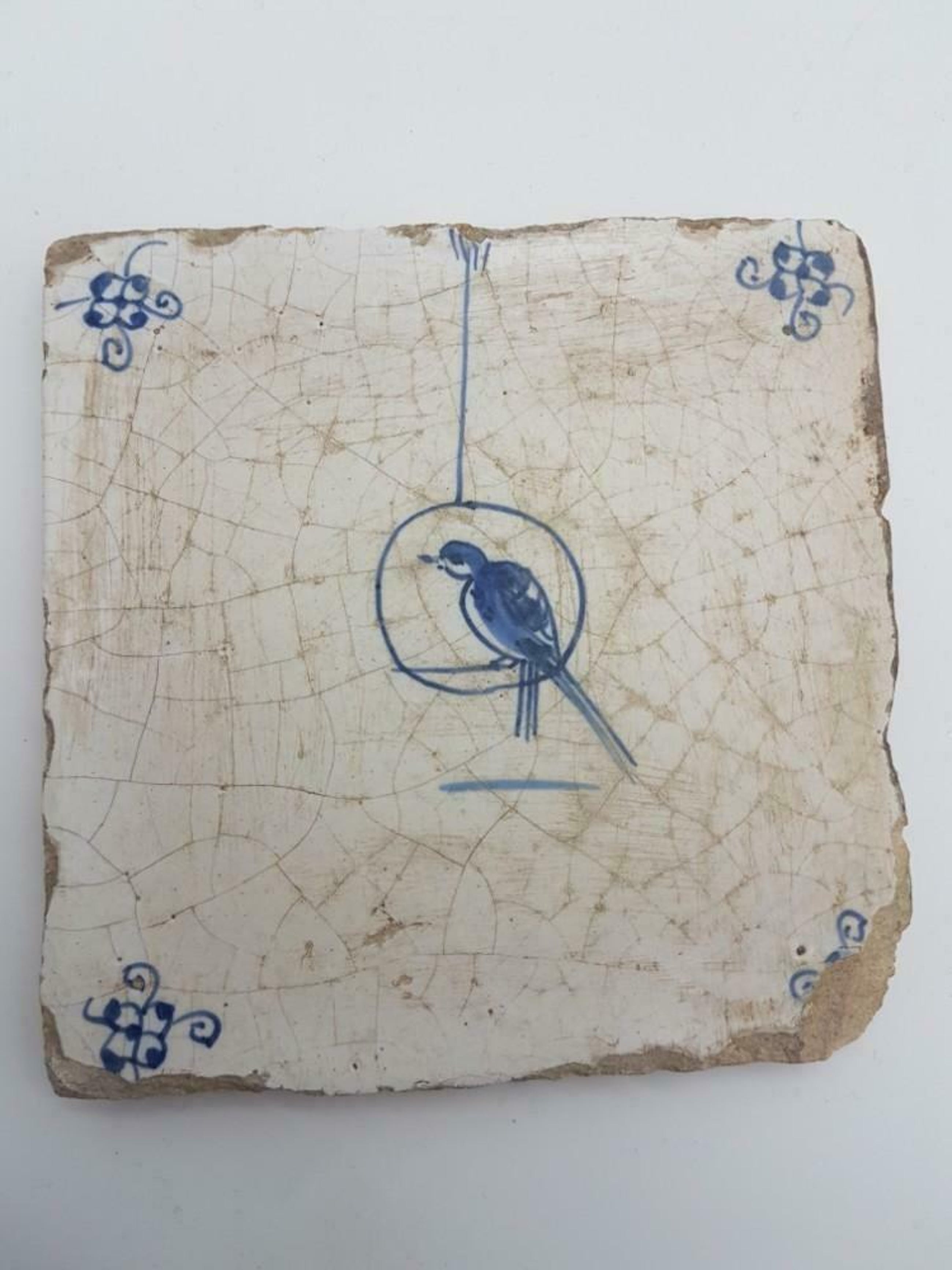 Mooie zeldzame antieke vroeg-18e eeuwse tegel met voorstelling van een vogel.