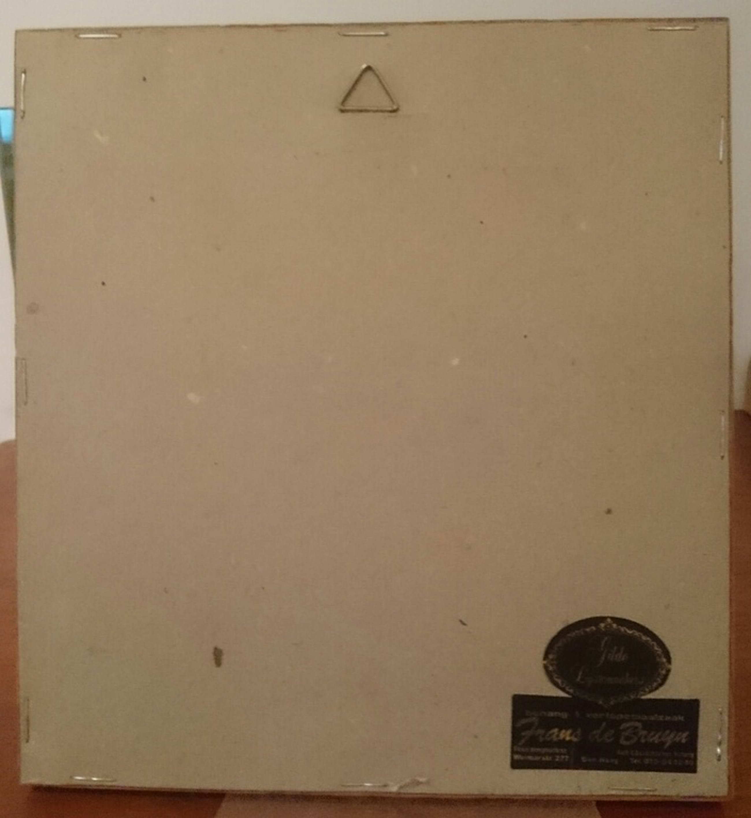 Ingelijst achter glas, in houten lijst (21,5 x 19,5) door Frans de Bruijn en Haag.