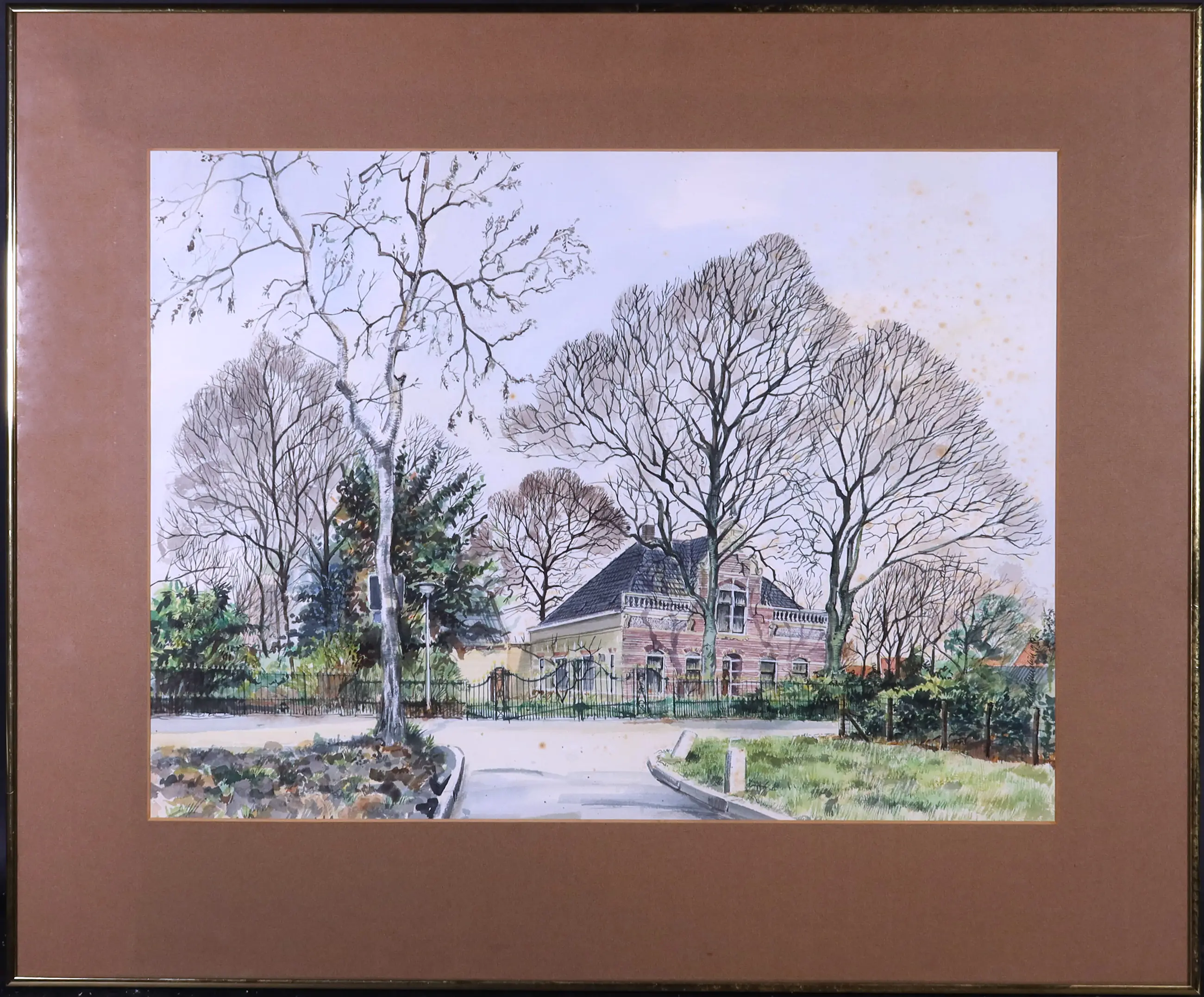 Onbekend - Aquarel, Huize Geervliet - Ingelijst - Verkocht