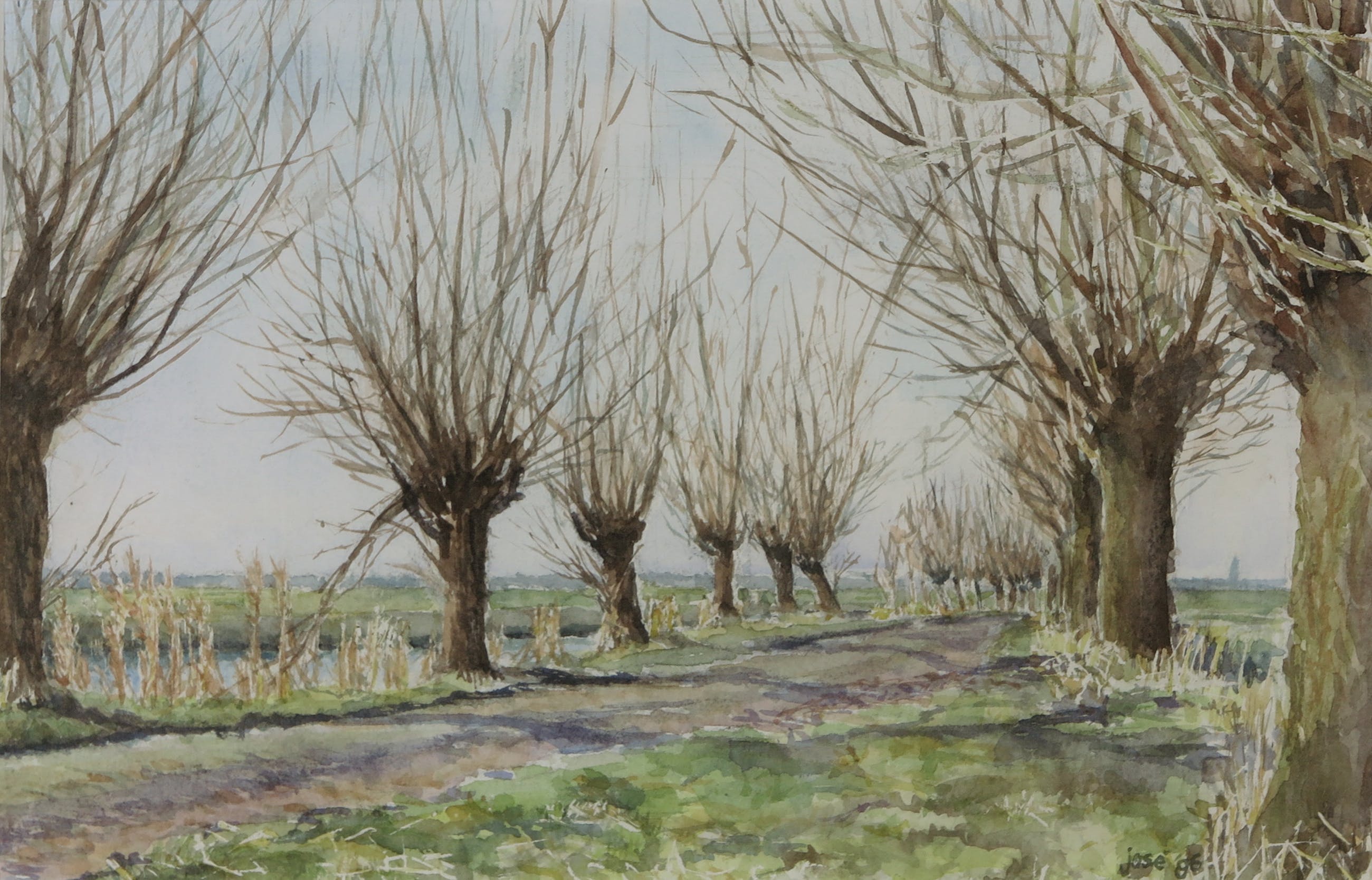 Onbekend - Aquarel, Knotwilgen - Ingelijst - Verkocht