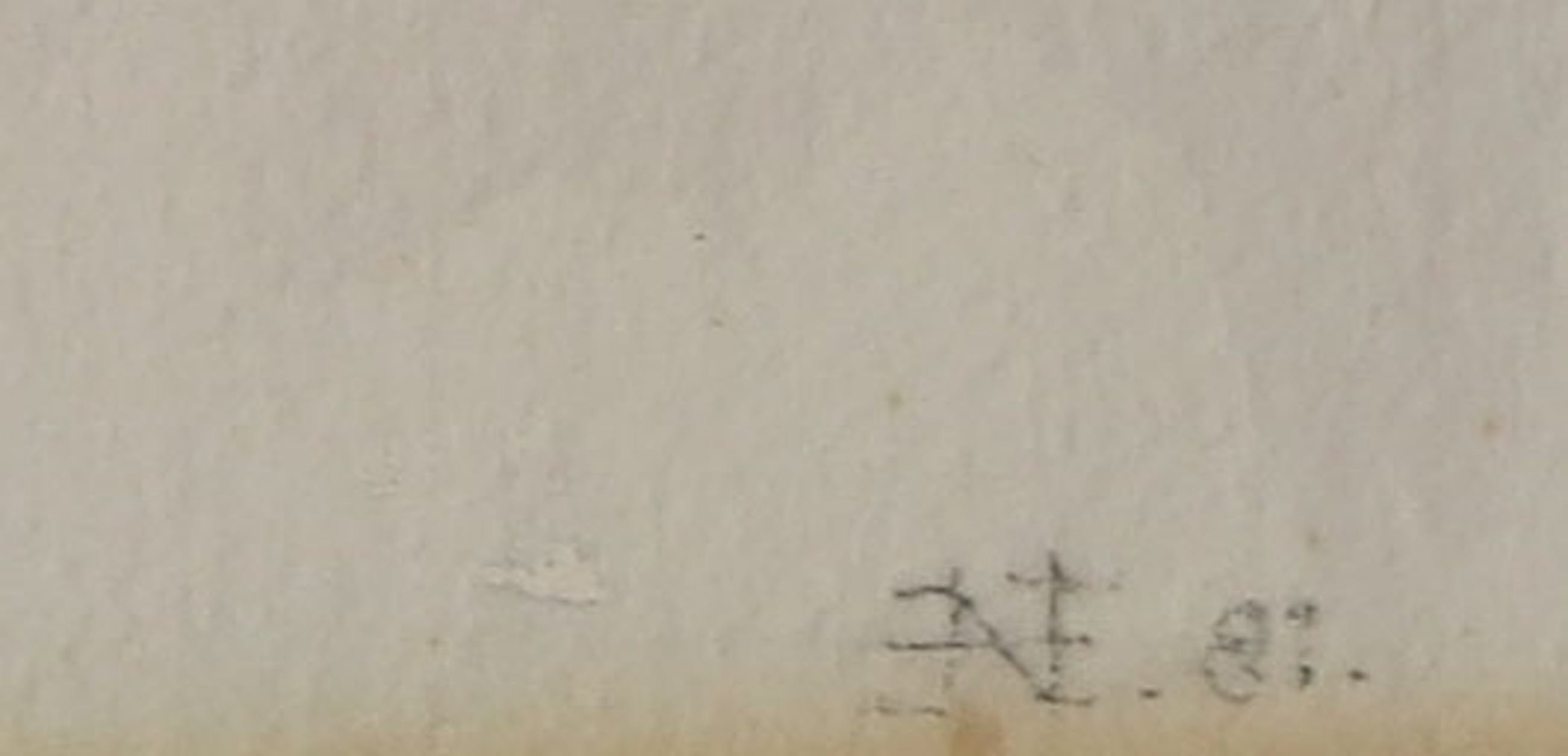 | Langs de randen van het werk lichte vergeling. Het passe-partout is verouderd. Meerdere stofjes achter het glas. | |