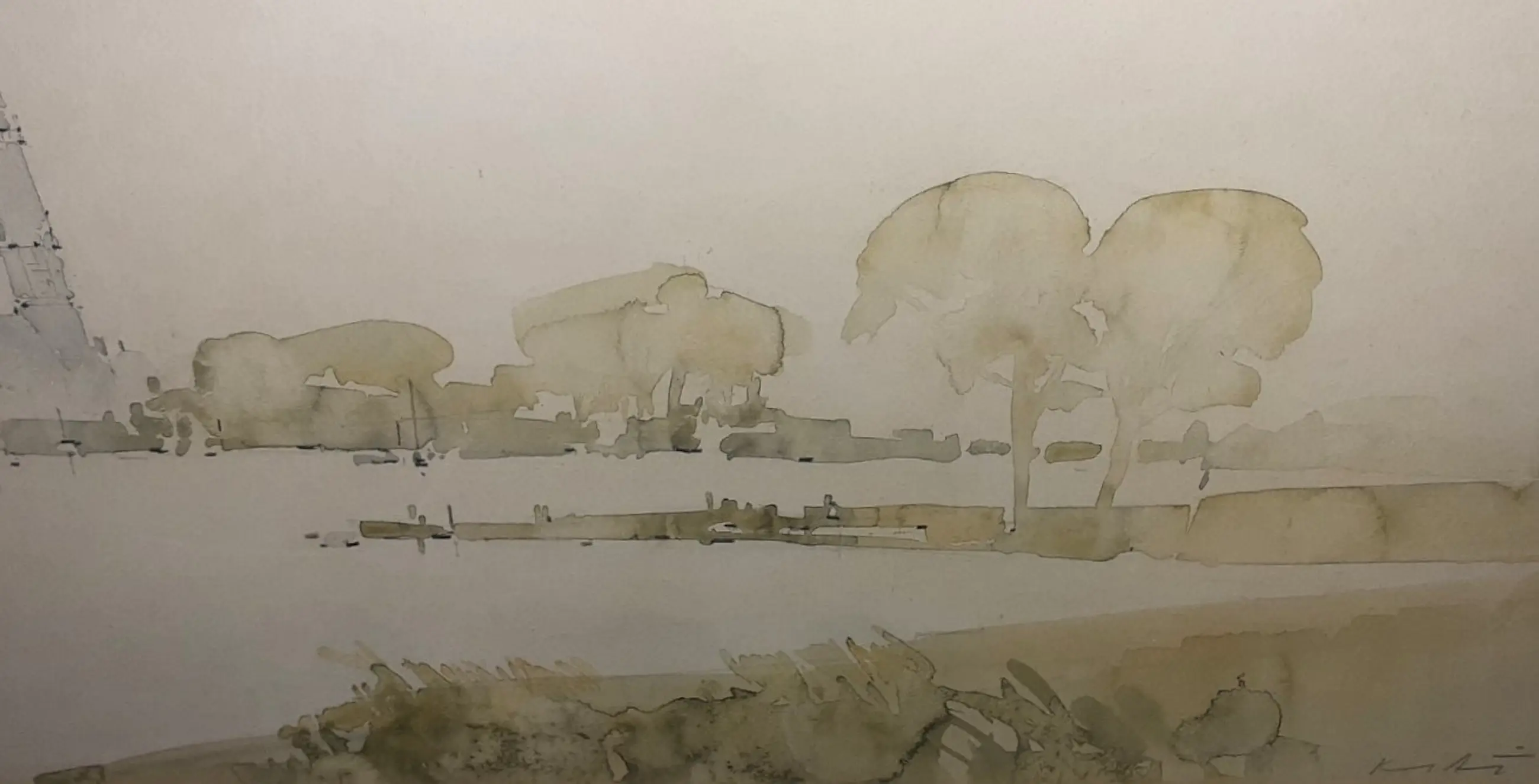 Fraaie aquarel: "Ons Dorp" in zachte groene pastel tinten, door Kiat. Detail: de kerk is in zacht blauwe pastel tint opgemaakt. Het is kunstwerk is handgesigneerd door de kunstenaar. Fraai werk in super conditie en netjes in bijpassende lijst, ingelijst. Voorzien van bijpassende passe-partout in passende kleur en ophanging aan achterzijde (kan gelijk worden opgehangen). GRAAG TE BIEDEN VANAF €5,-