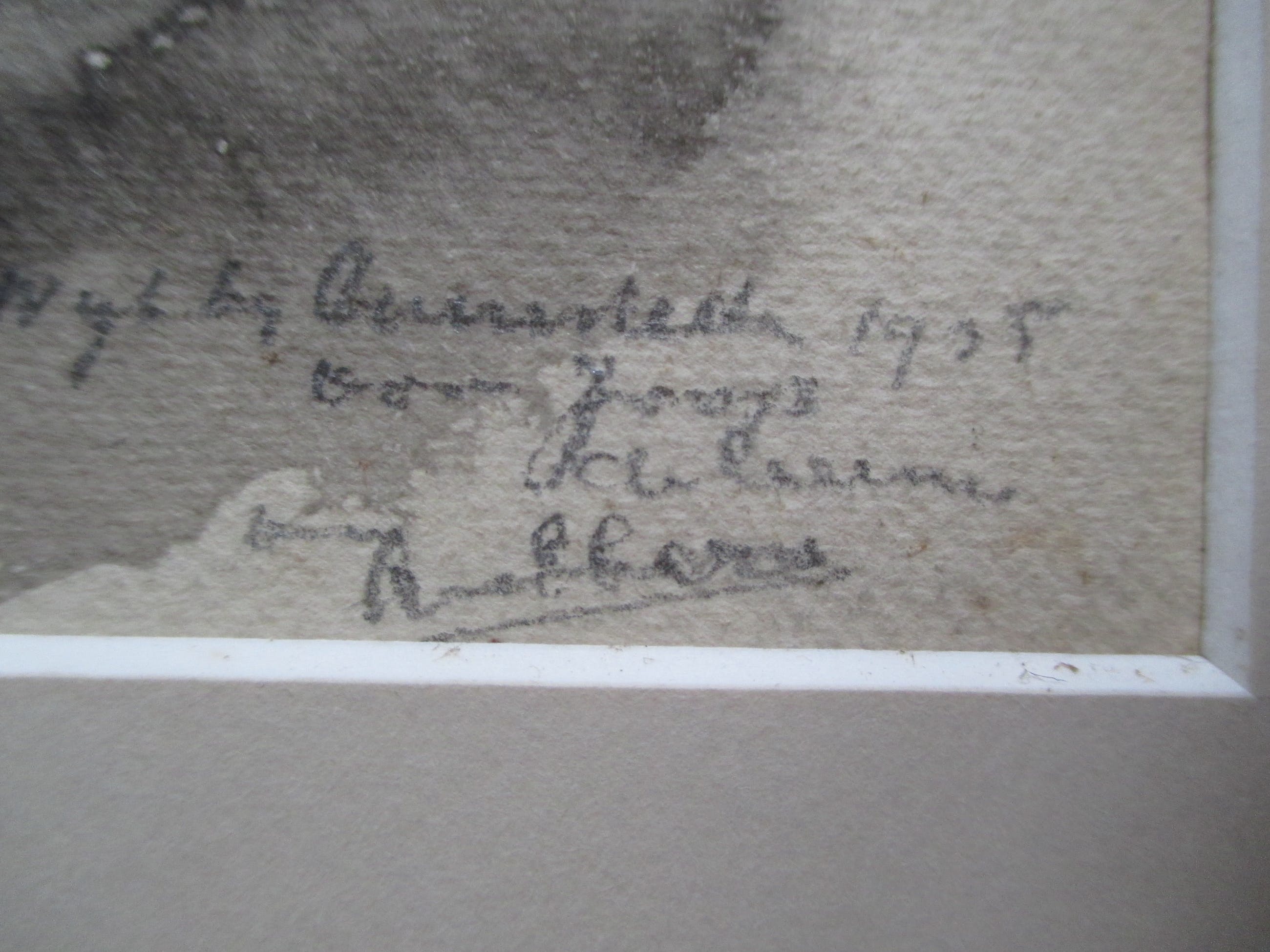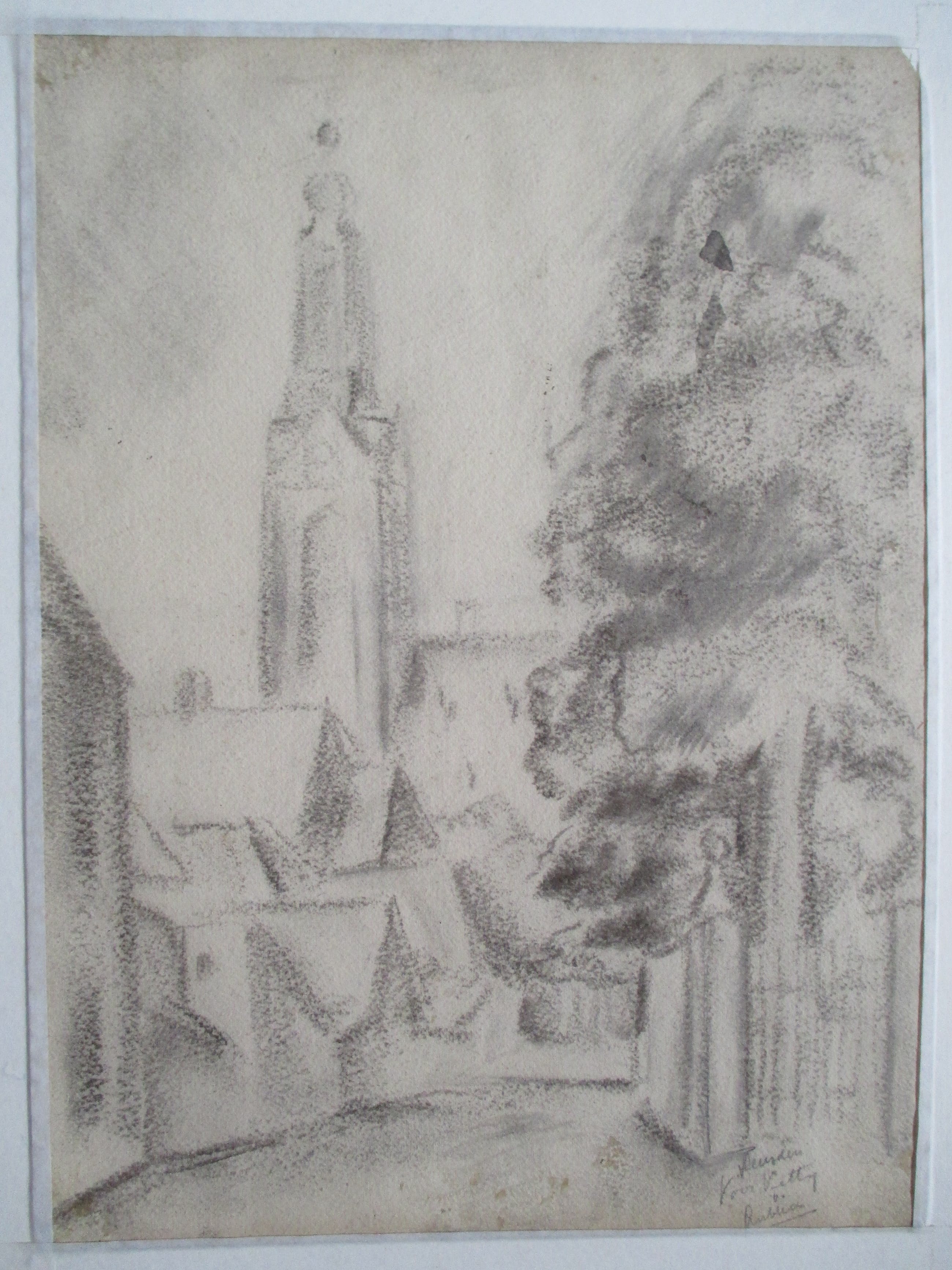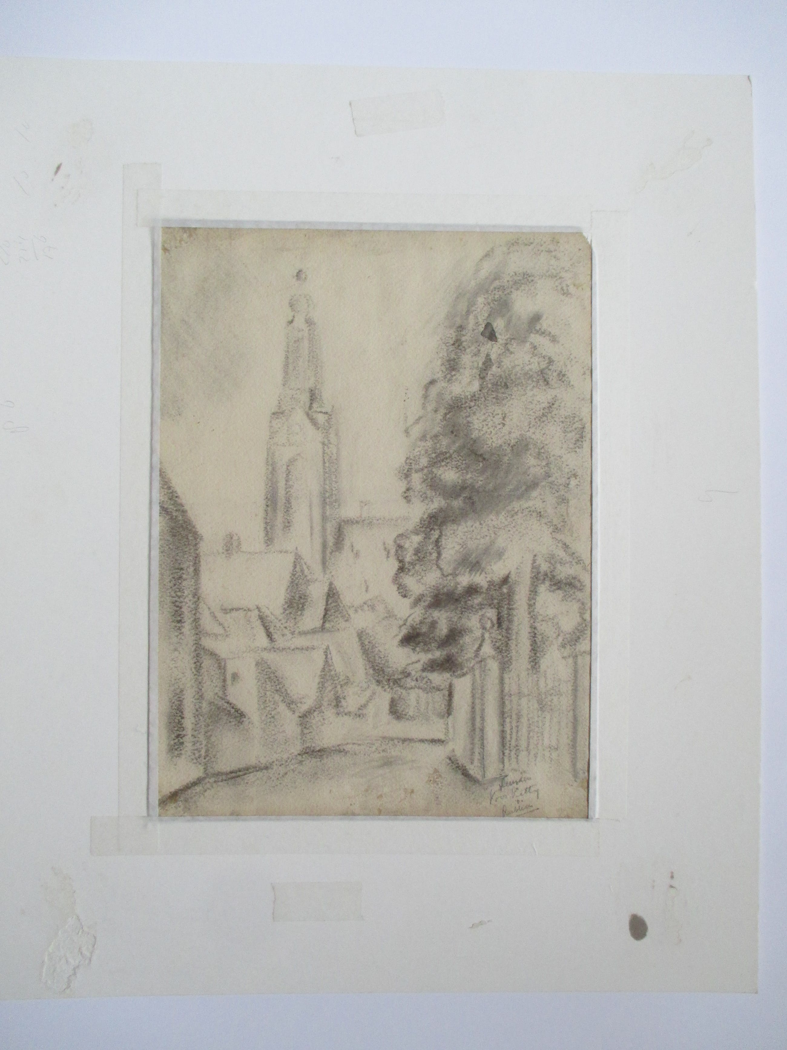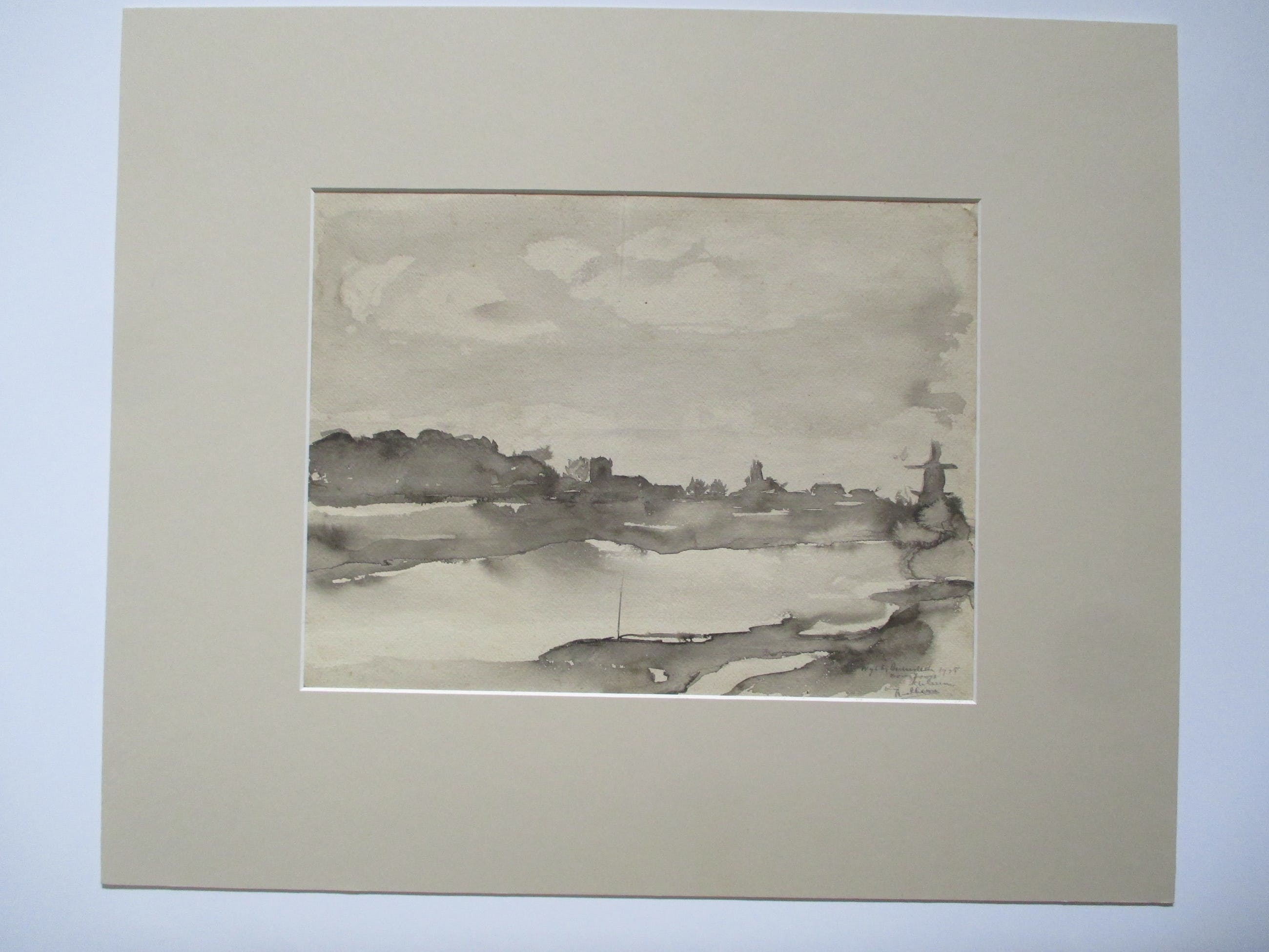 Aquarel, r.o gesigneerd, gedateerd en getiteld met opdracht . verso een krijttekening van Heusen. geplaatst achter passe-partout. verzending tussen twee platen, 8 euro, aangetekend 9,65