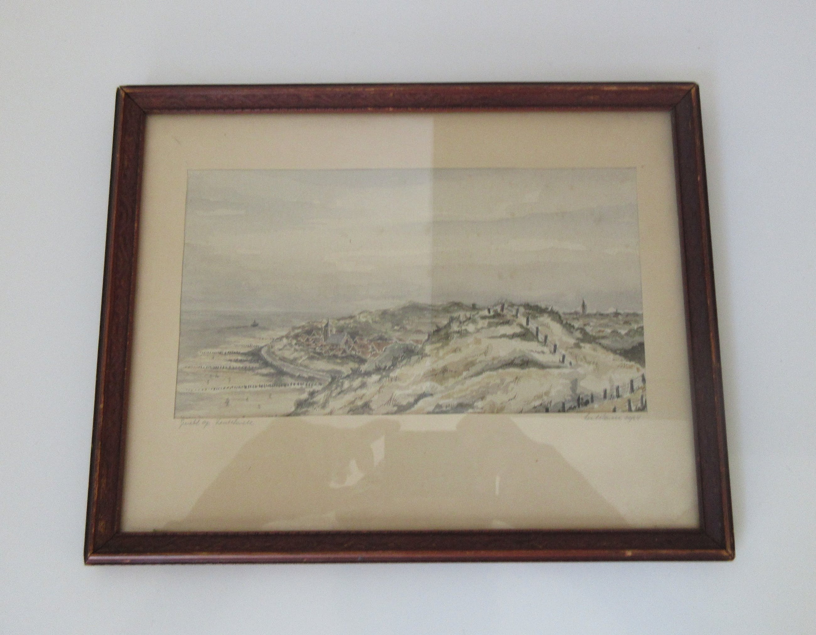 Aquarel "Zicht op Zoutelande" uit 1954 - Anton Versluys. In goede gebruikte conditie. Gesigneerd linksonder in het werk Versluys en op de passe partout staat met potlood linksonder de titel; "Zicht op Zoutelande" en rechtsonder het jaartal 1954.