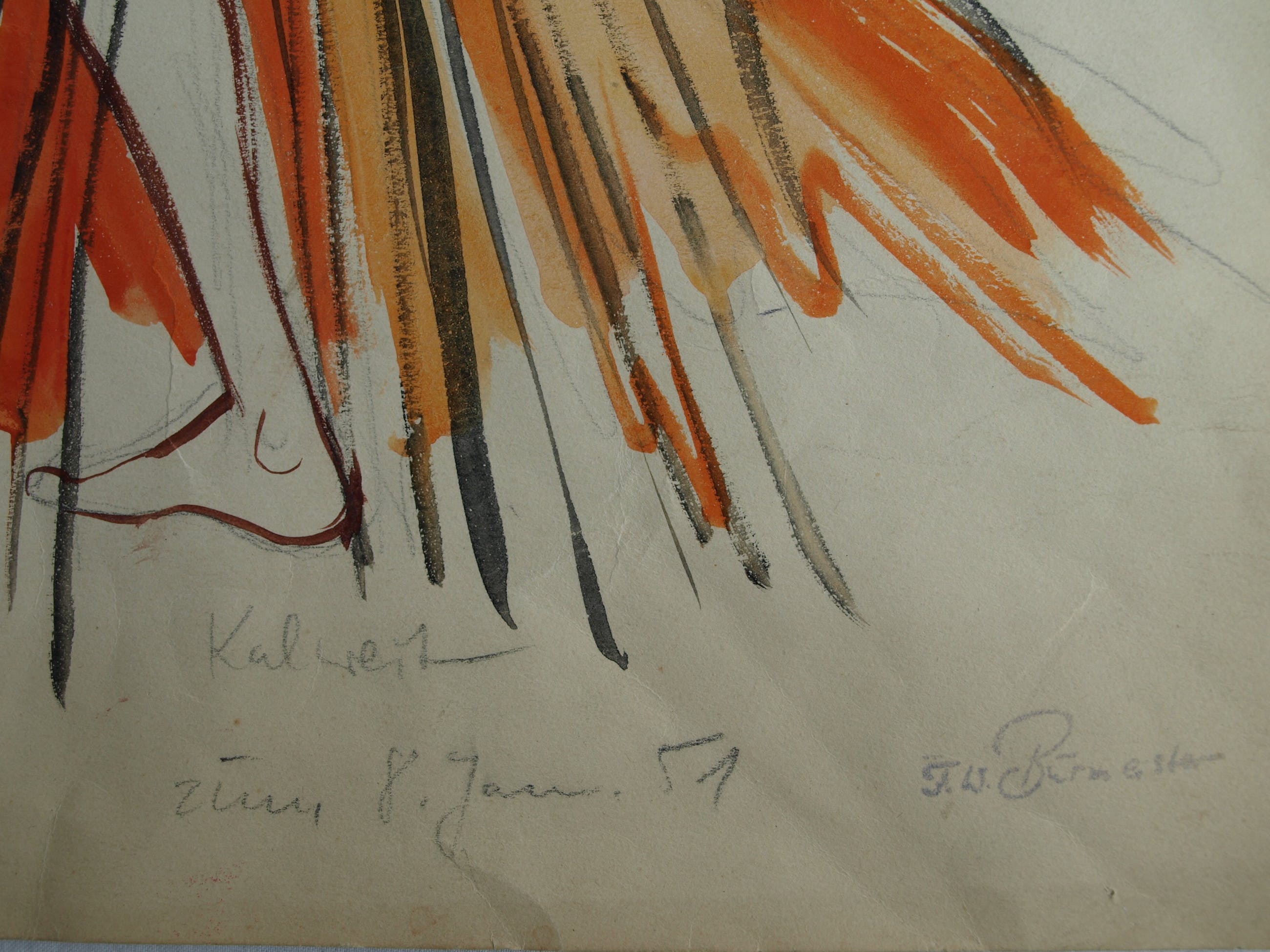 • Een tekening / aquarel uit 8 januari 1951 van een ons onbekende kunstenaar.