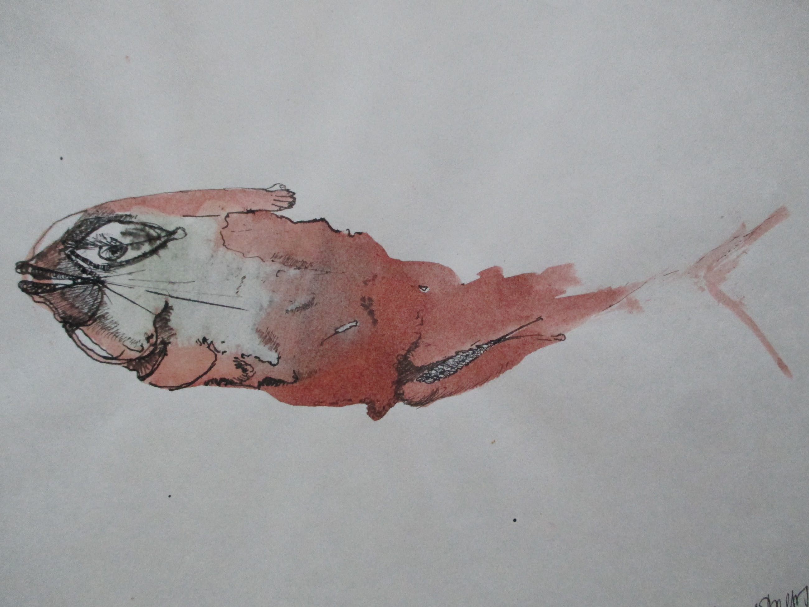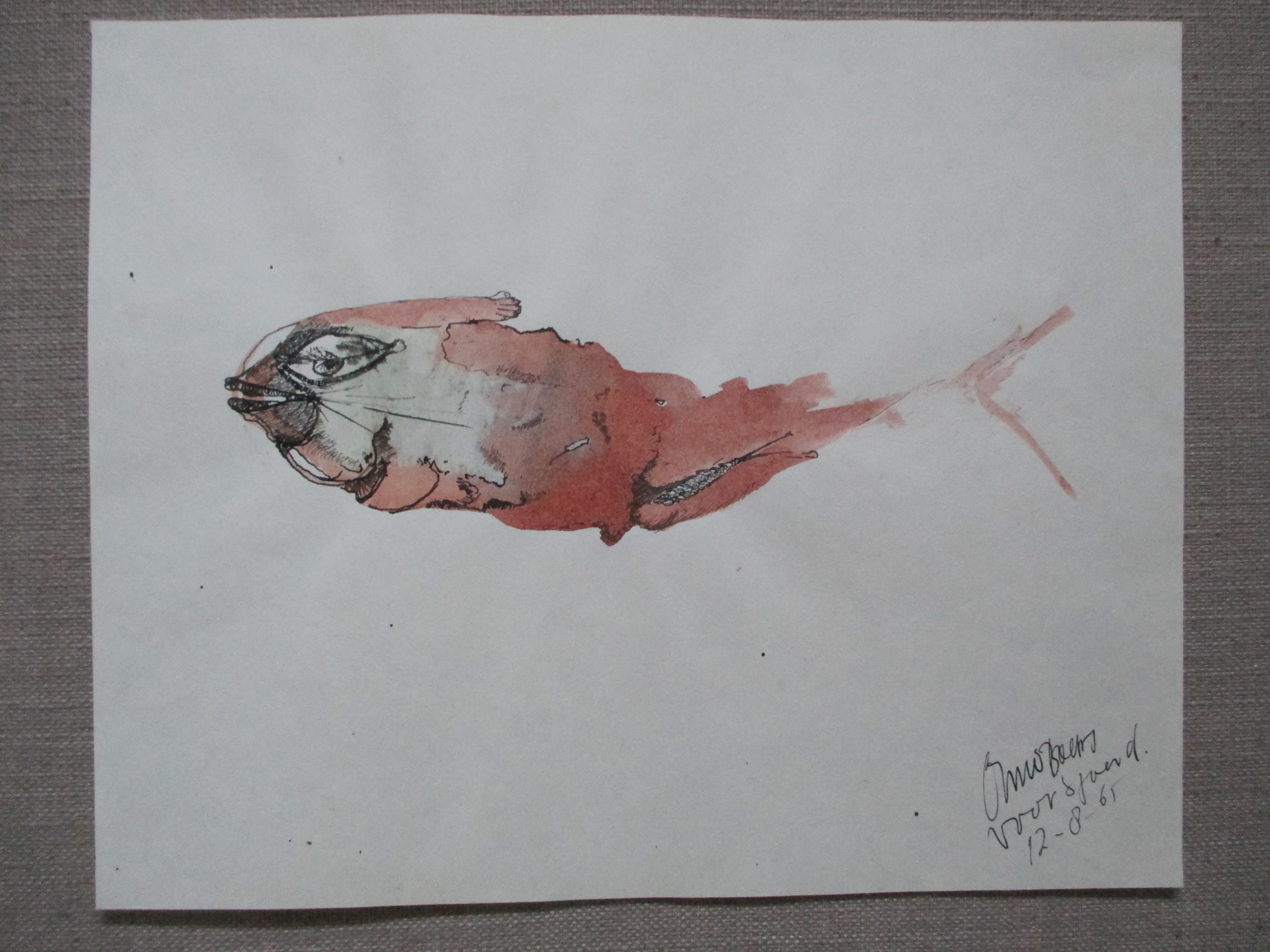 Inkt/aquareltekening, gesigneerd en gedateerd r.o en "voor Sjoerd", dit zou Sjoerd Bakker kunnen zijn. verzending tussen twee plaatjes, 4,90, aangetekend 9,15