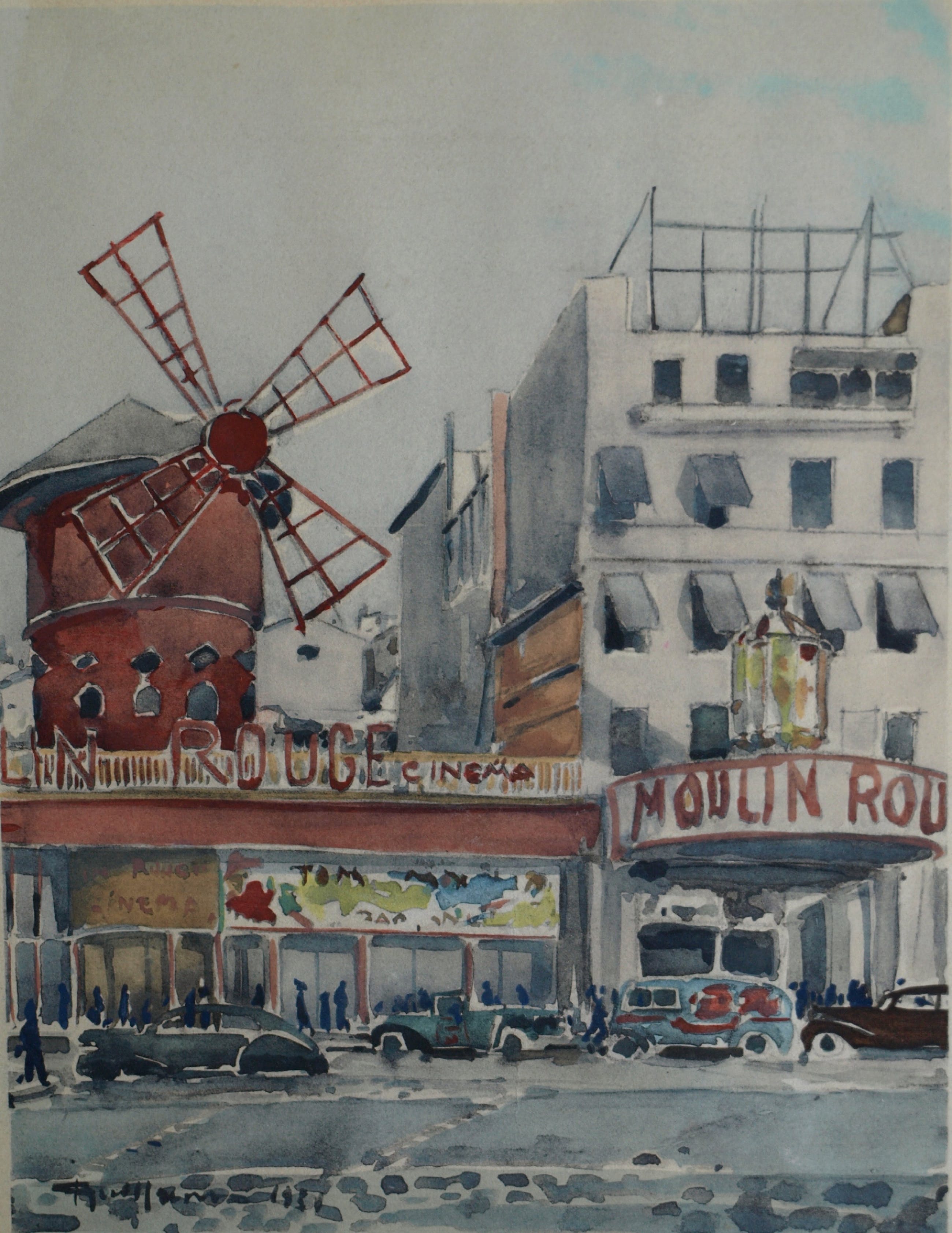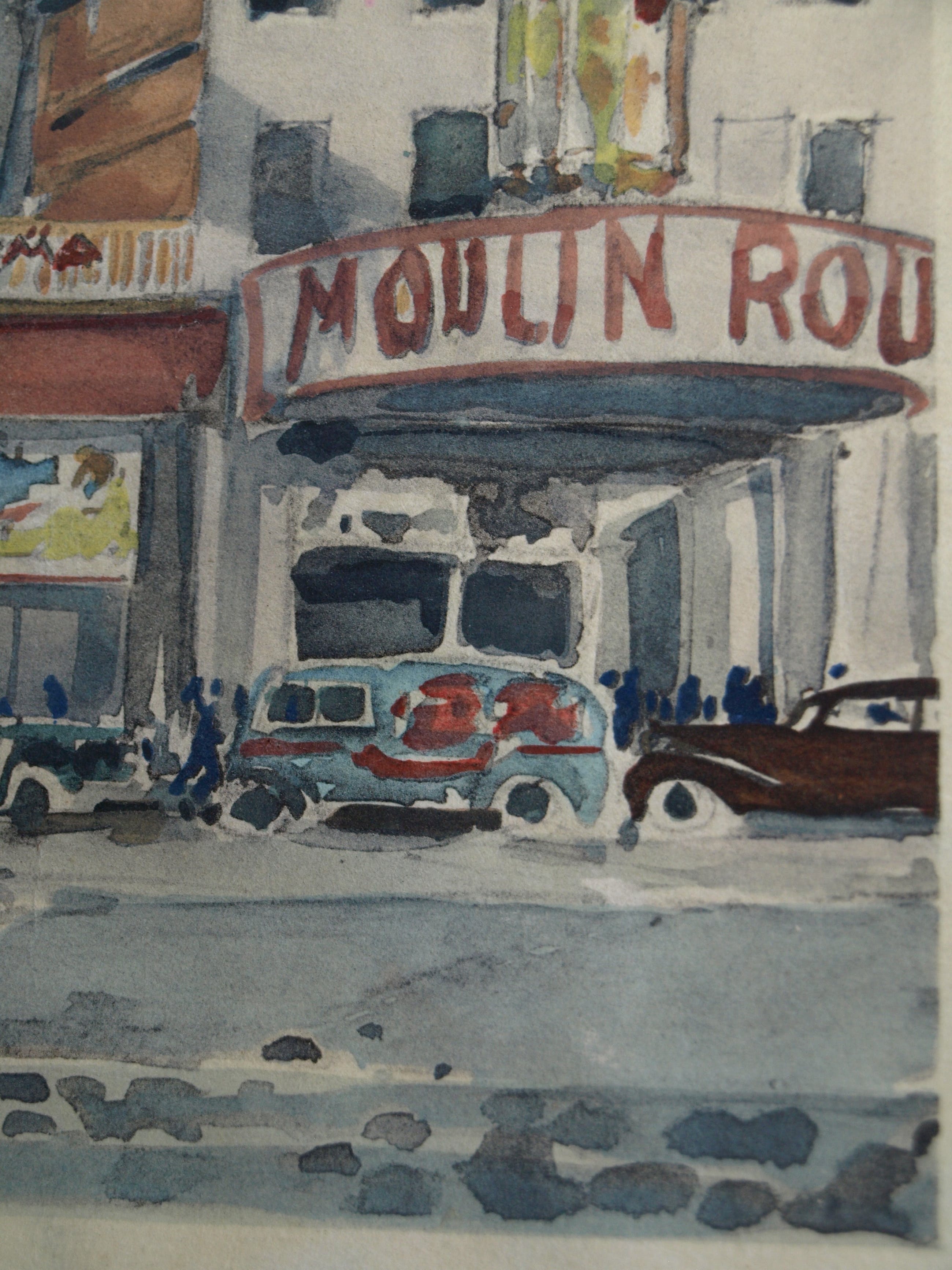 Onbekend - Aquarel , “Moulin Rouge in Parijs” – gesigneerd - 1930 - Verkocht