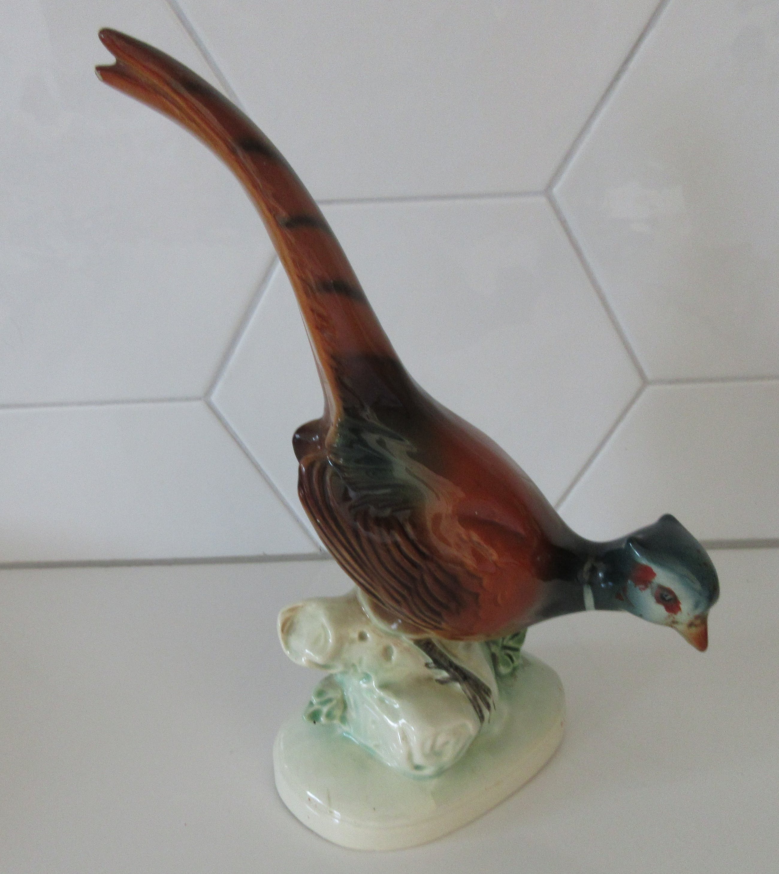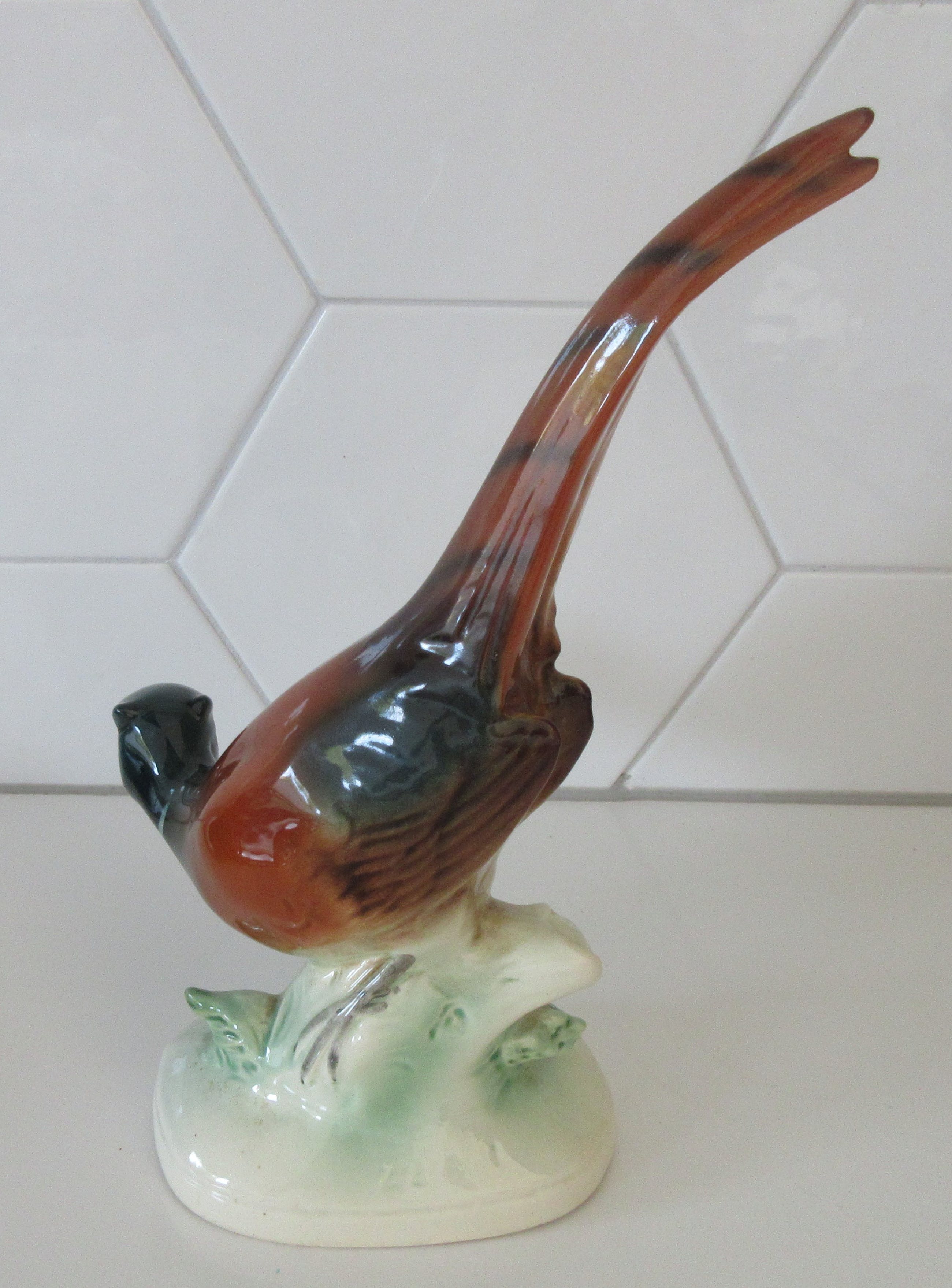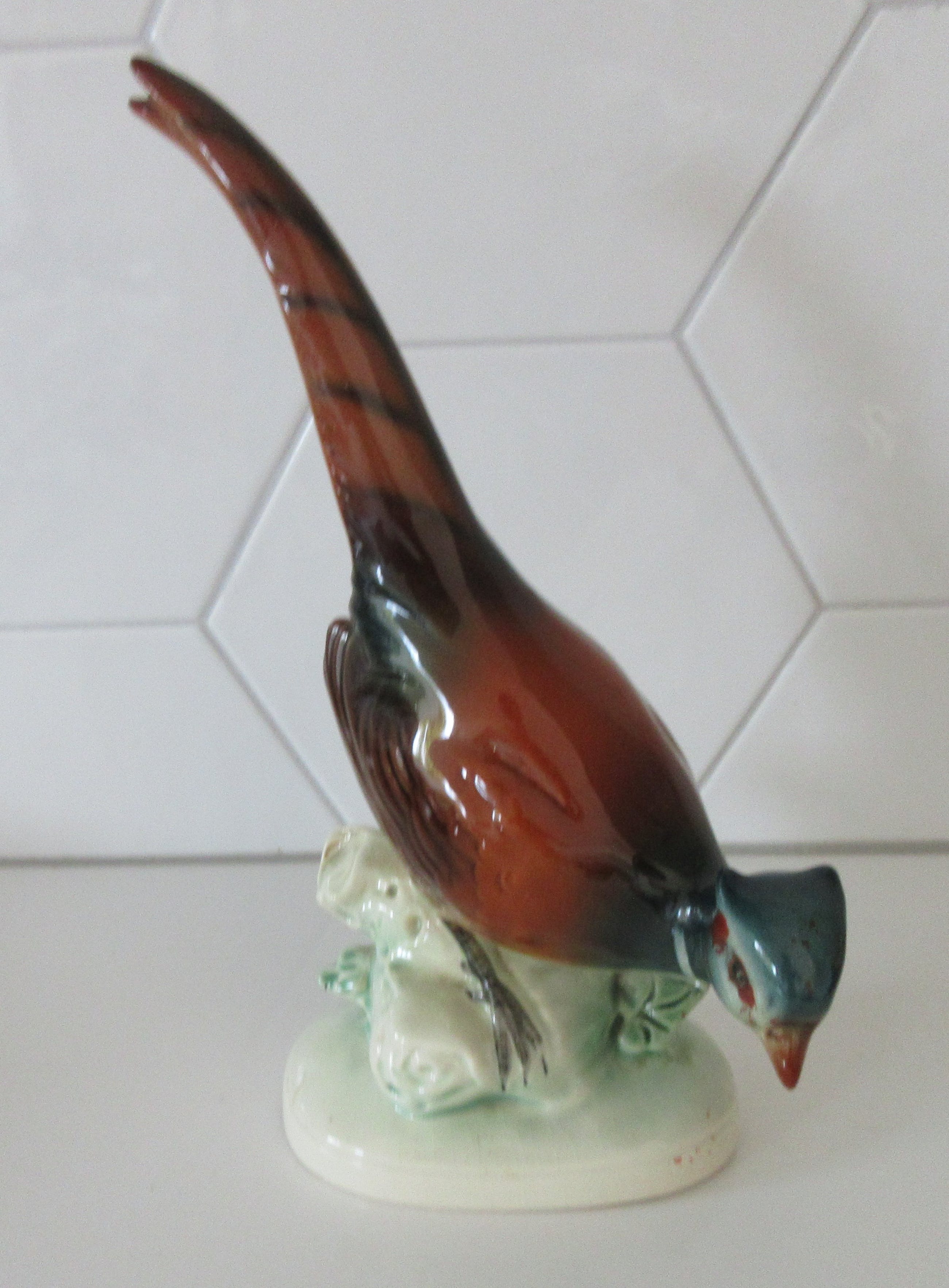 Art deco aardewerken plastiek van een fazant. Gemaakt in Duitsland maar ongemerkt alleen voorzien van een nummer op de achterzijde.