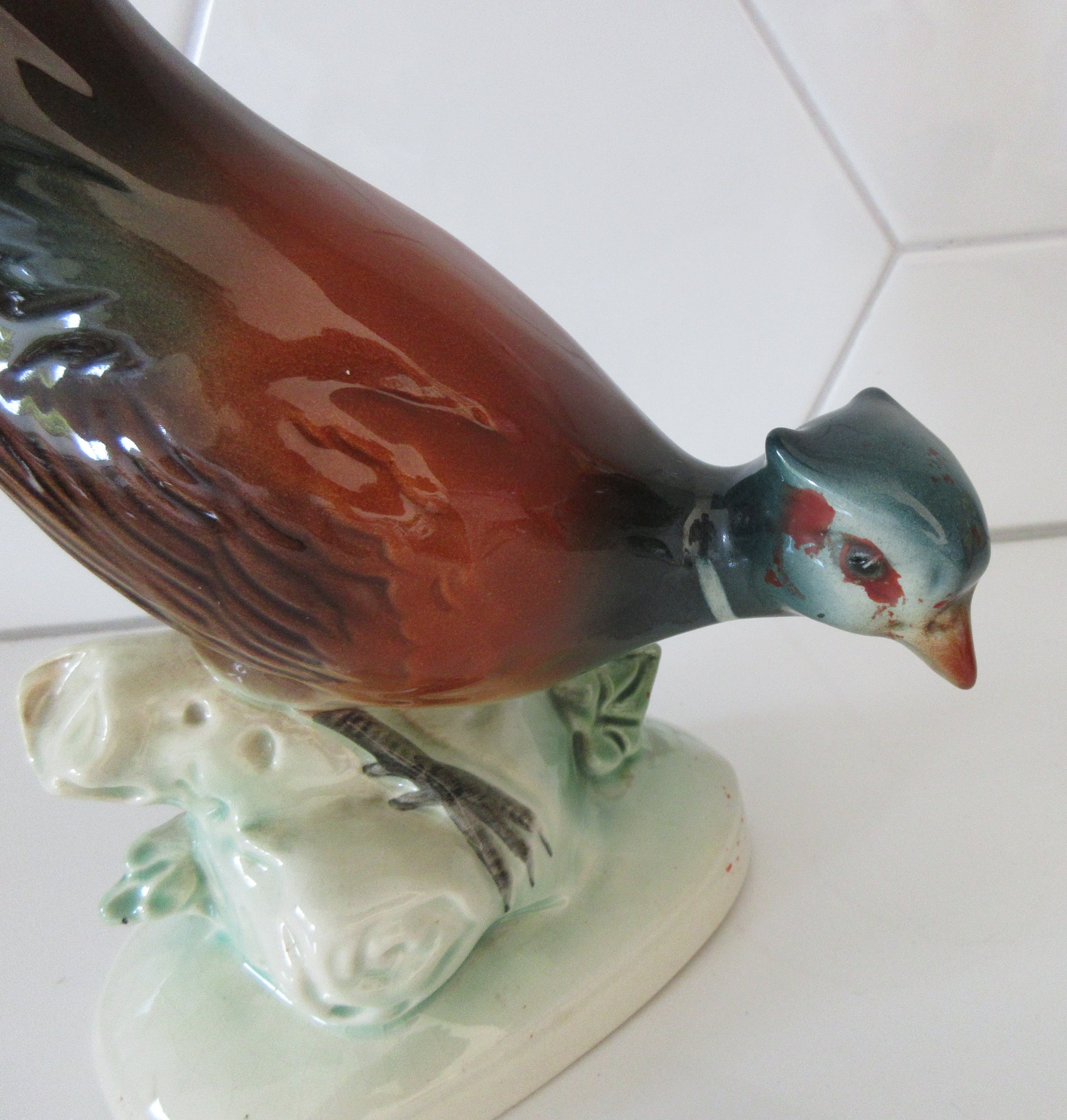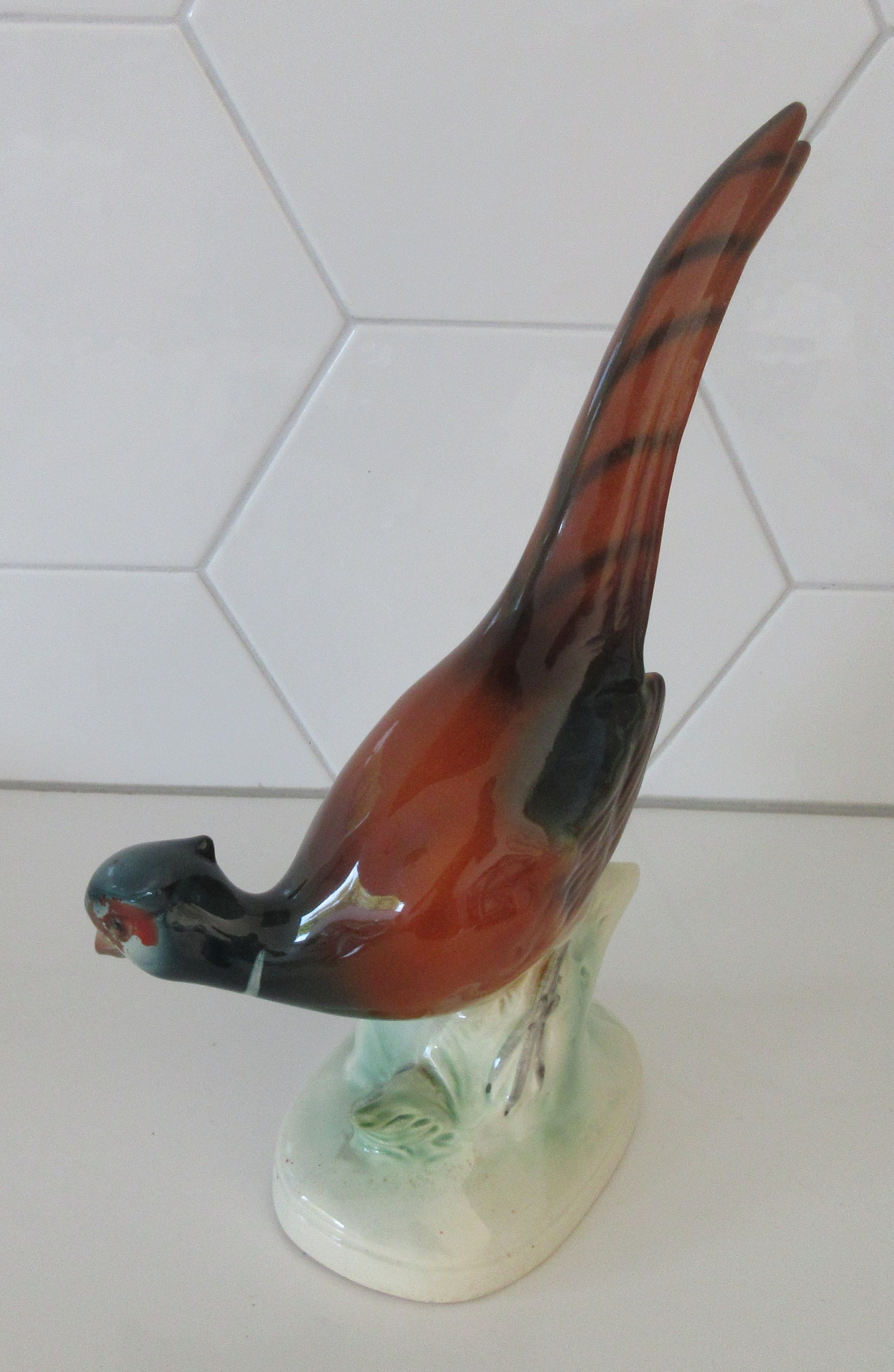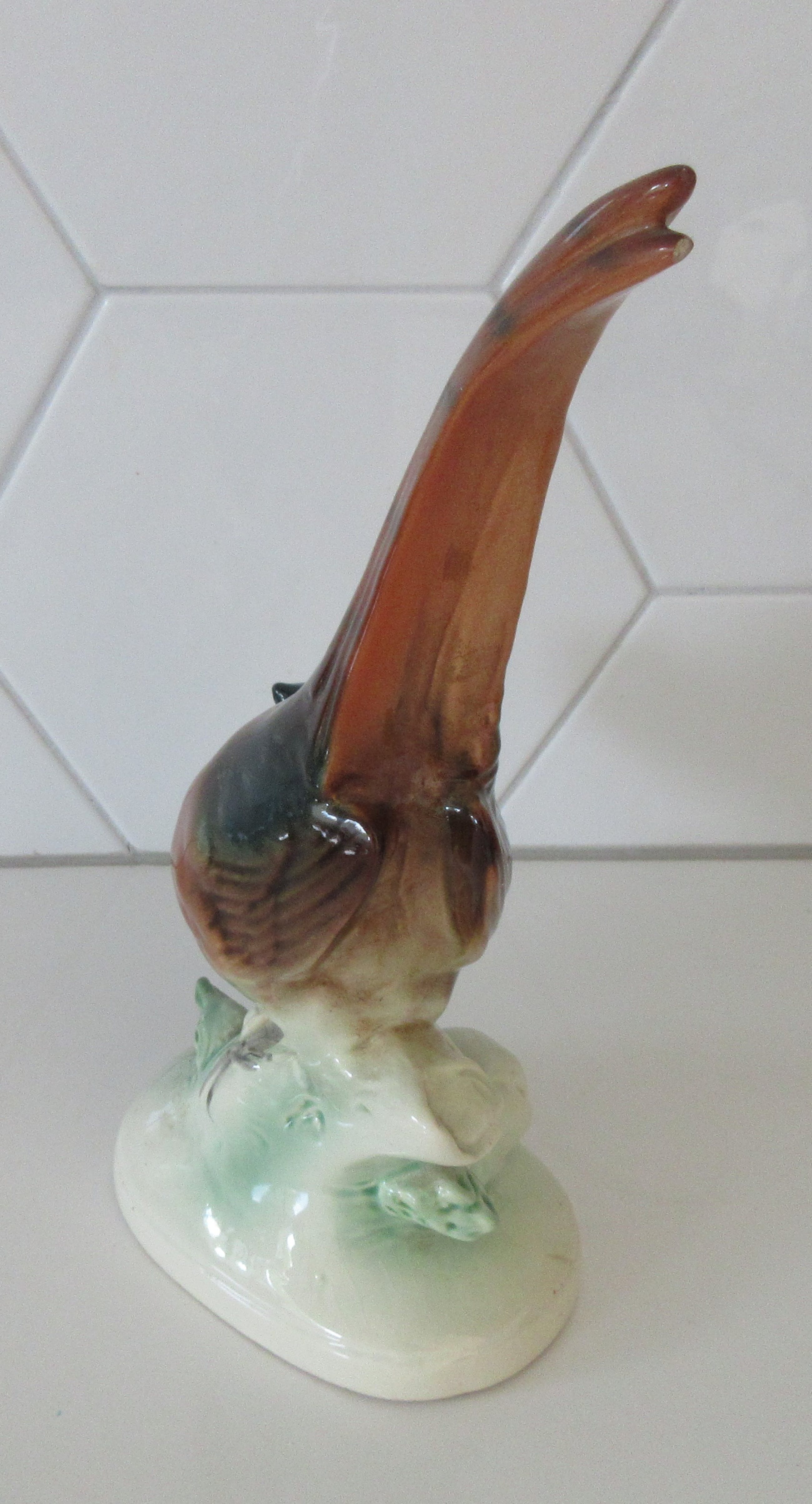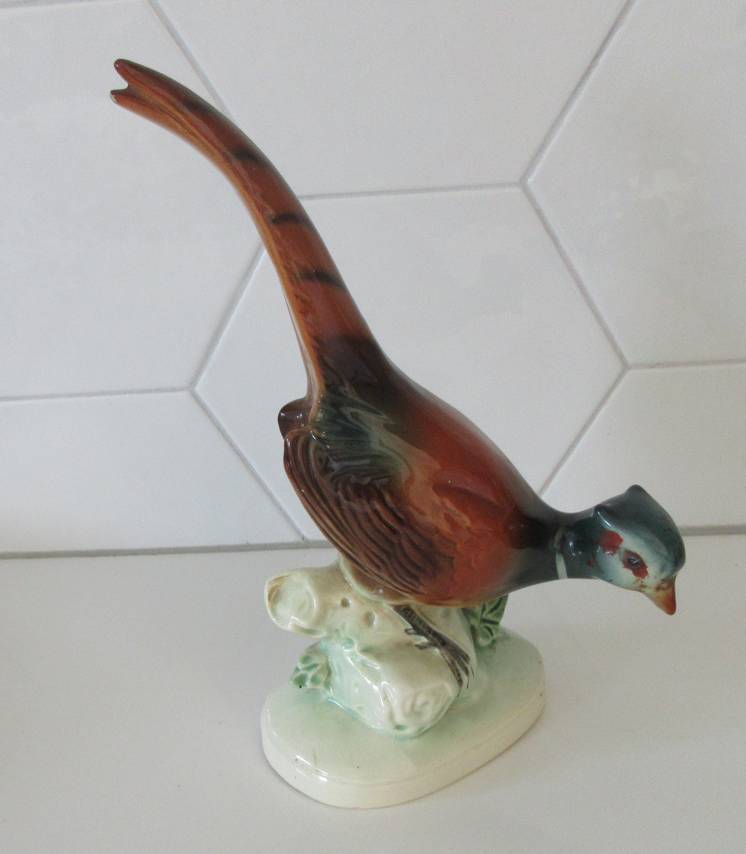 Art deco aardewerken plastiek van een fazant. Gemaakt in Duitsland maar ongemerkt alleen voorzien van een nummer op de achterzijde.