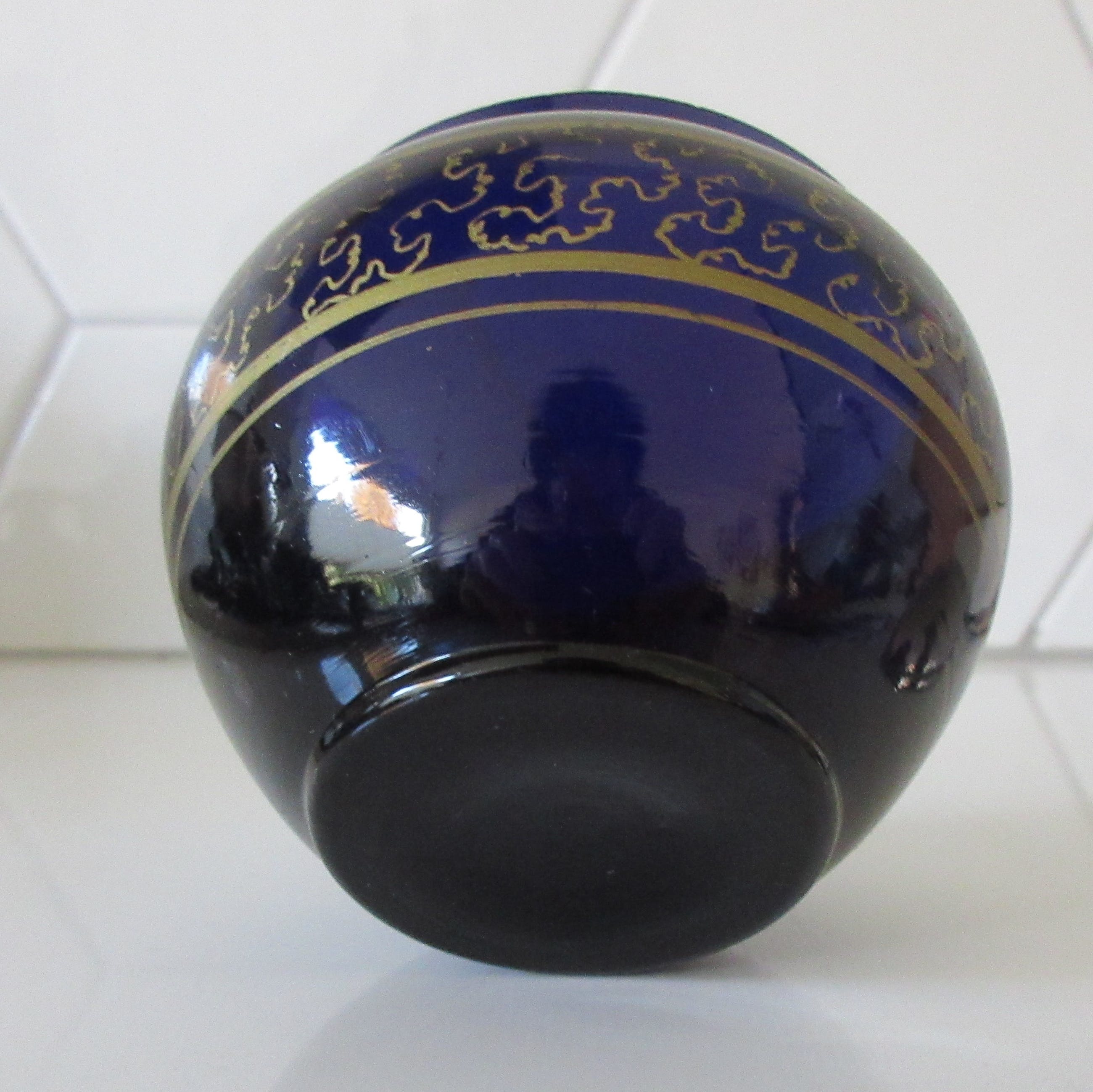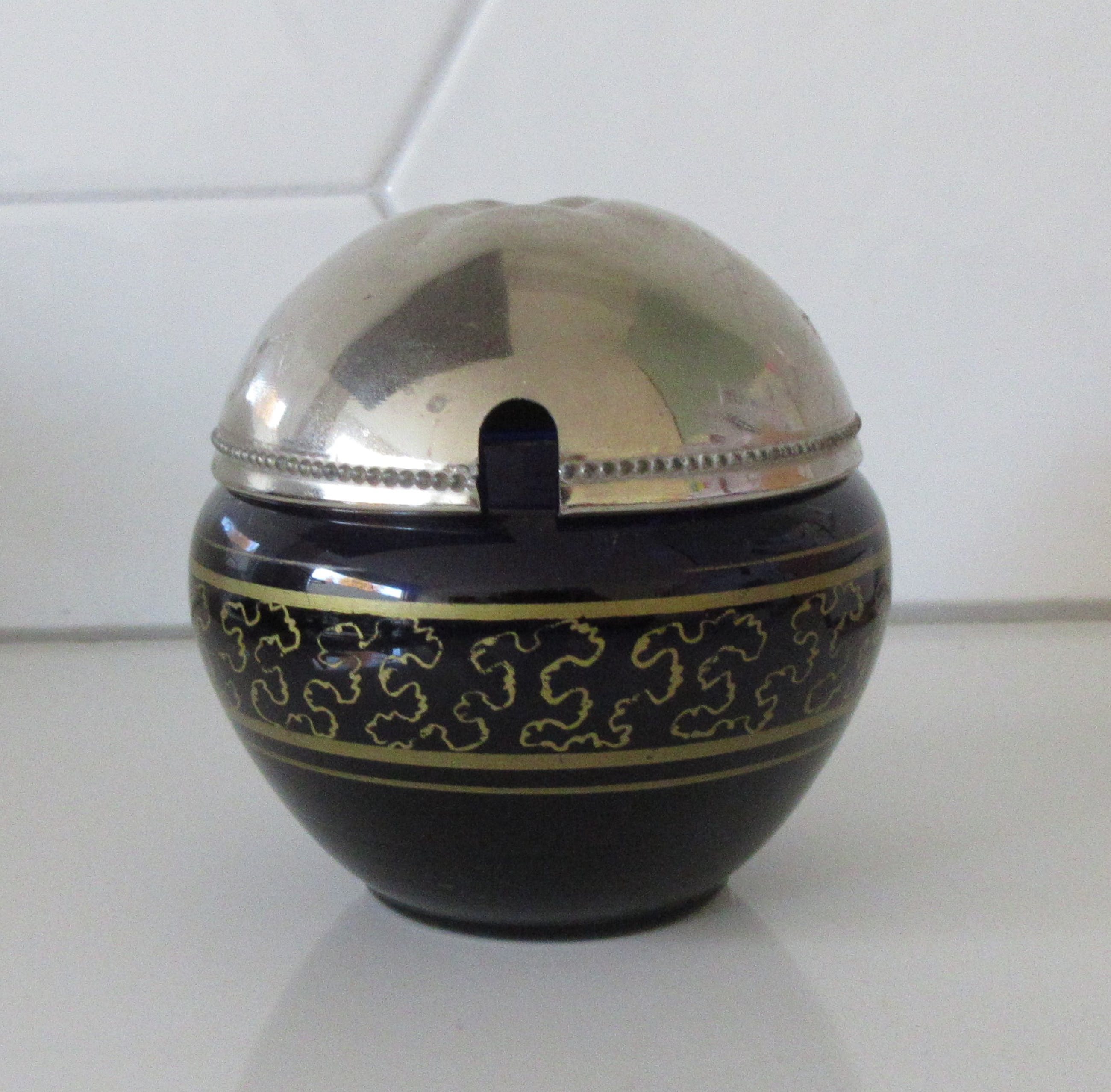 Onbekend - Art deco blauw glazen verguld suikerpotje met metalen deksel - Verkocht