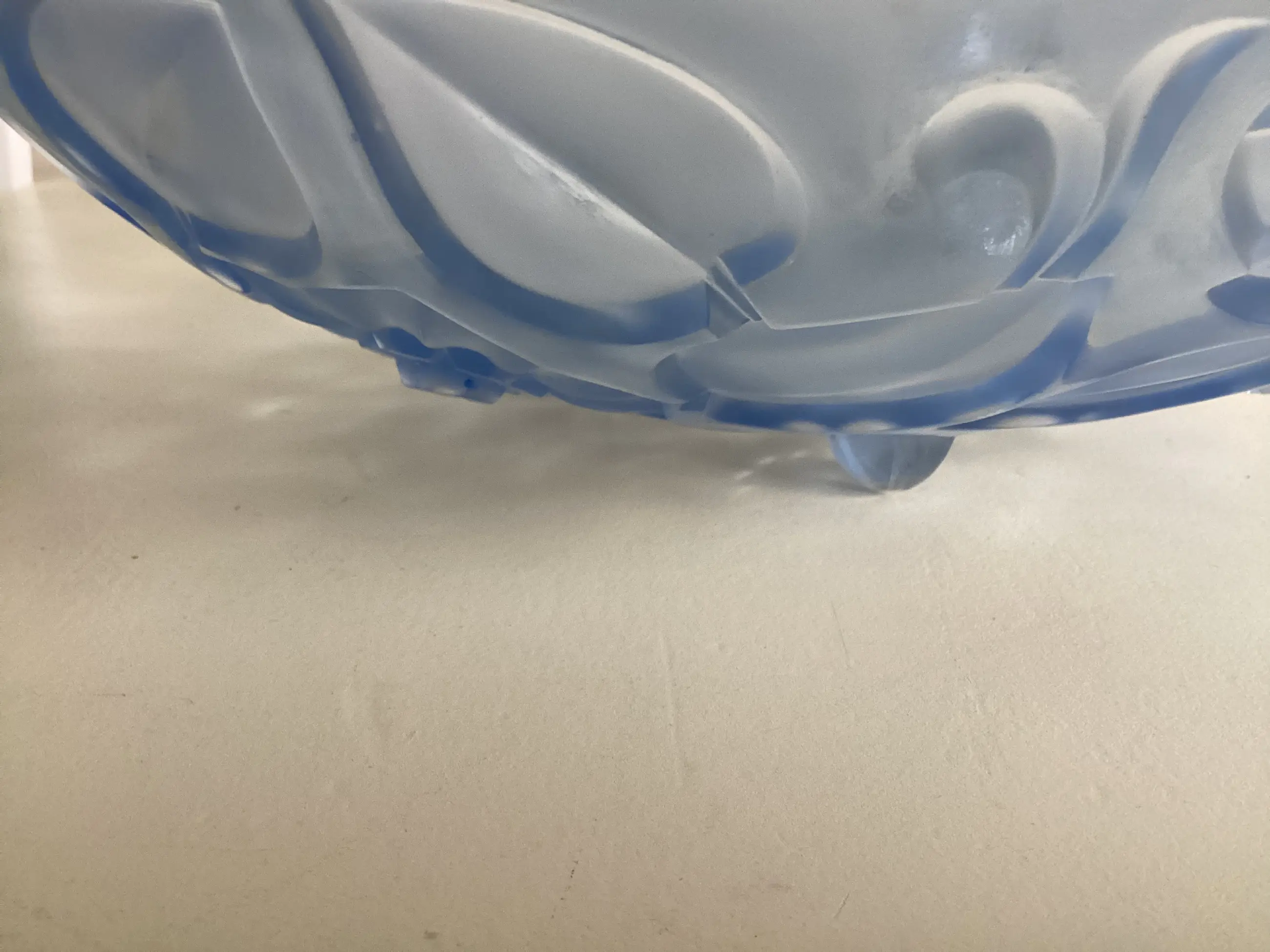 Art Deco licht blauwe glazen schaal op pootjes.