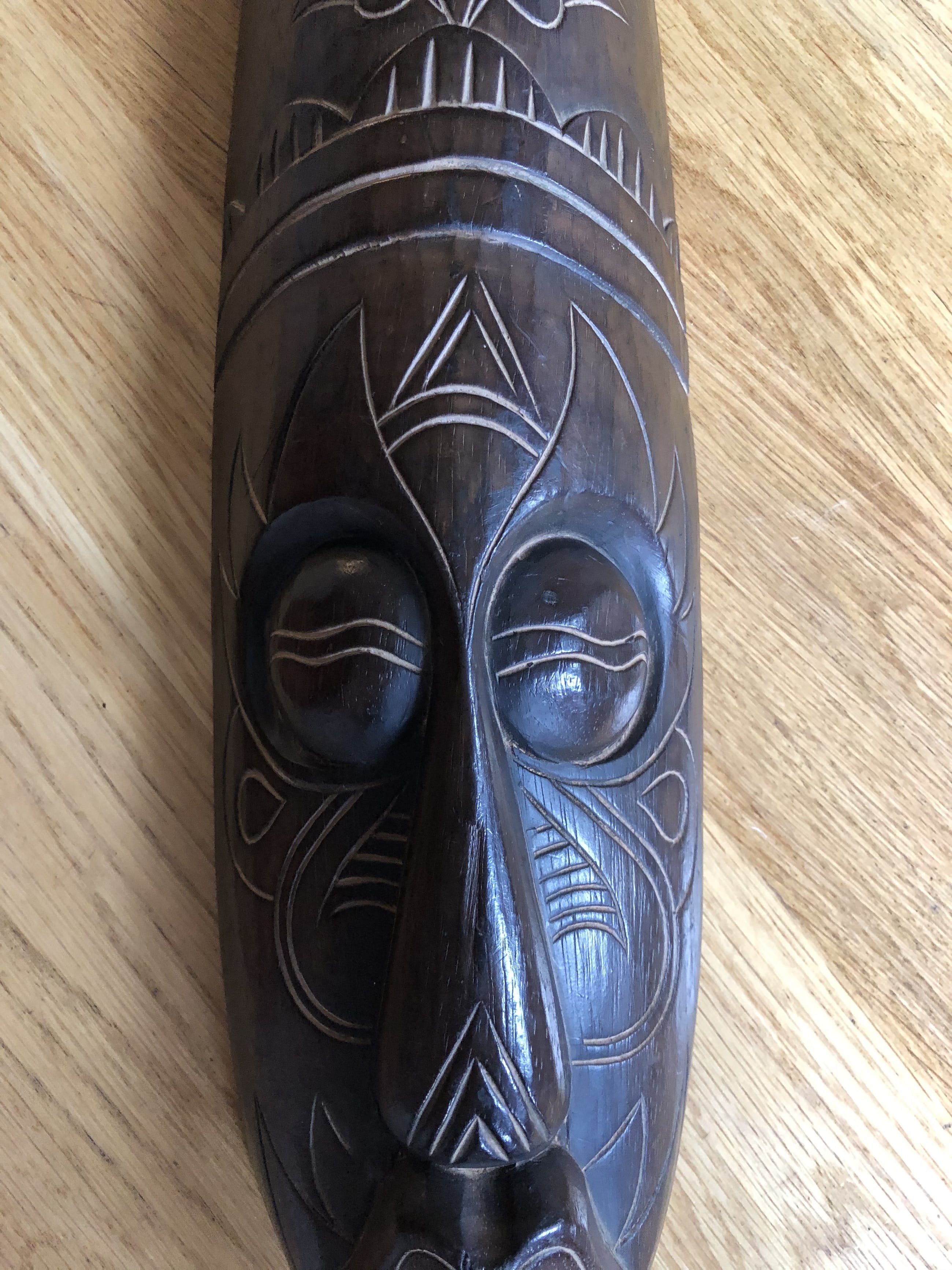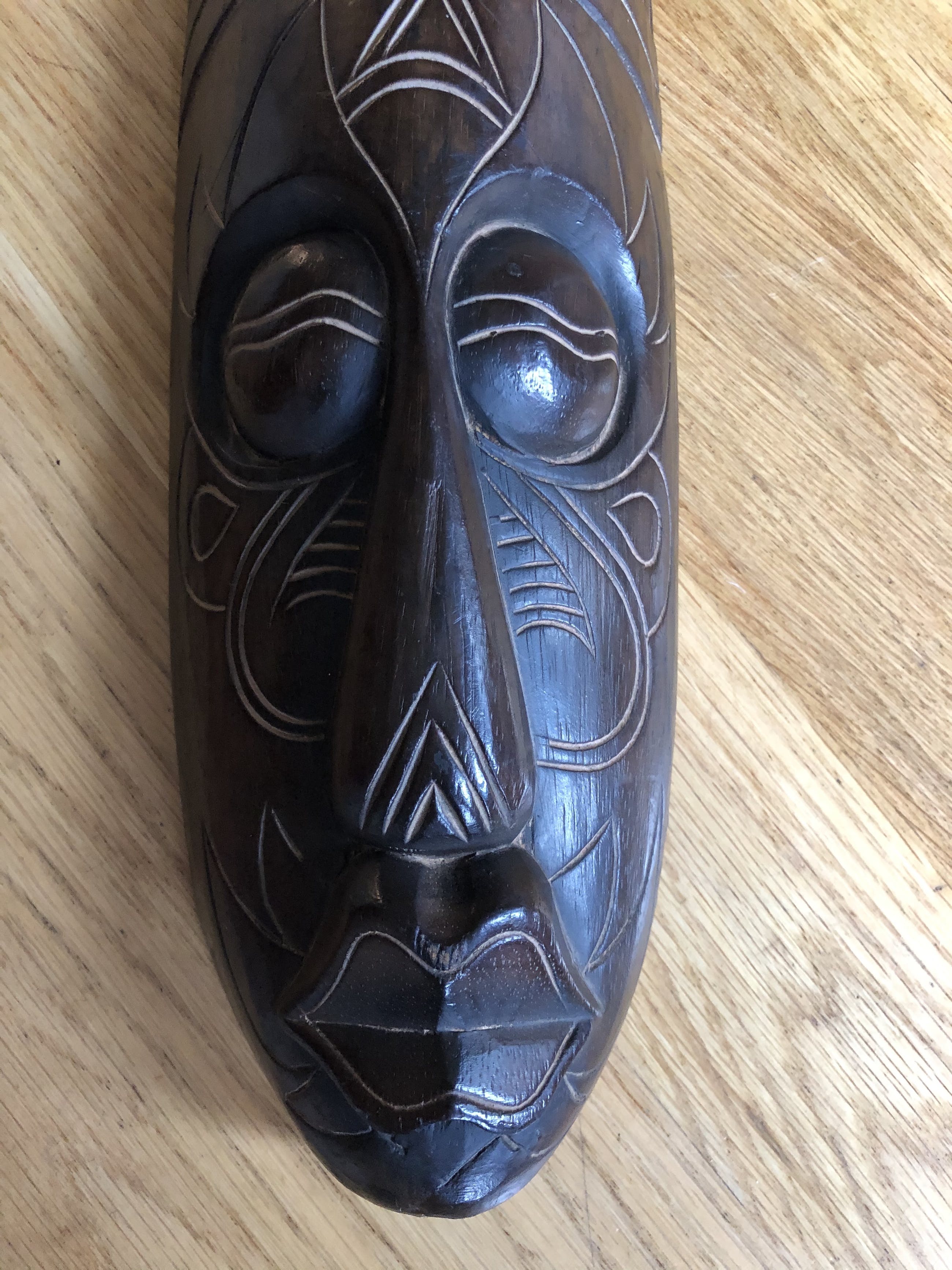 Artisanaal masker uit Bali, Indonesië. Vervaardigd uit één stuk hout met mooie houtgesneden details.