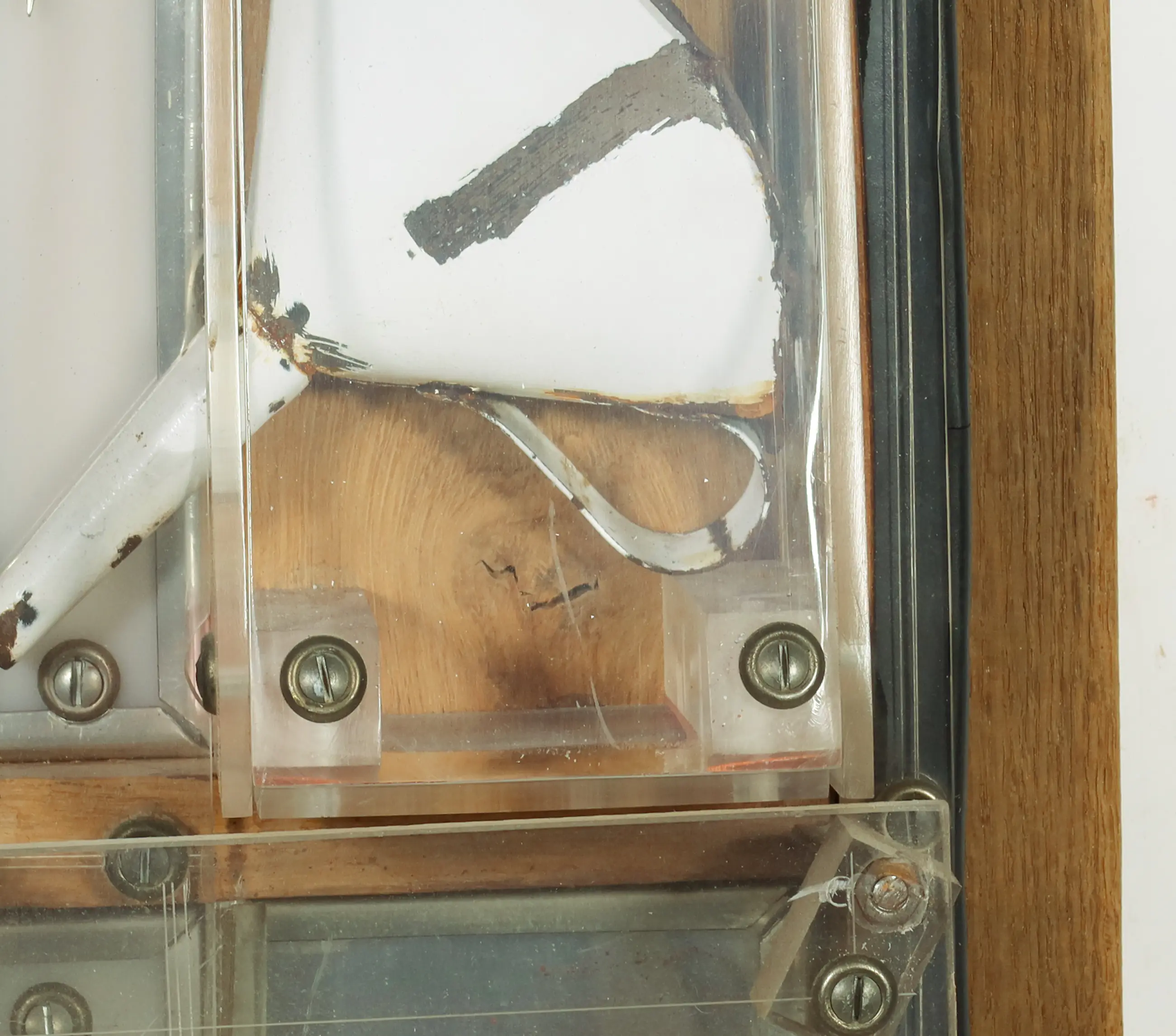 Wat krassen op het plexiglas, daarnaast is het werk wat vuil. | |||||||||