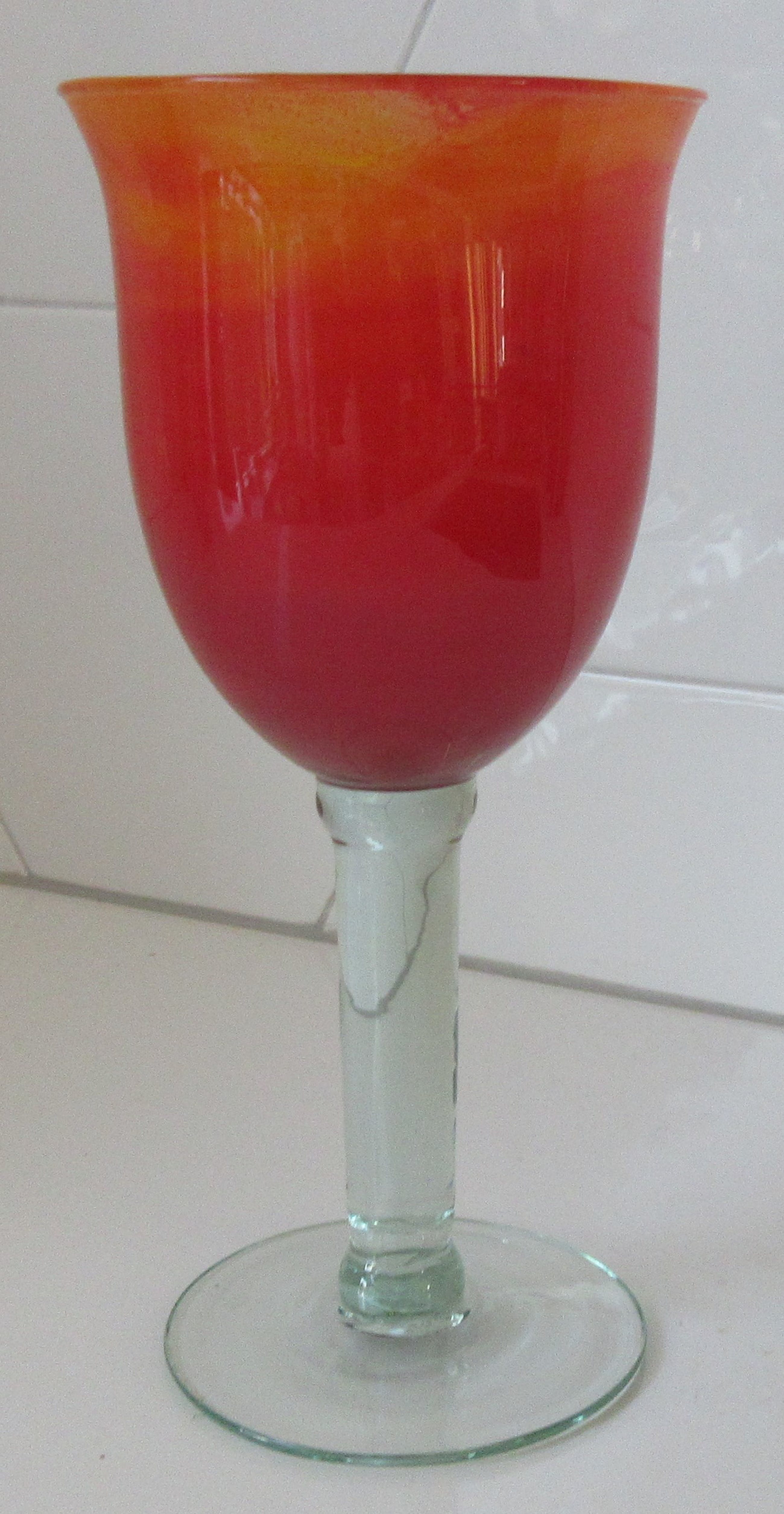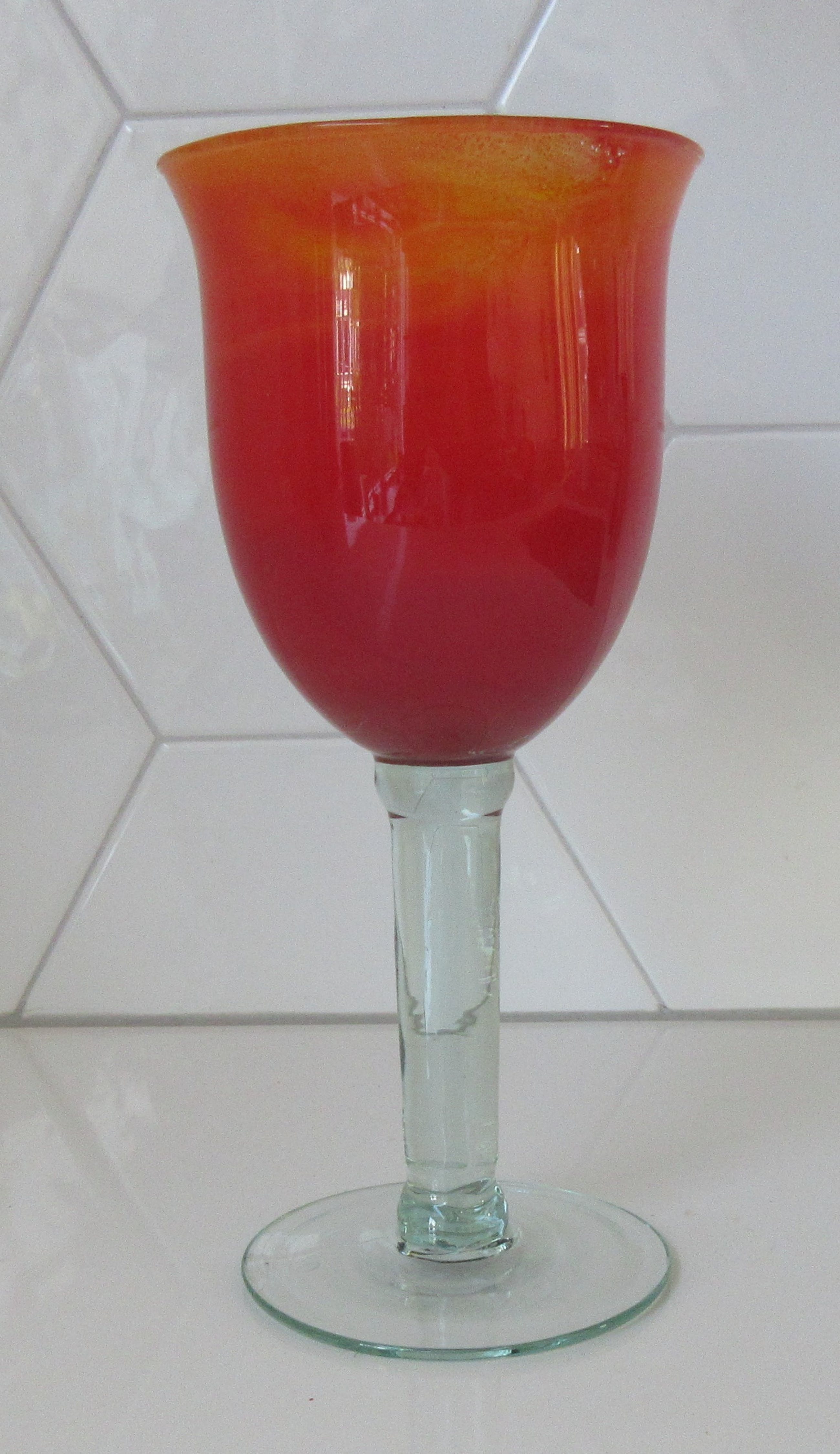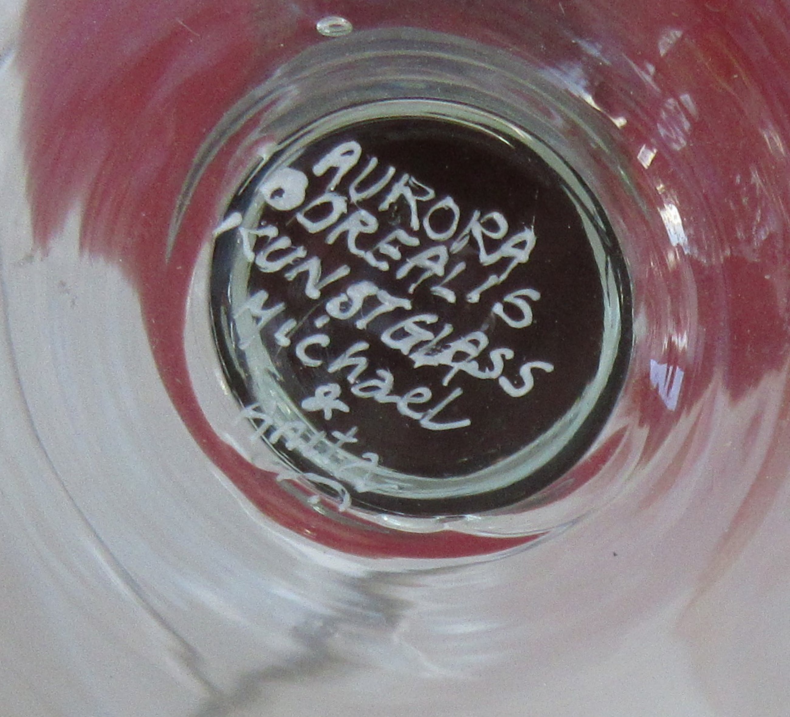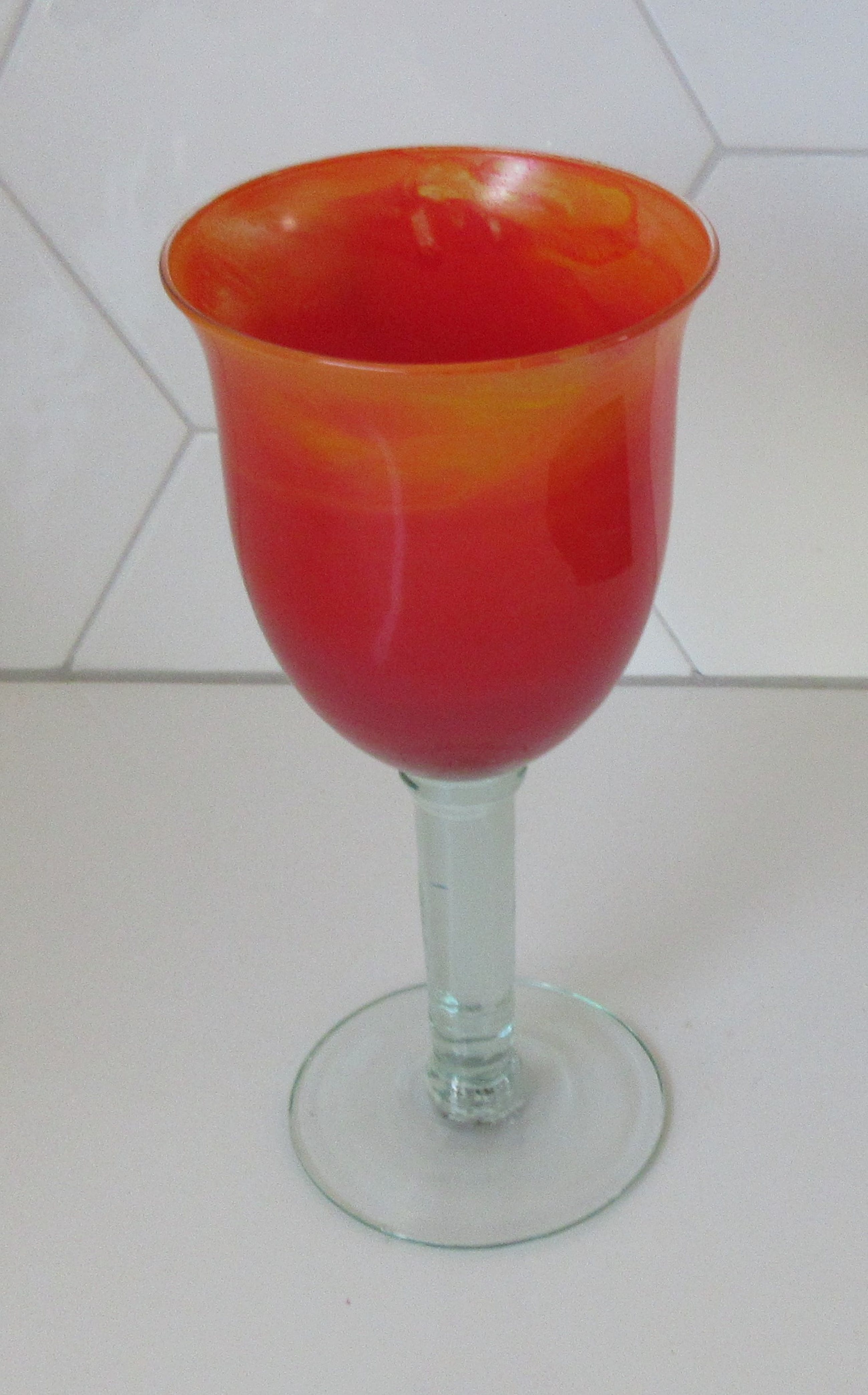 Aurora Borealis - Finse Studio glazen oranje rood Kelkglas. Aan de onderzijde gesigneerd incluis Michael & Anita. Mooi studio hand geblazen glas aan de binnenzijde beschilderd.