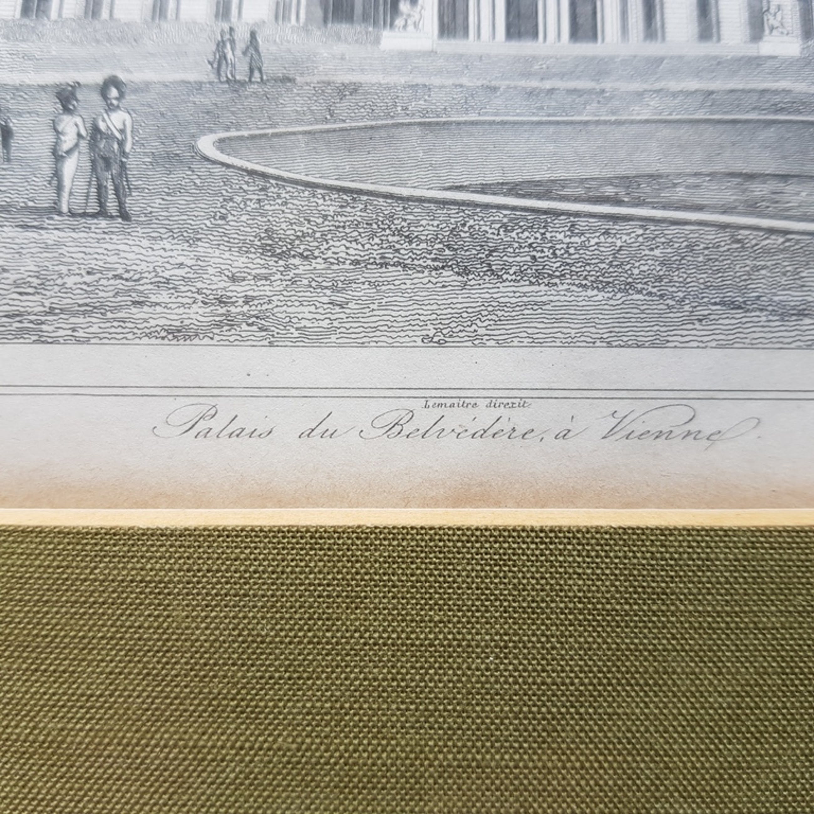 Gravure Jaar 18e eeuw, 17e eeuw Staat Over het algemeen in goede staat Titel van kunstwerk:autriche palais du belvedere a vienne lemaitre dirHandtekening:Ongesigneerd Kunstenaar lemaitre direct