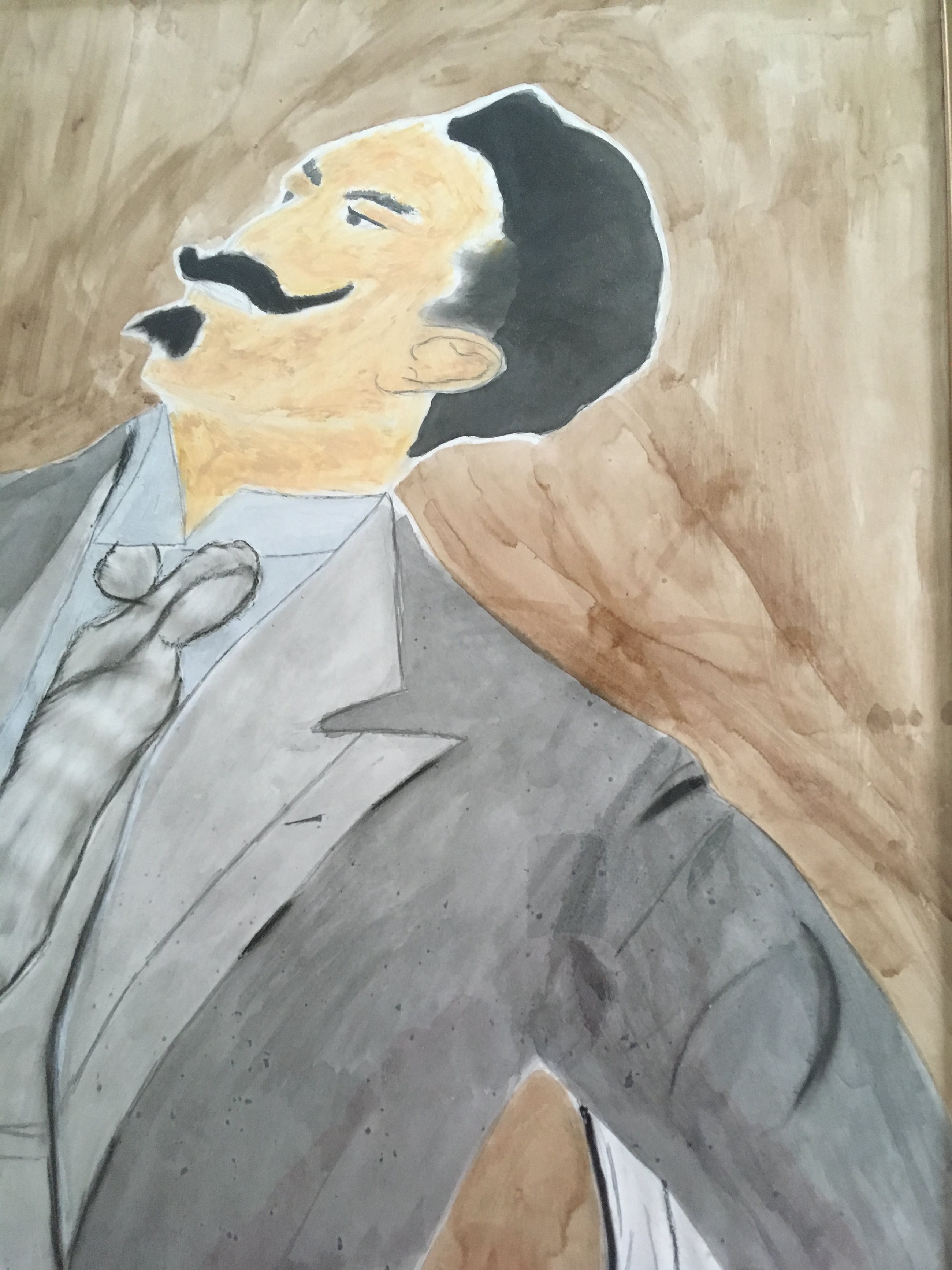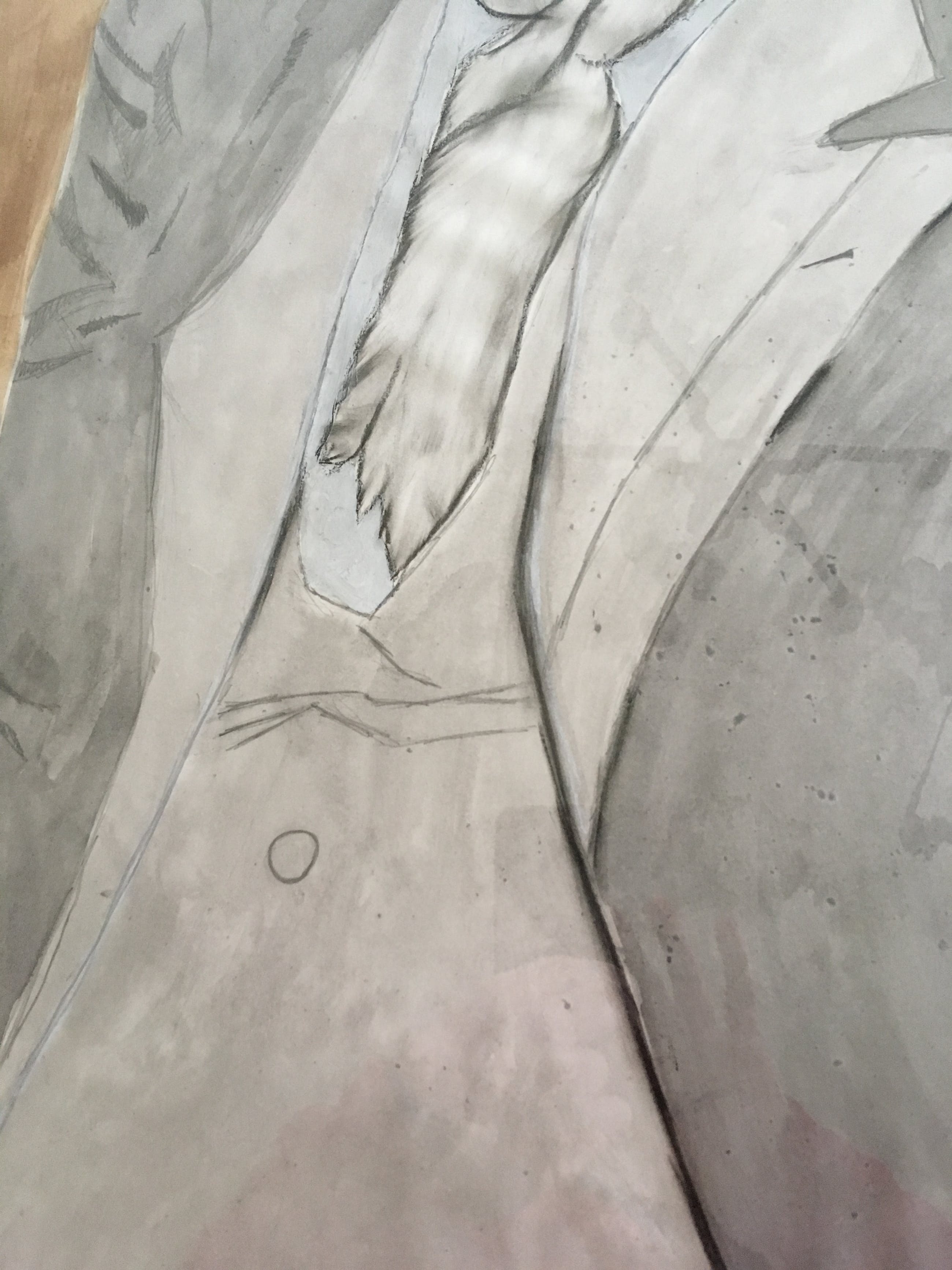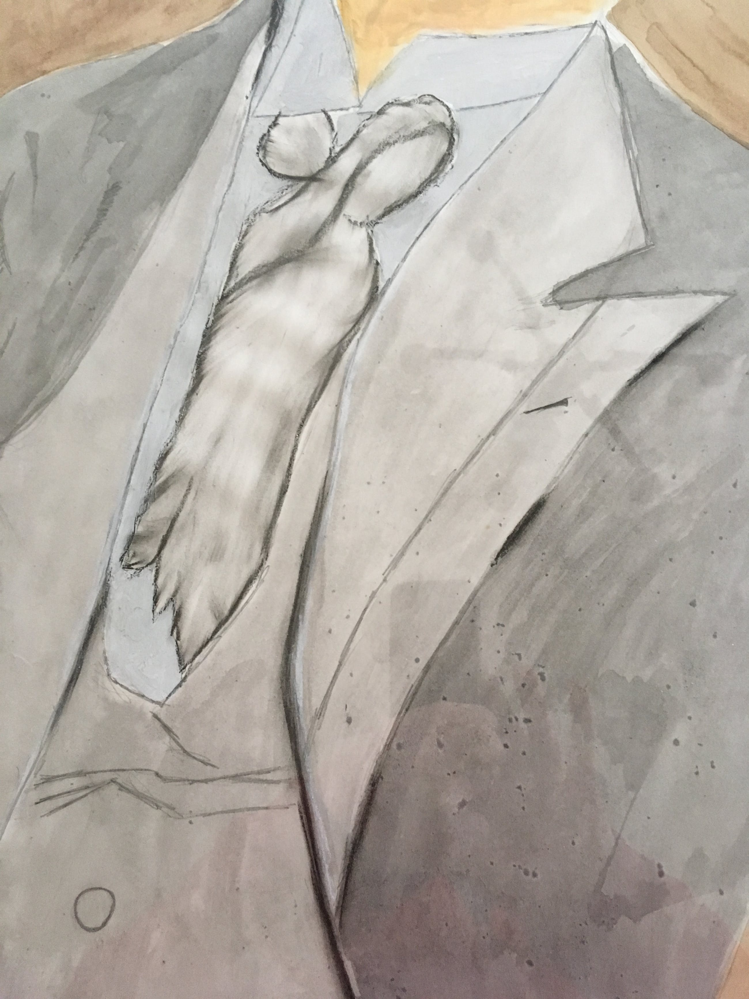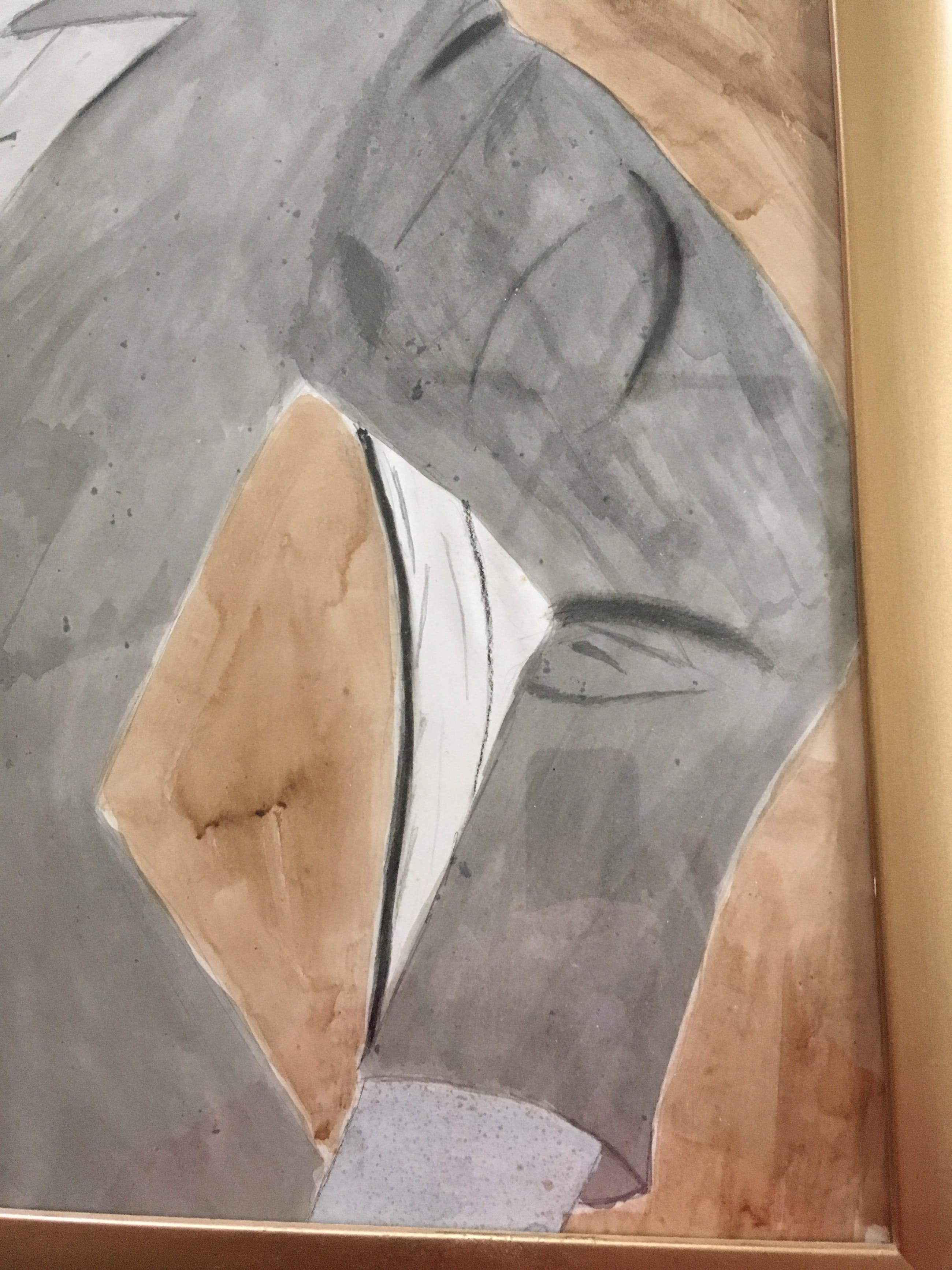 Prachtige kleuren en compositie. Bekijk de witte uitsparingen die het profiel benadrukken. Let ook op de verschillende soorten grijstinten. Zie ook hoe de witte uitsparing van de stoelleuning een rustpunt creëert voor het oog.