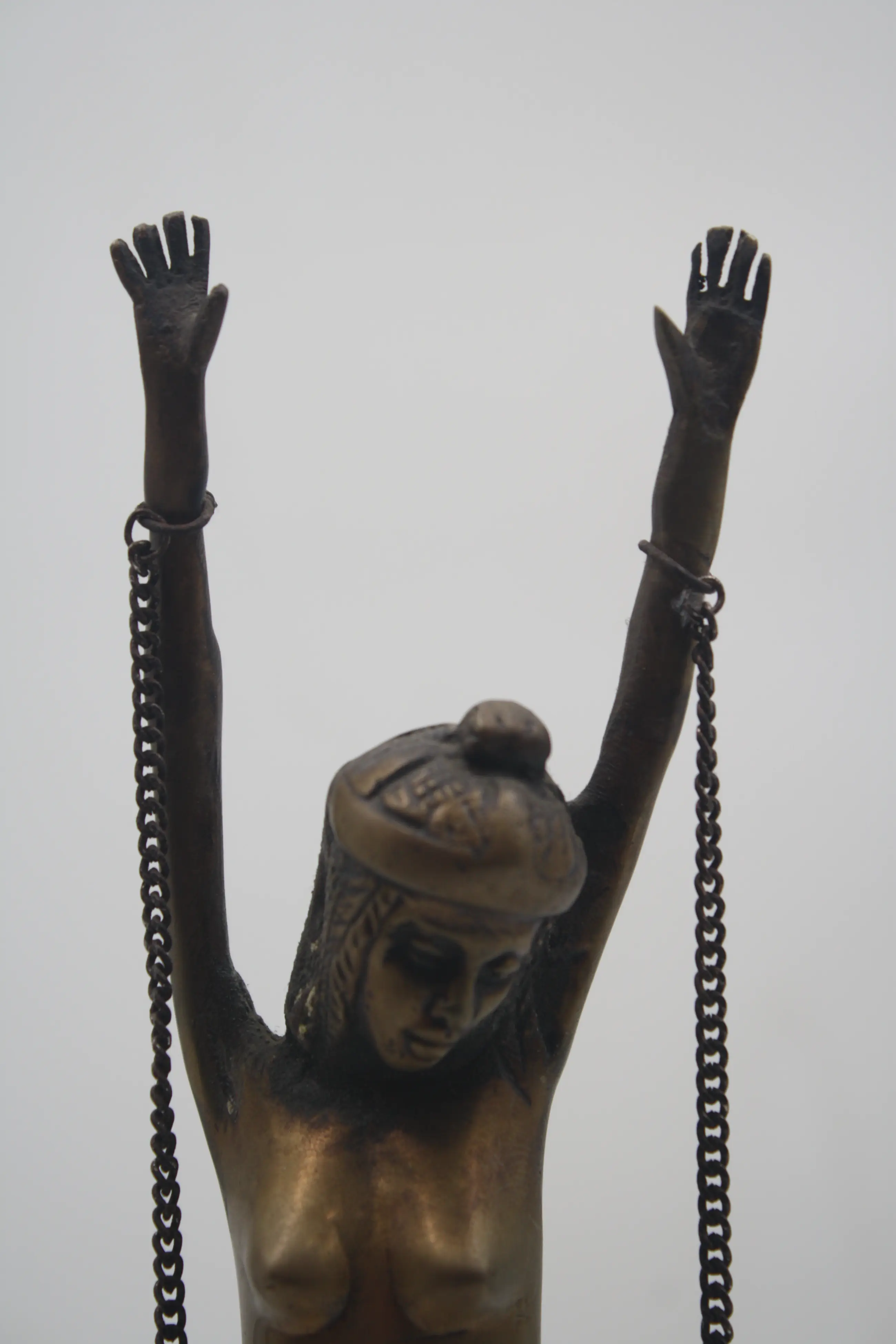 Prachtig Groot Zwaar Antiek Zeldzaam Bronzen Beeld van een Slavin