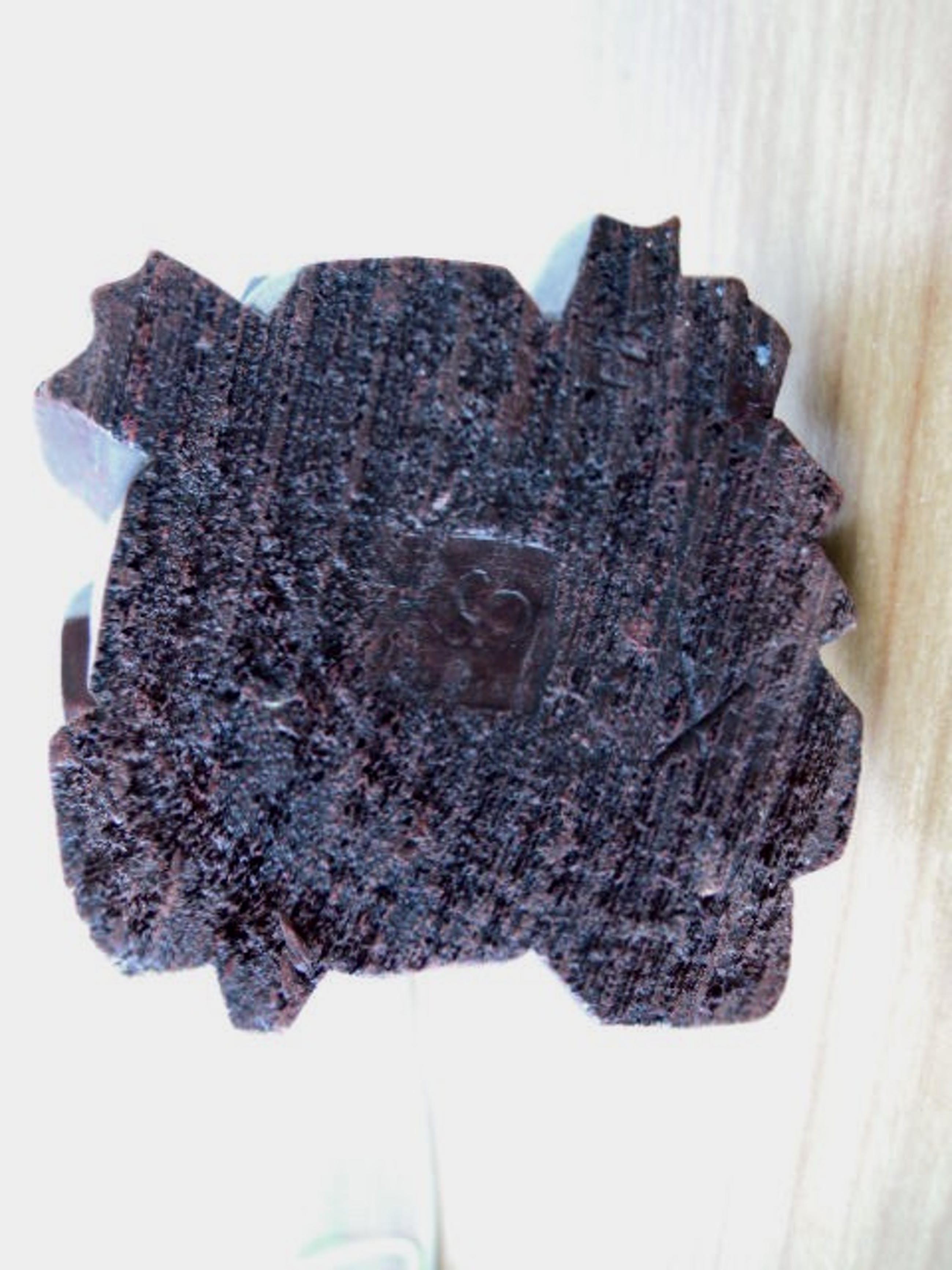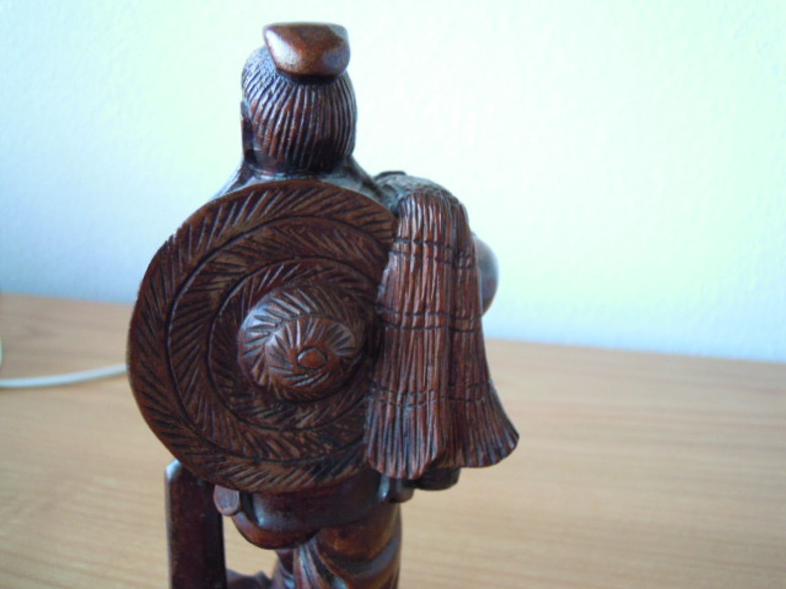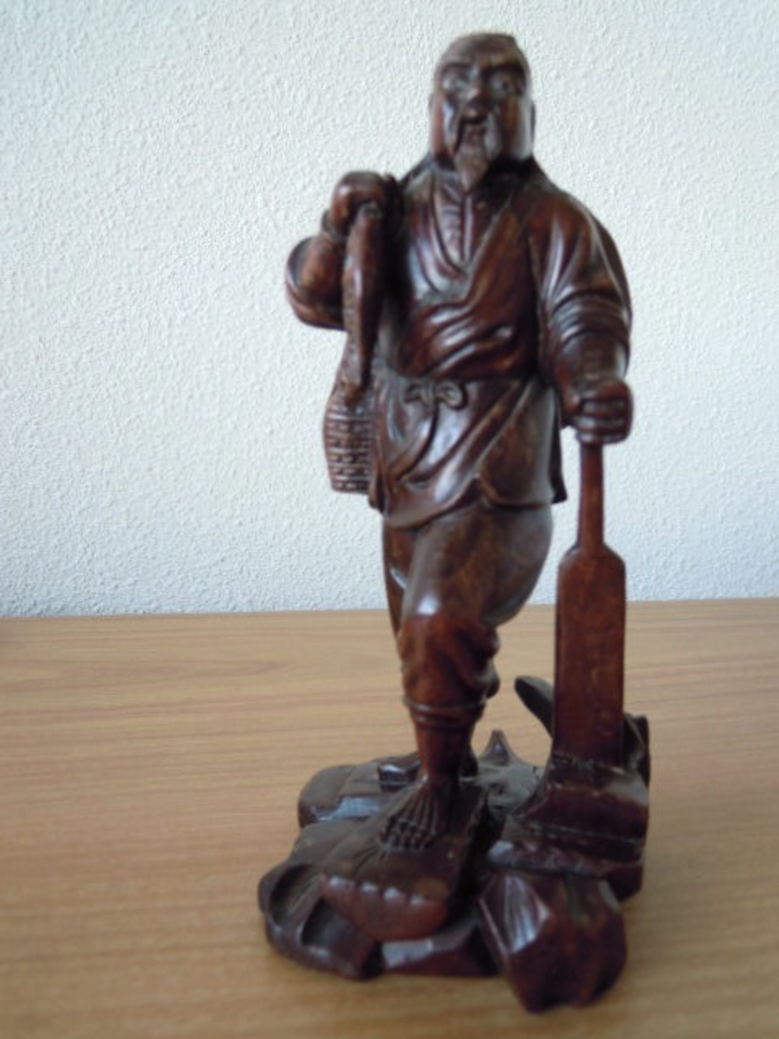 Het beeld is zeer oud en heeft daardoor wat vlekjes met zeer lichte verkleuring en een kleine plek met werking van het hout.