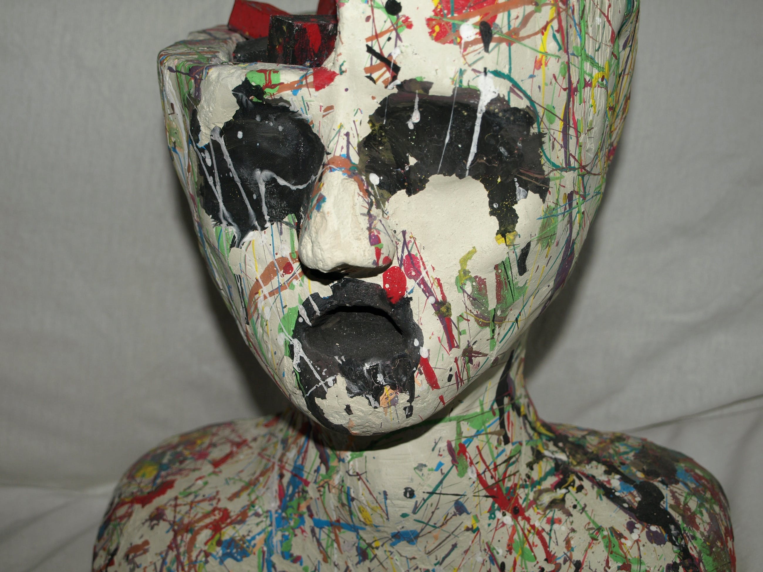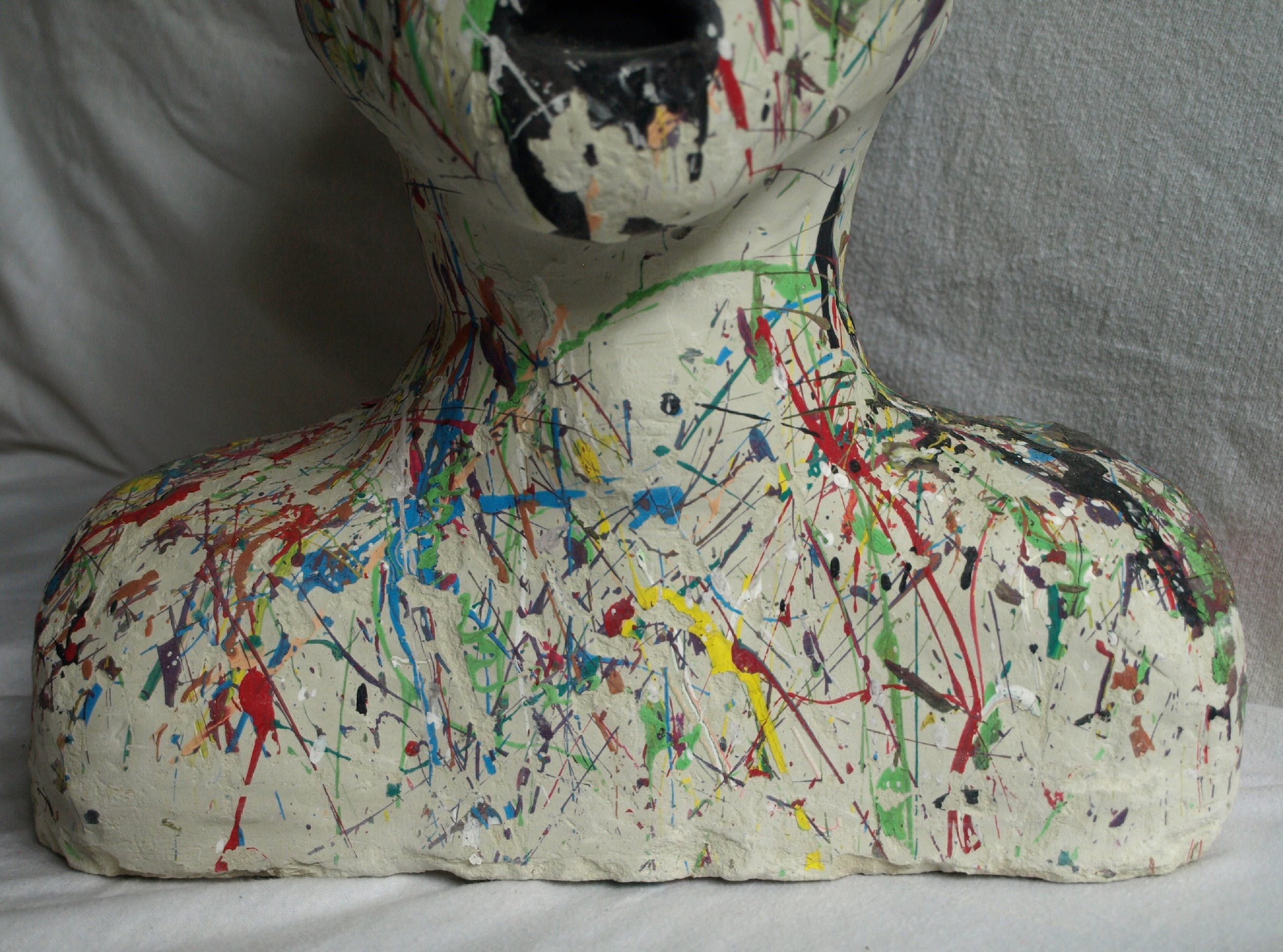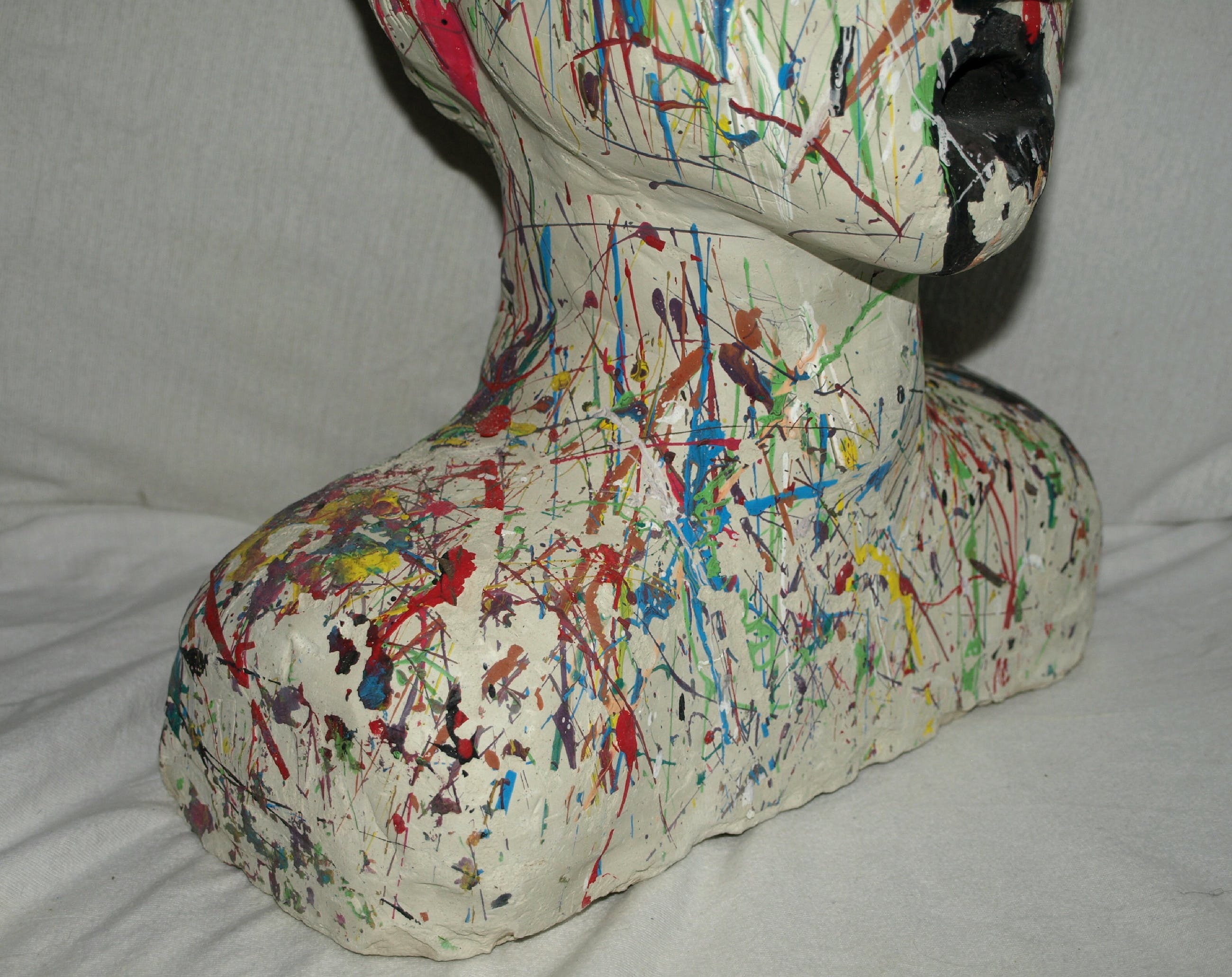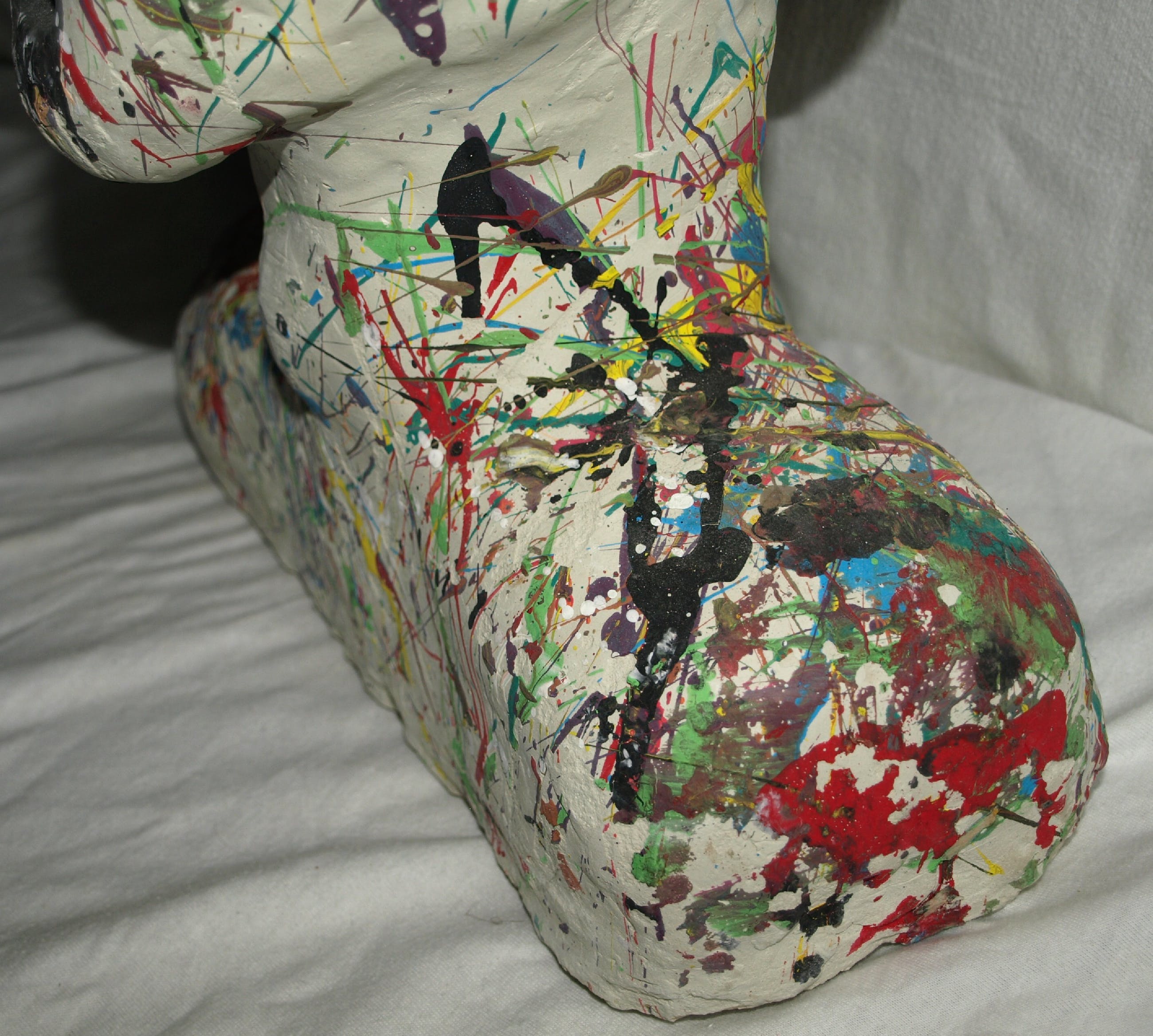 Een zwaar, van beton gegoten en met verf beschilderd beeld van een ons onbekende kunstenaar.
