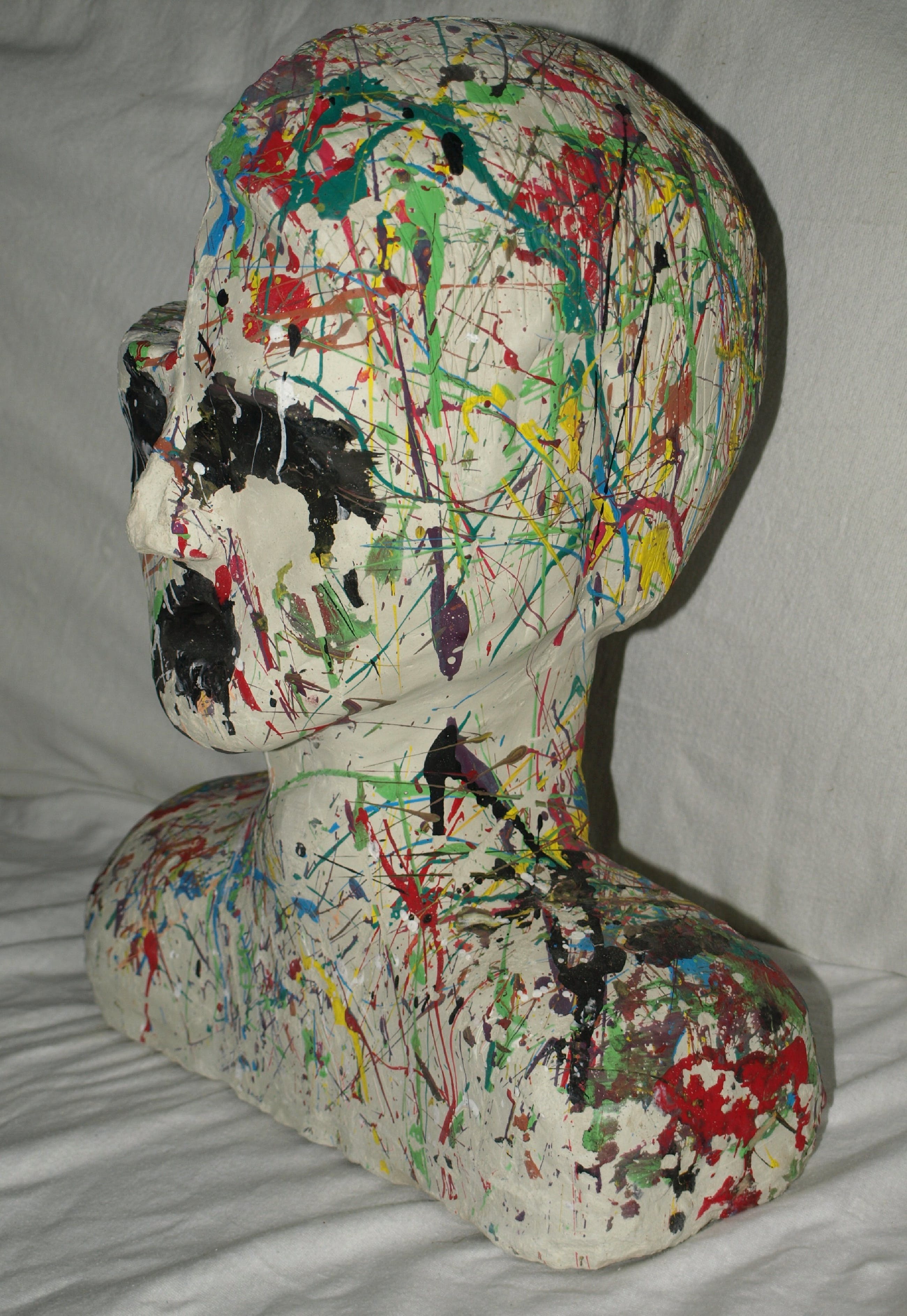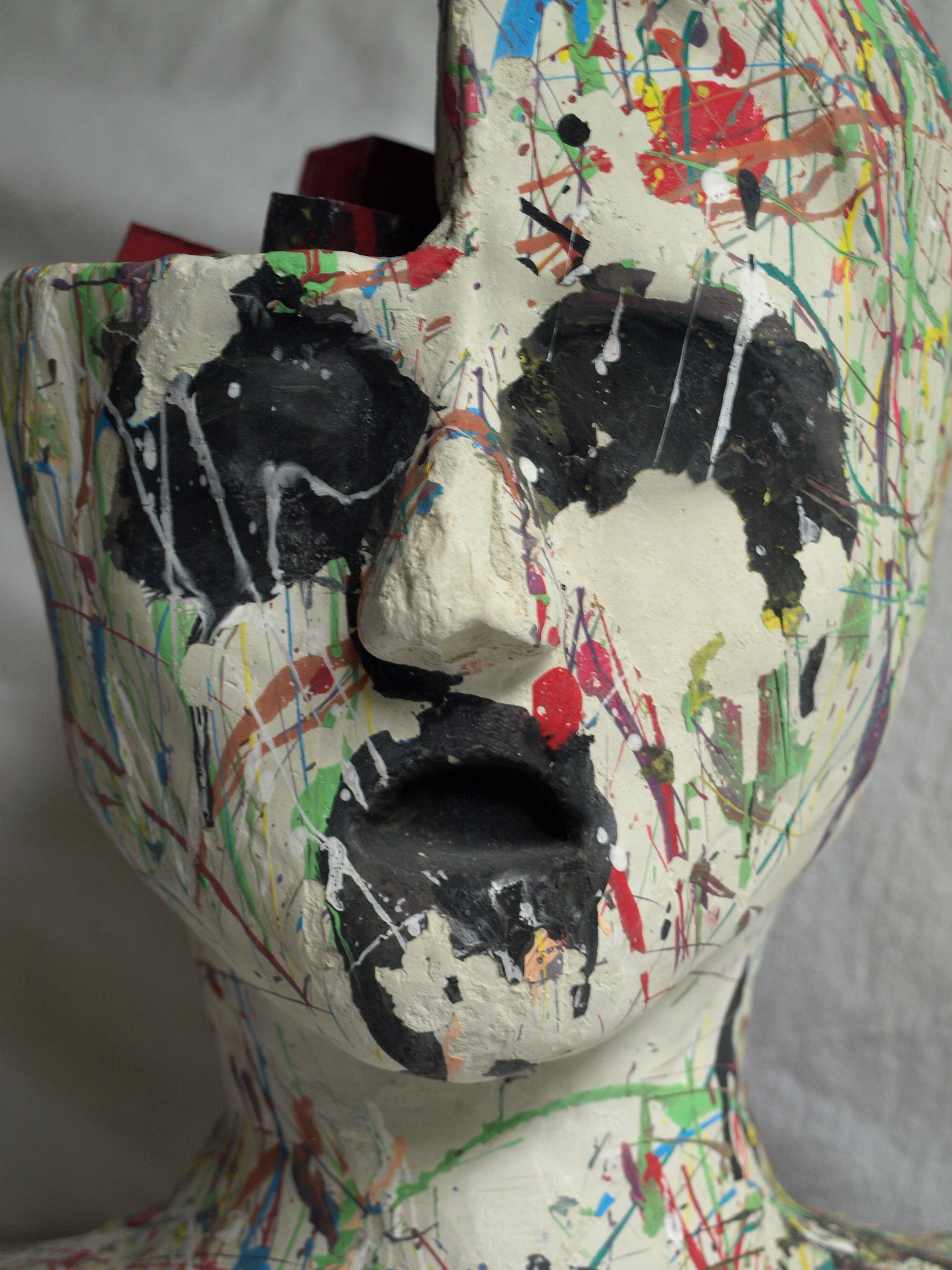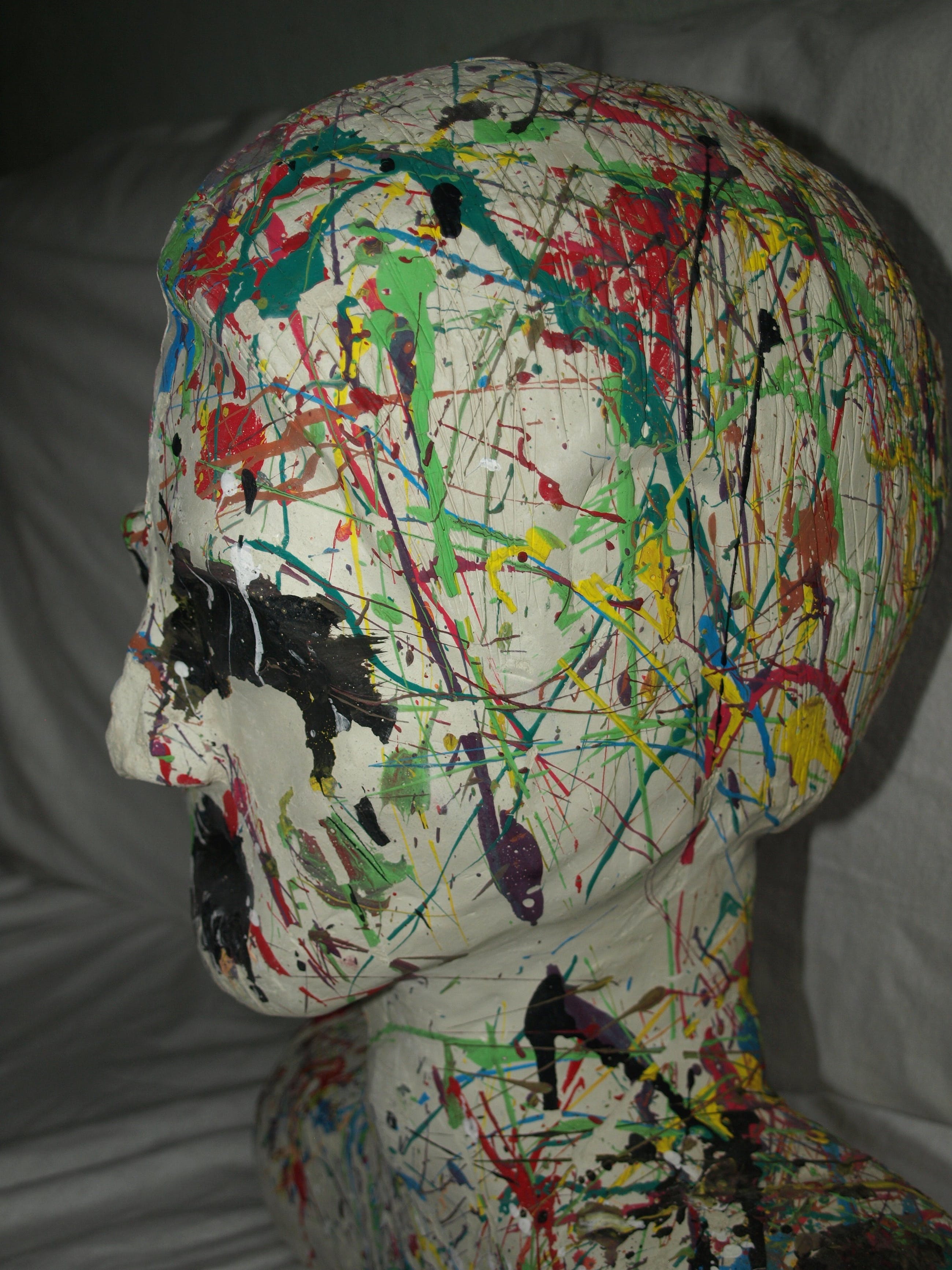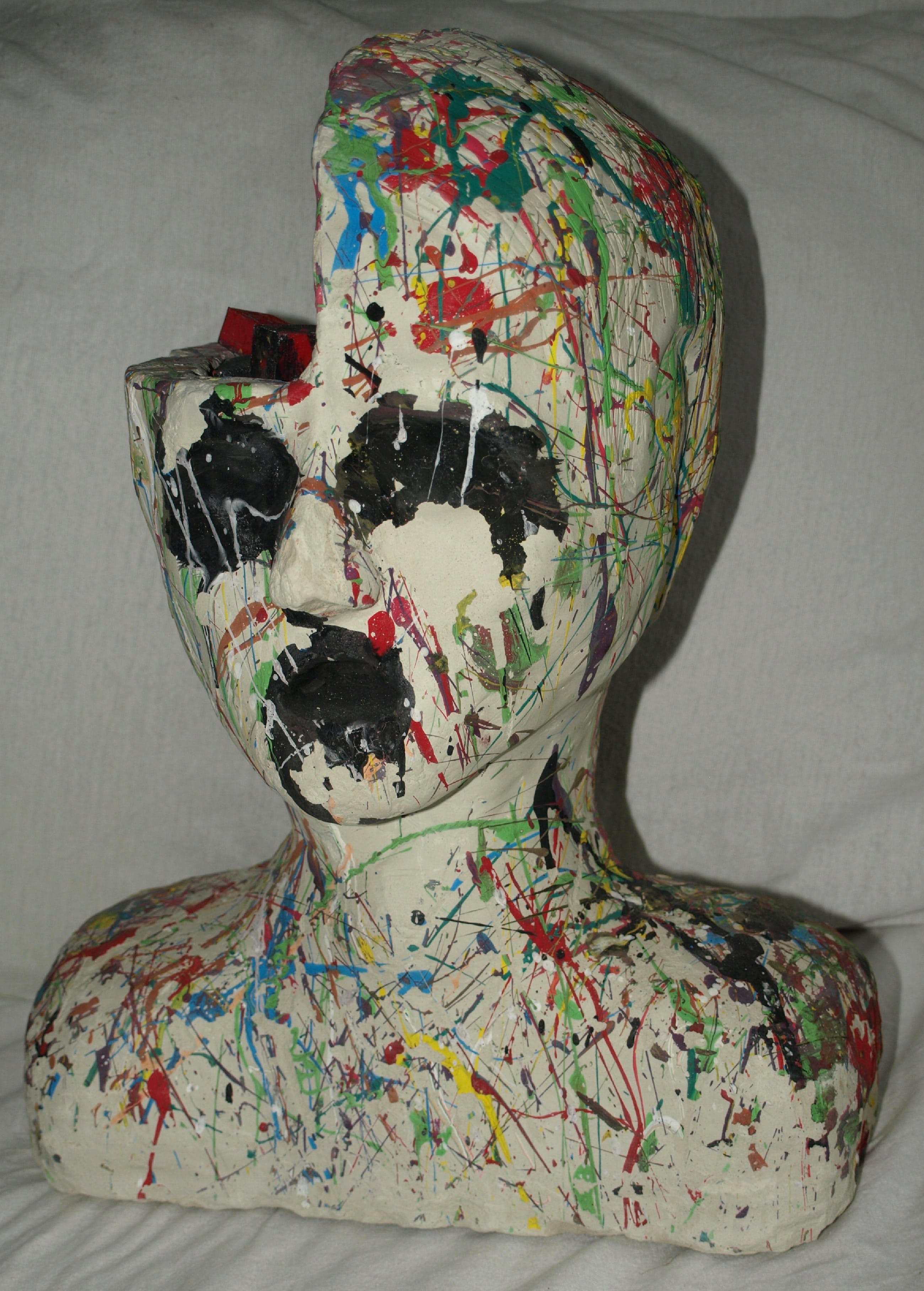 Een zwaar, van beton gegoten en met verf beschilderd beeld van een ons onbekende kunstenaar.