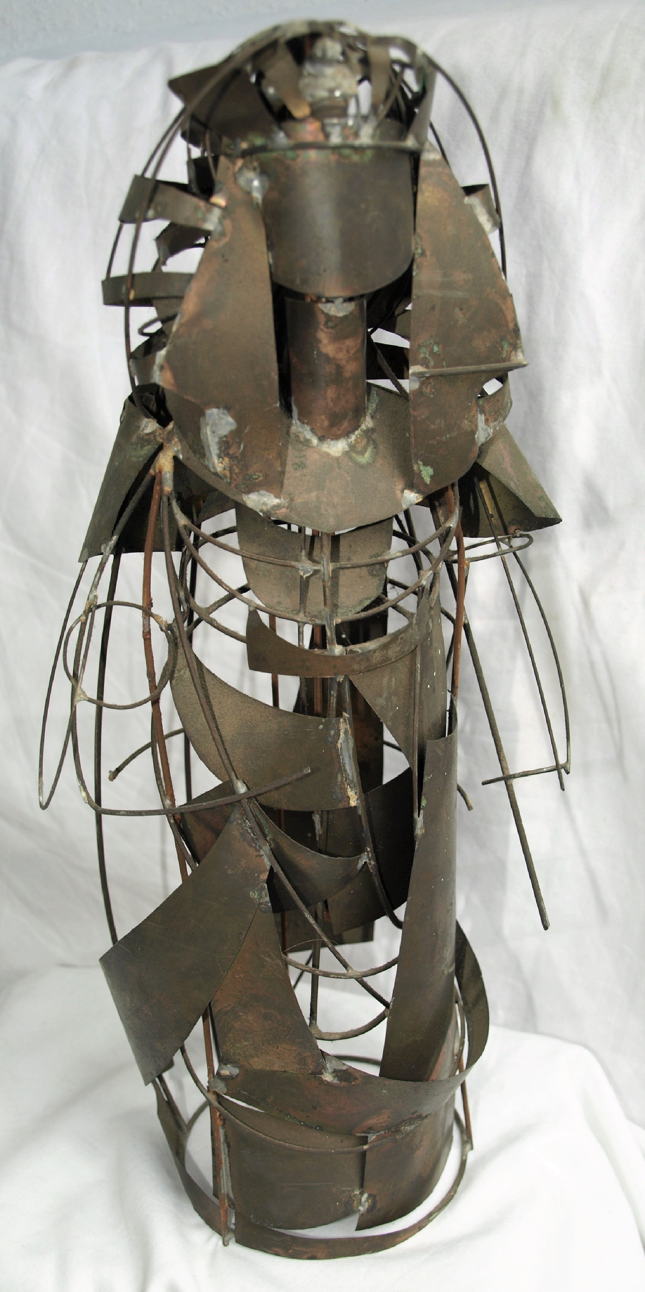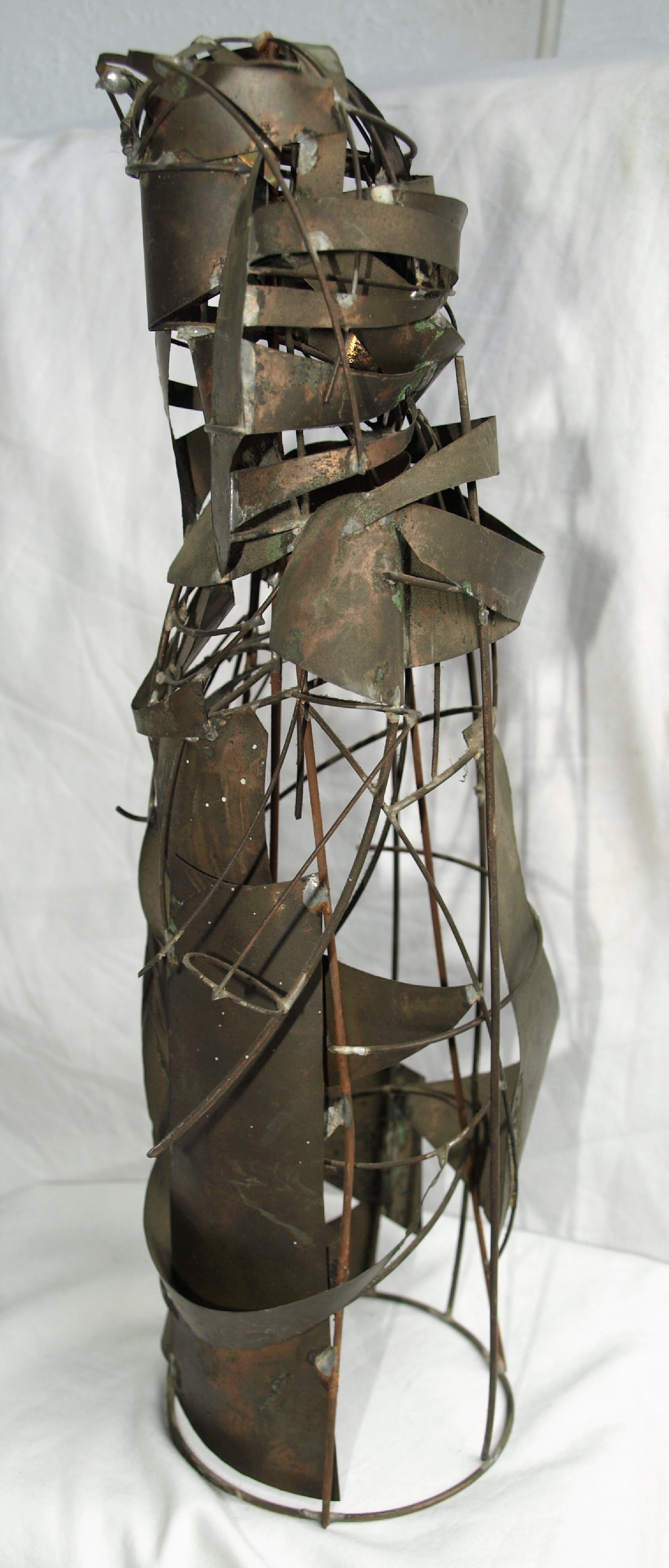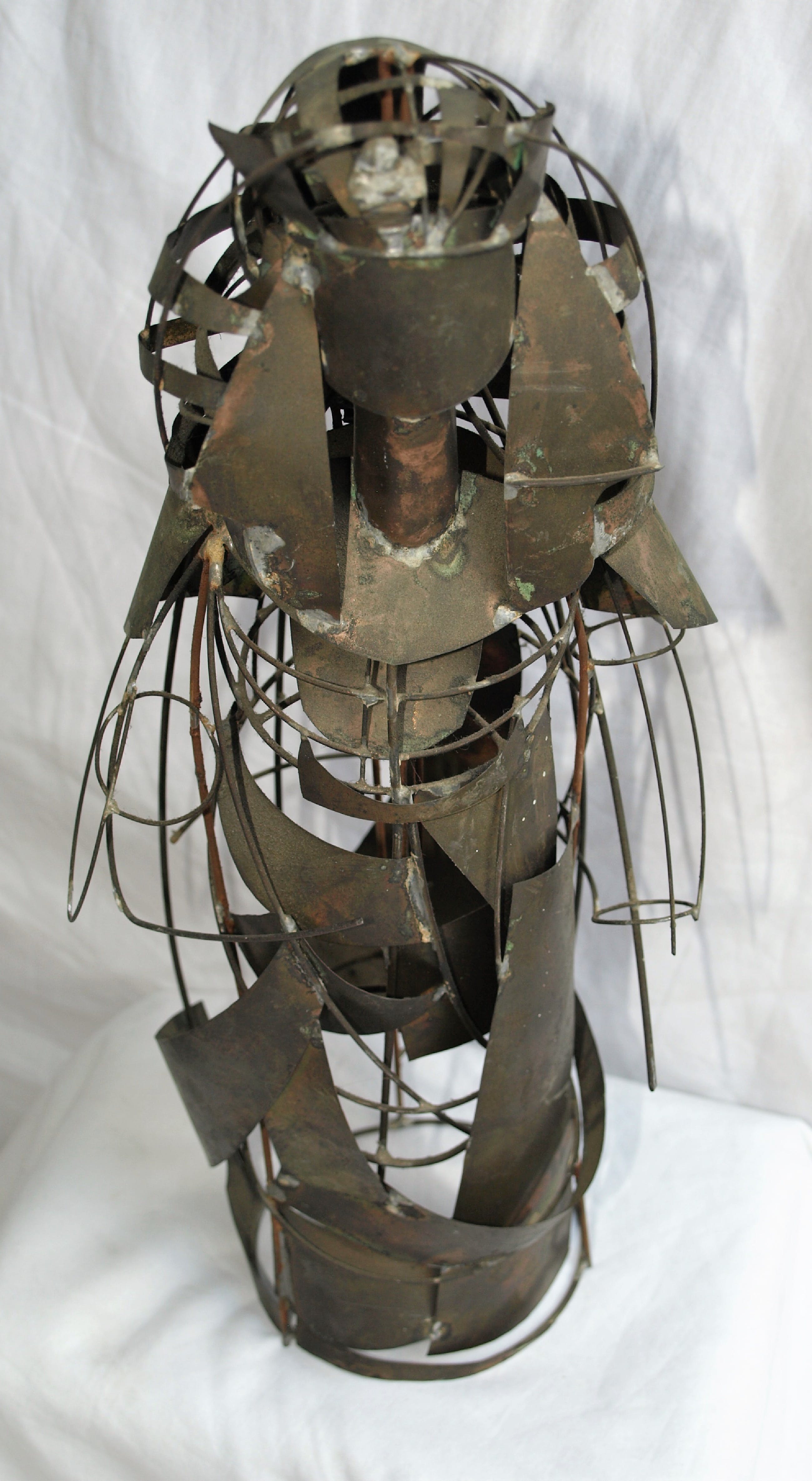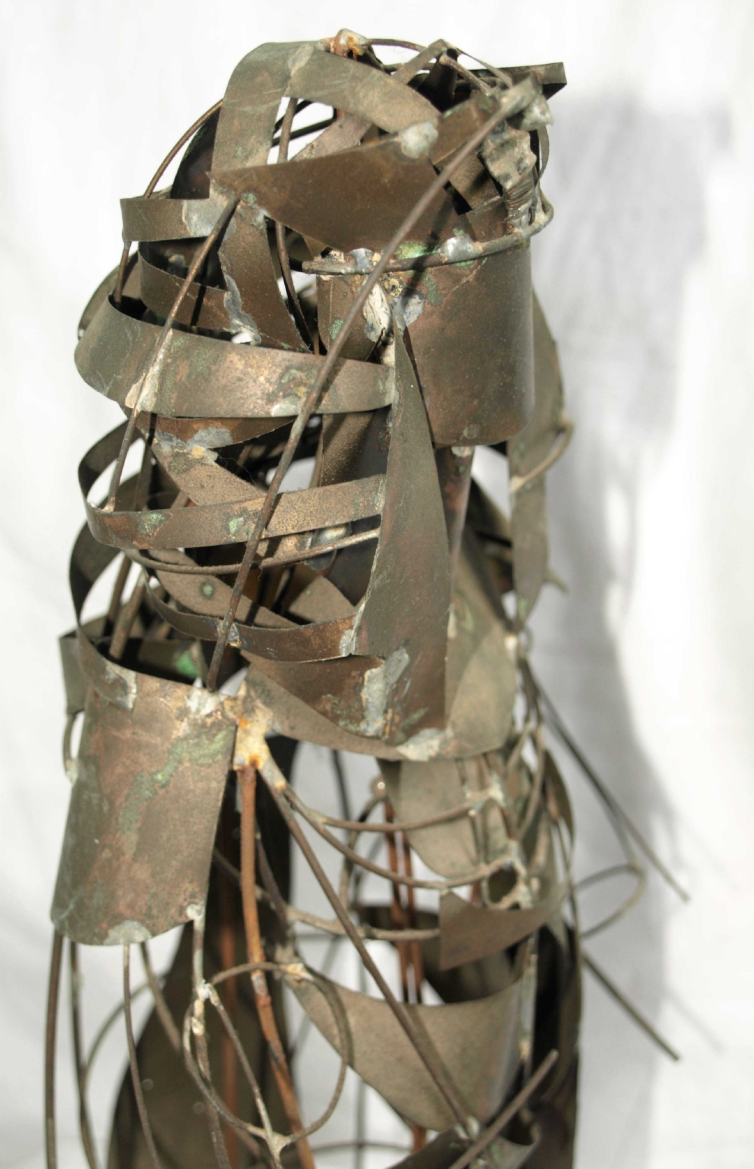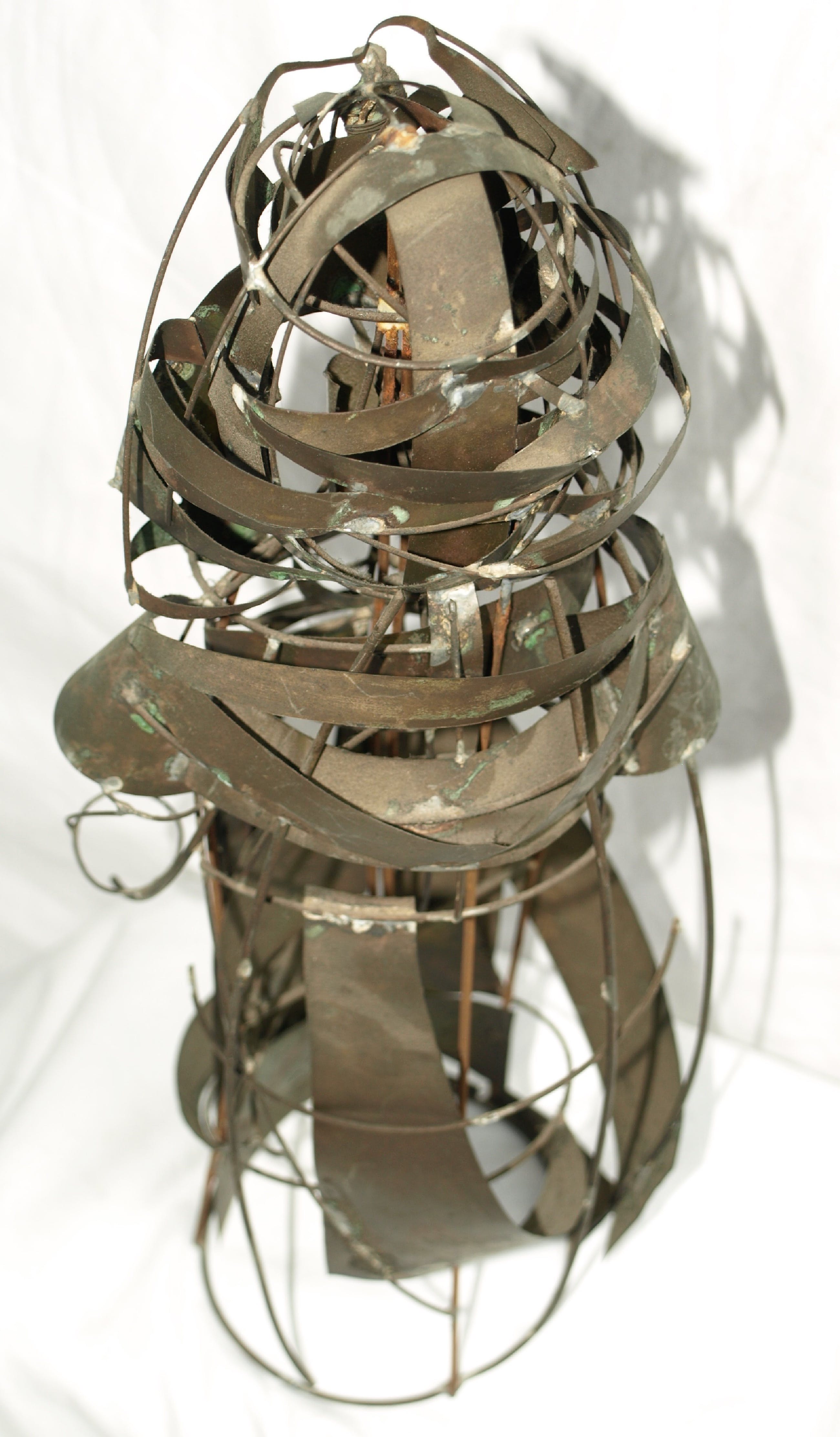 -Gemaakt van aan elkaar gesoldeerde stukken blik en ijzerdraad.
