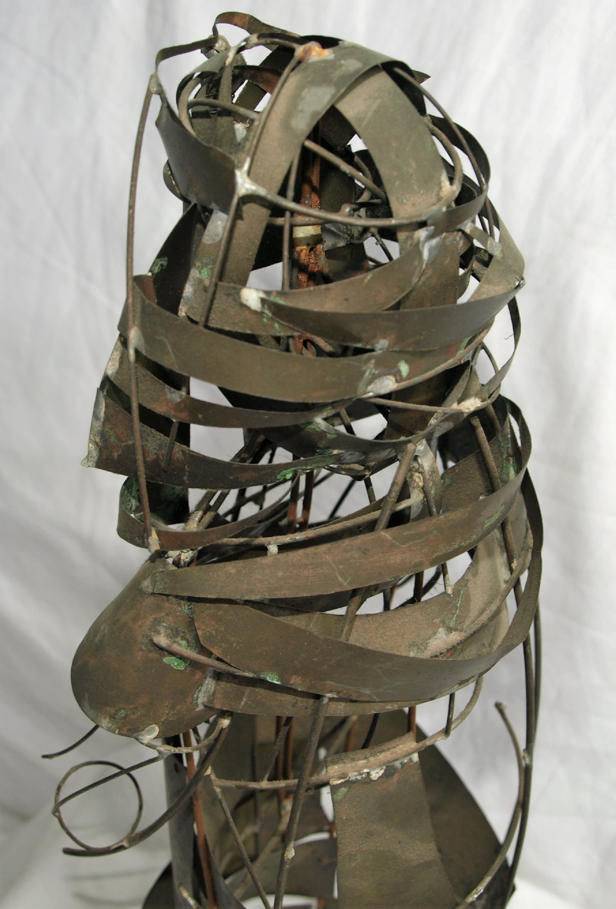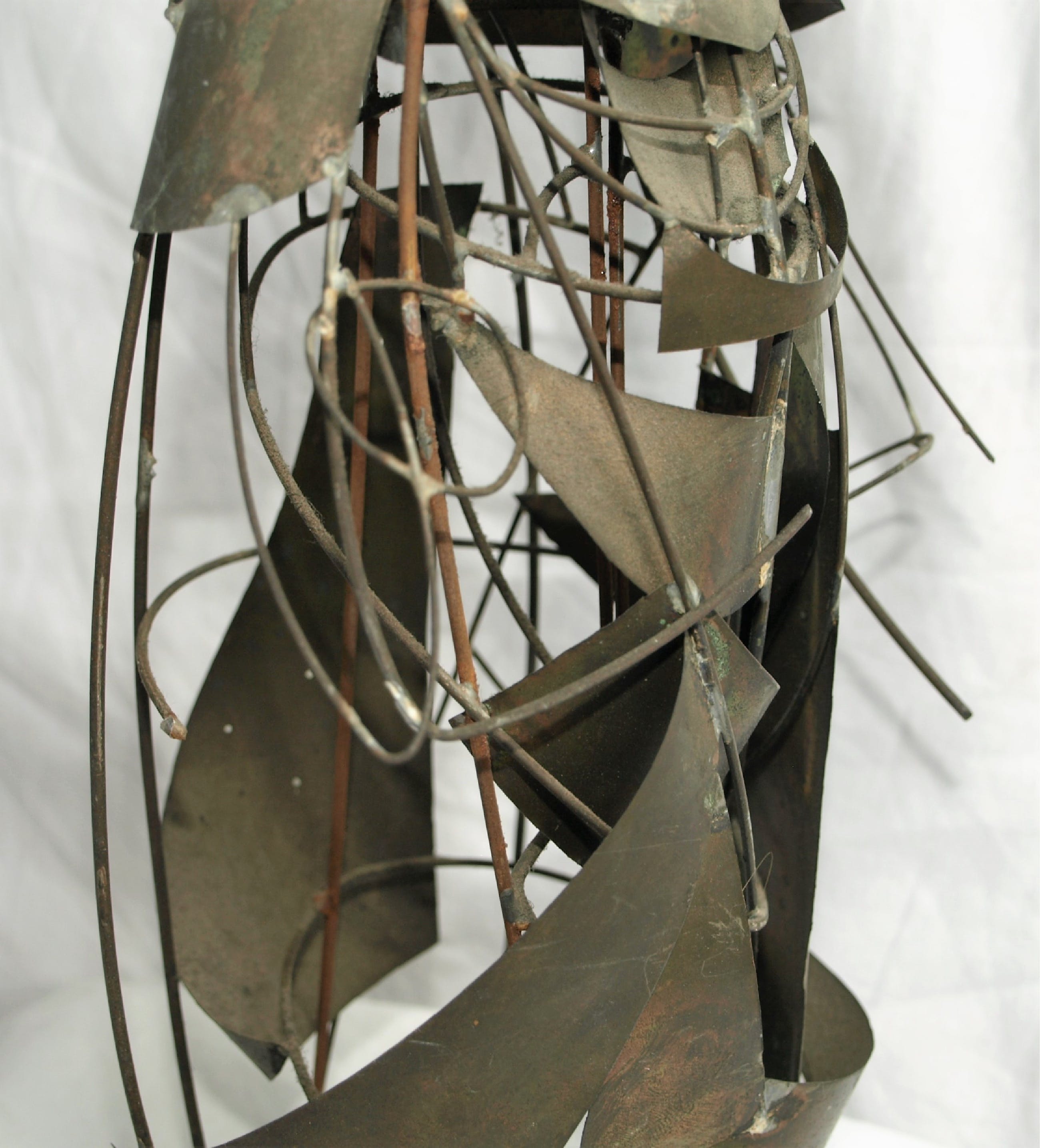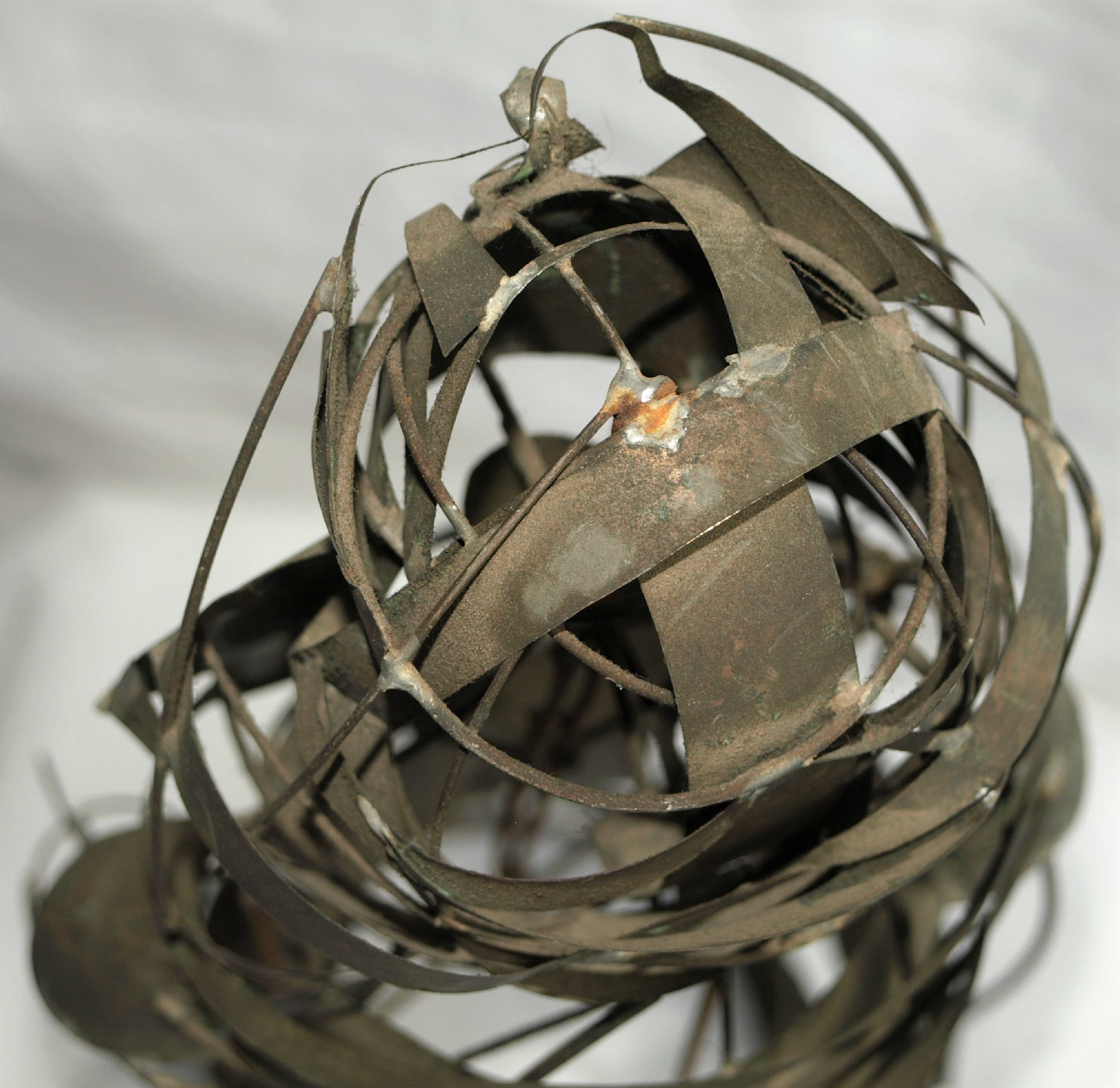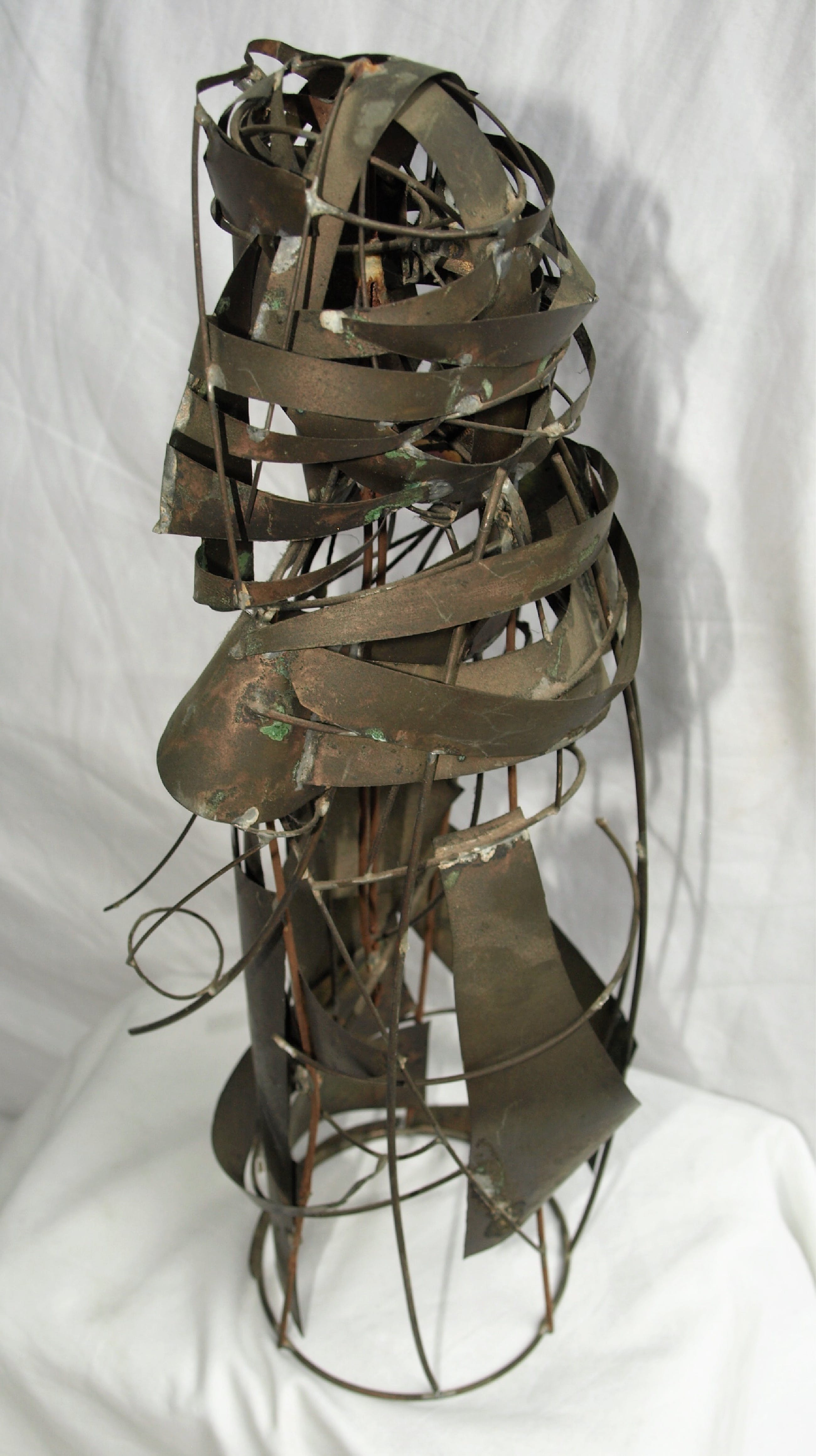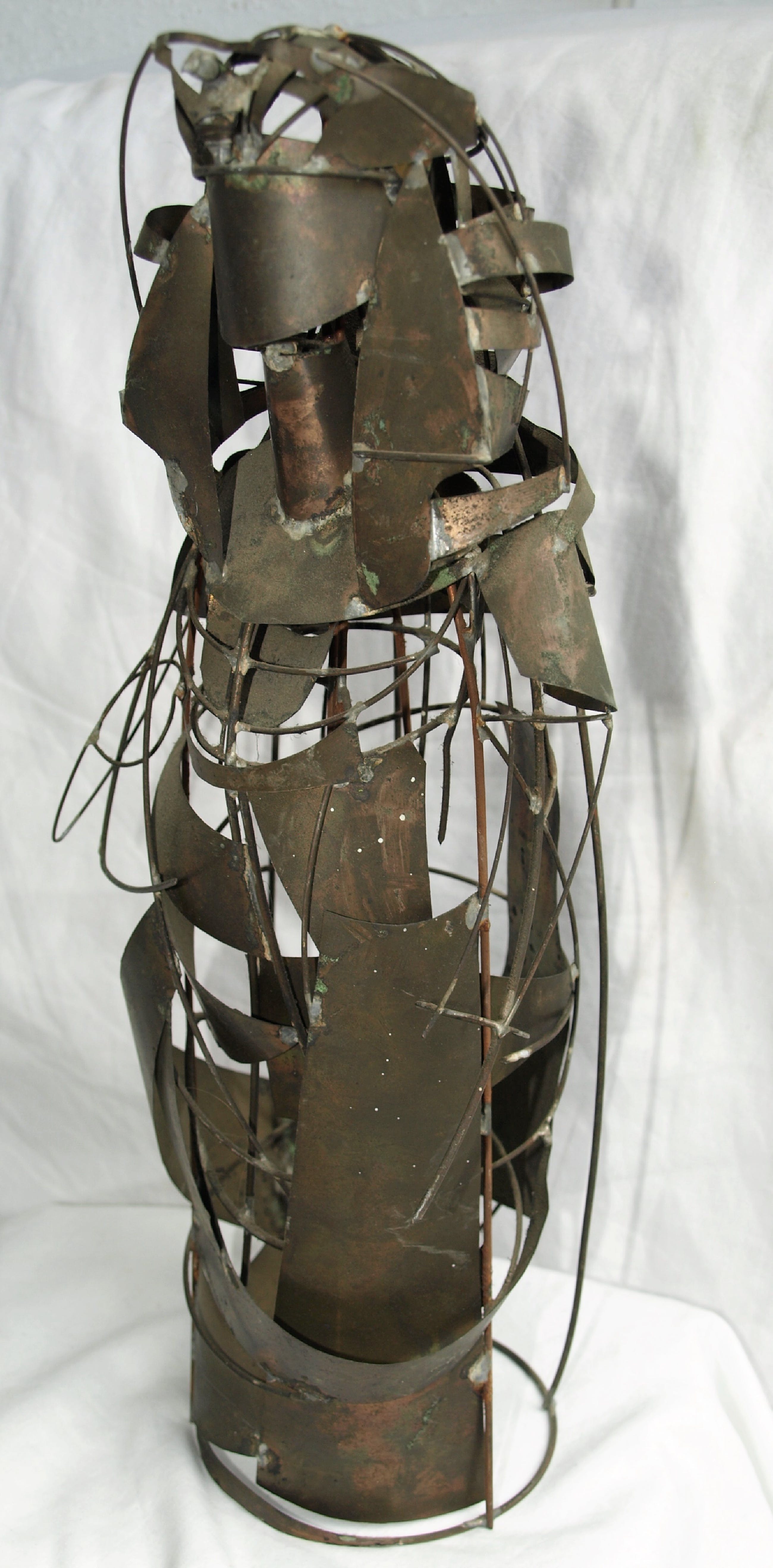 -Gemaakt van aan elkaar gesoldeerde stukken blik en ijzerdraad.
