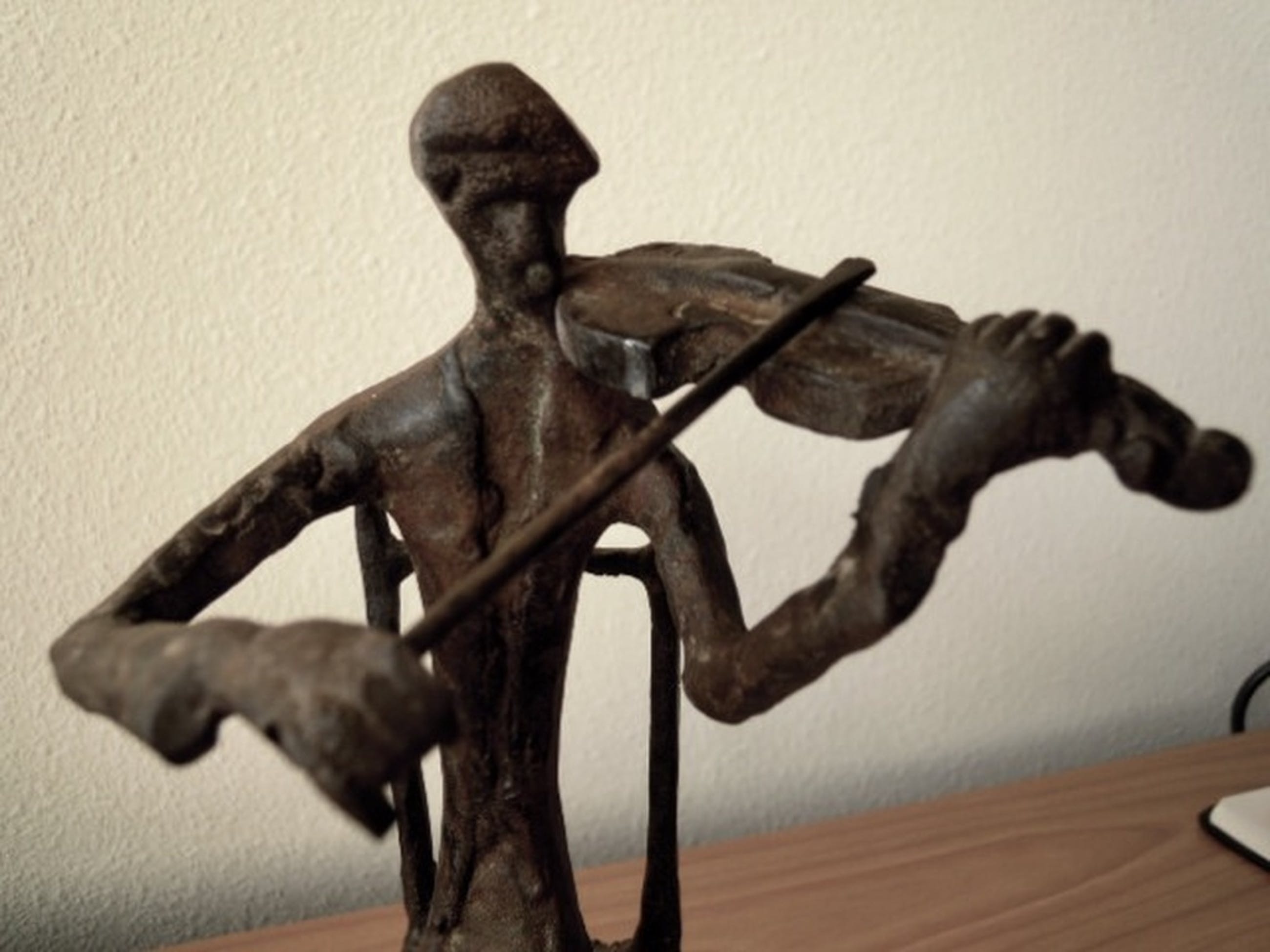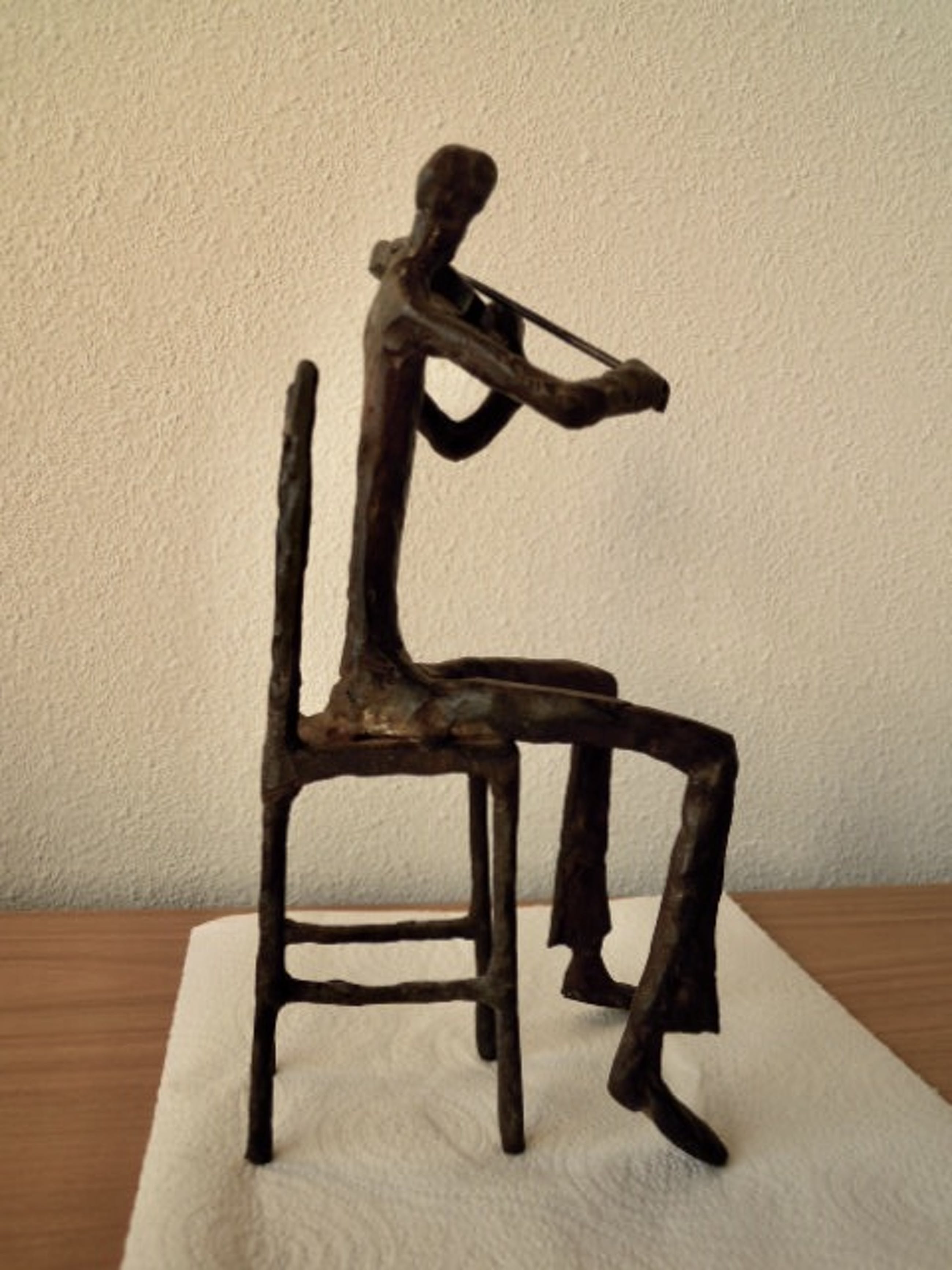 Beeld VIOLIST op stoel - 26 cm hoog.