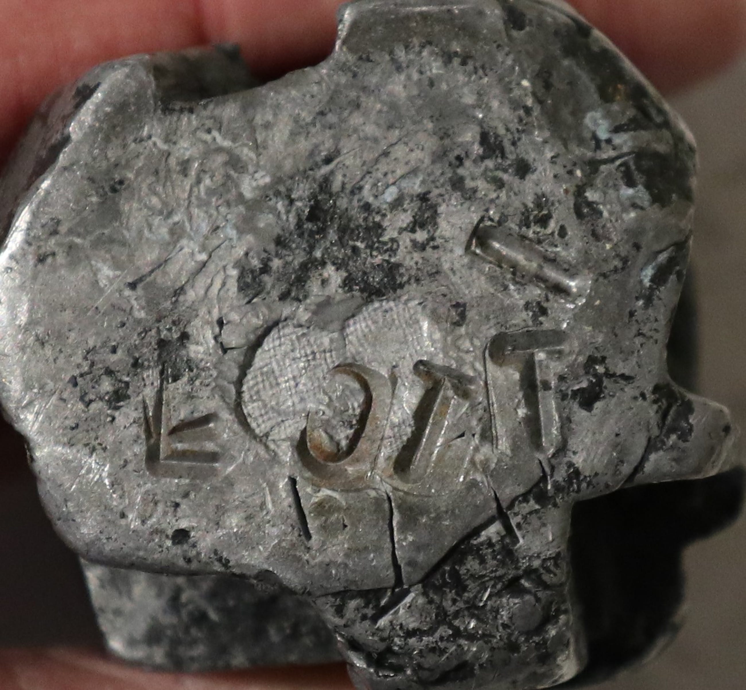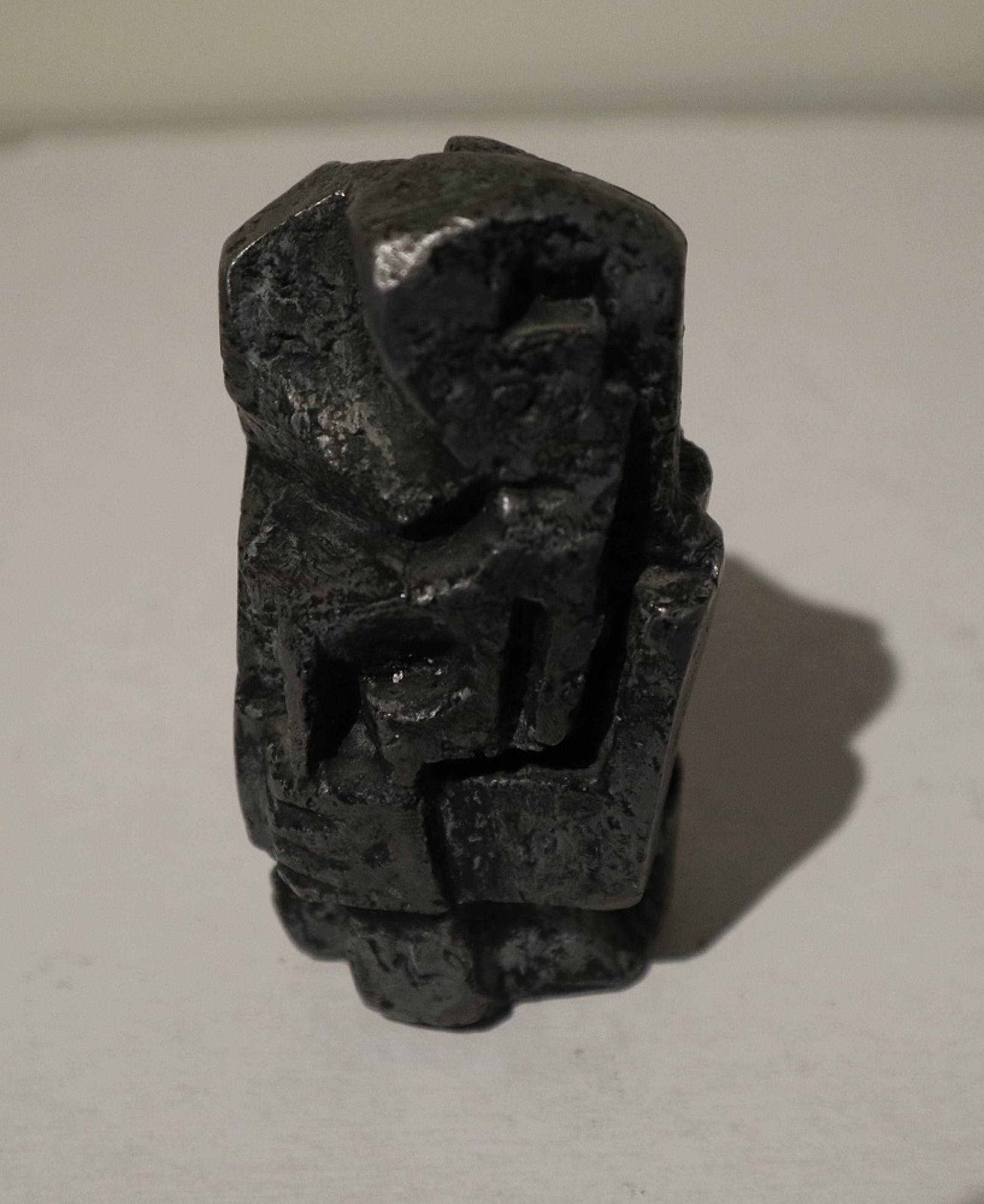 Een fraai bijna kubistisch loden beeldje waarin twee mensen zijn omstrengeld. Van vier zijden een ander aanzicht. Interessant object. Aan de onderzijde met slagletters staat lotti.