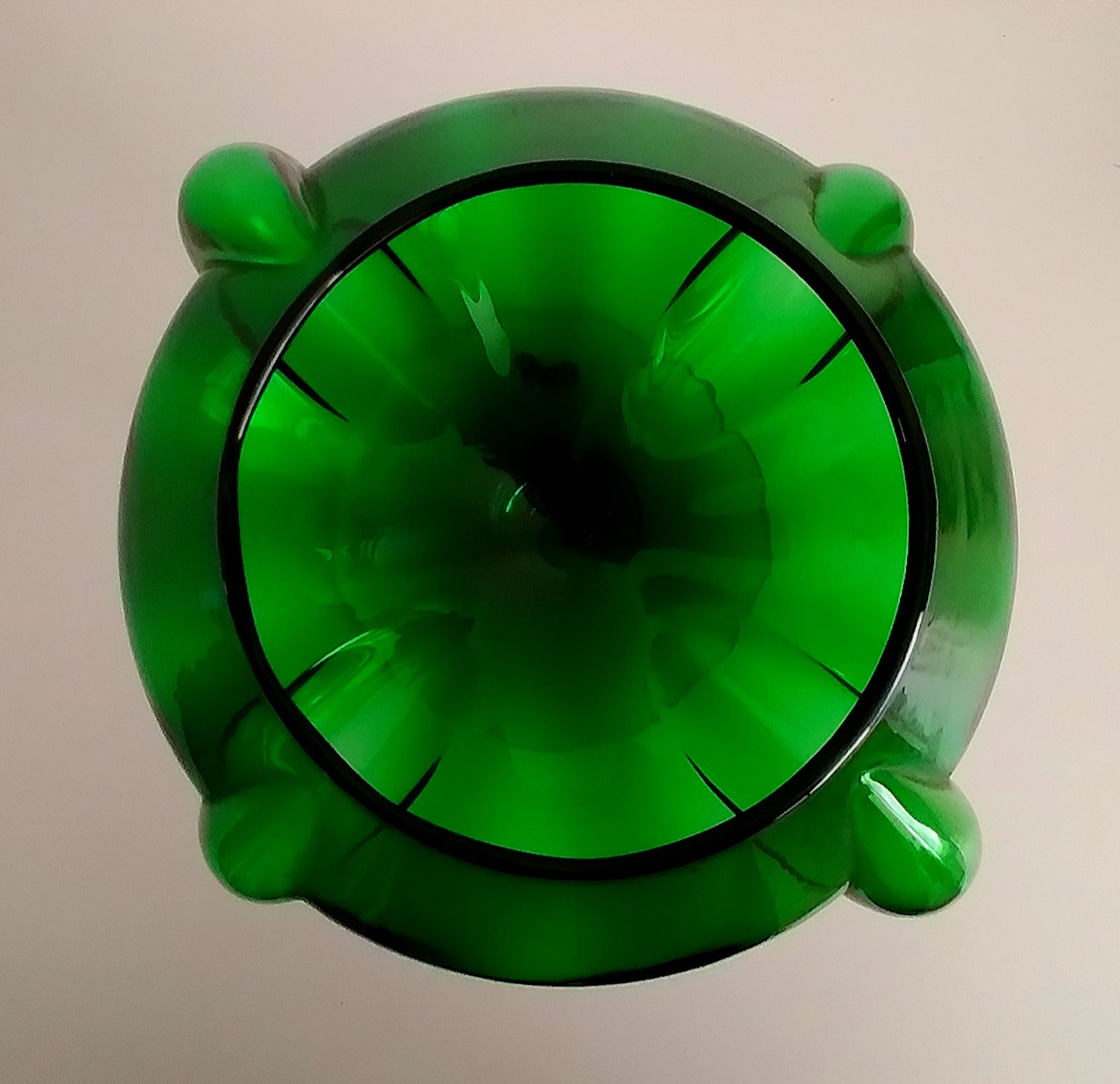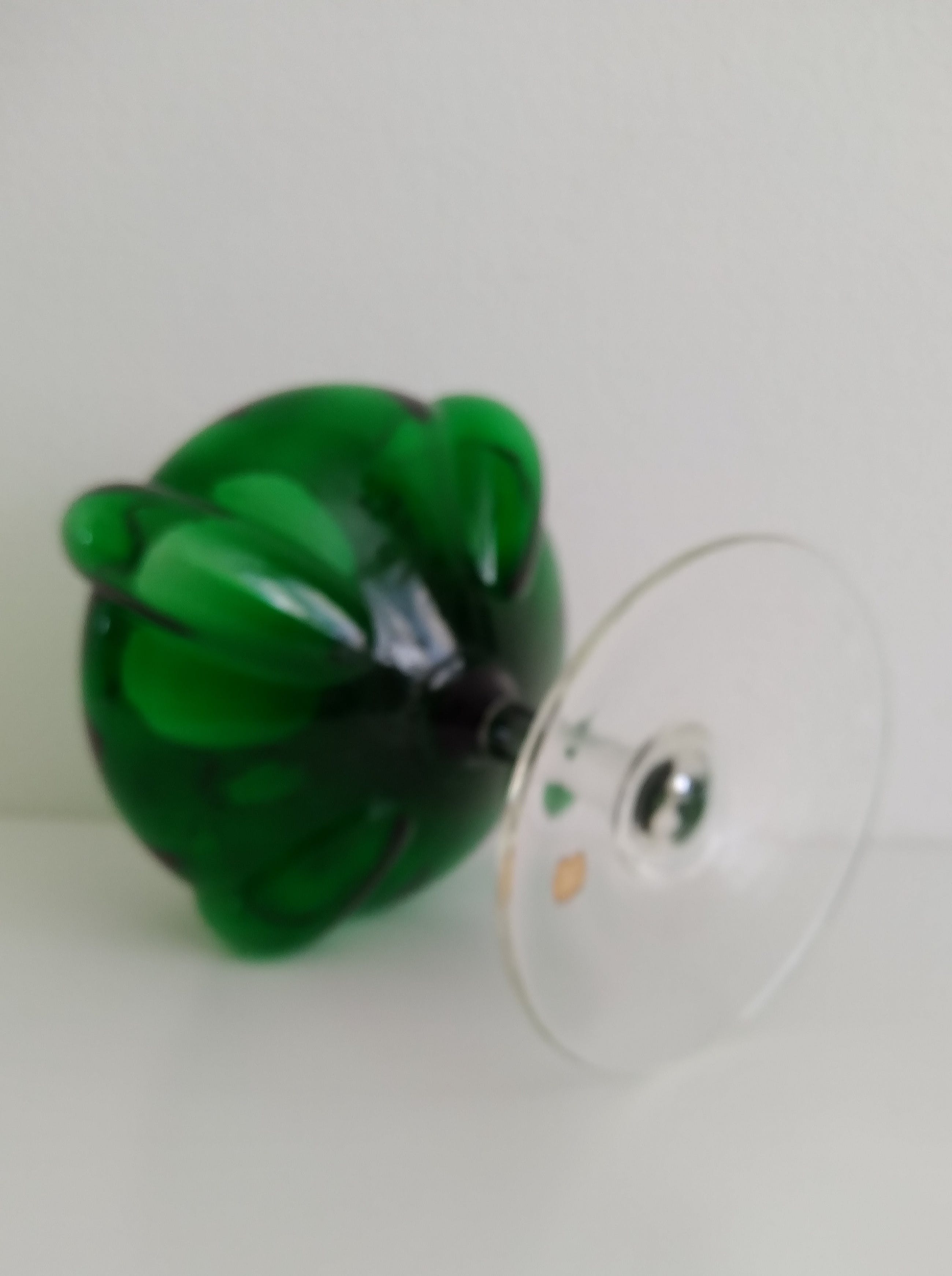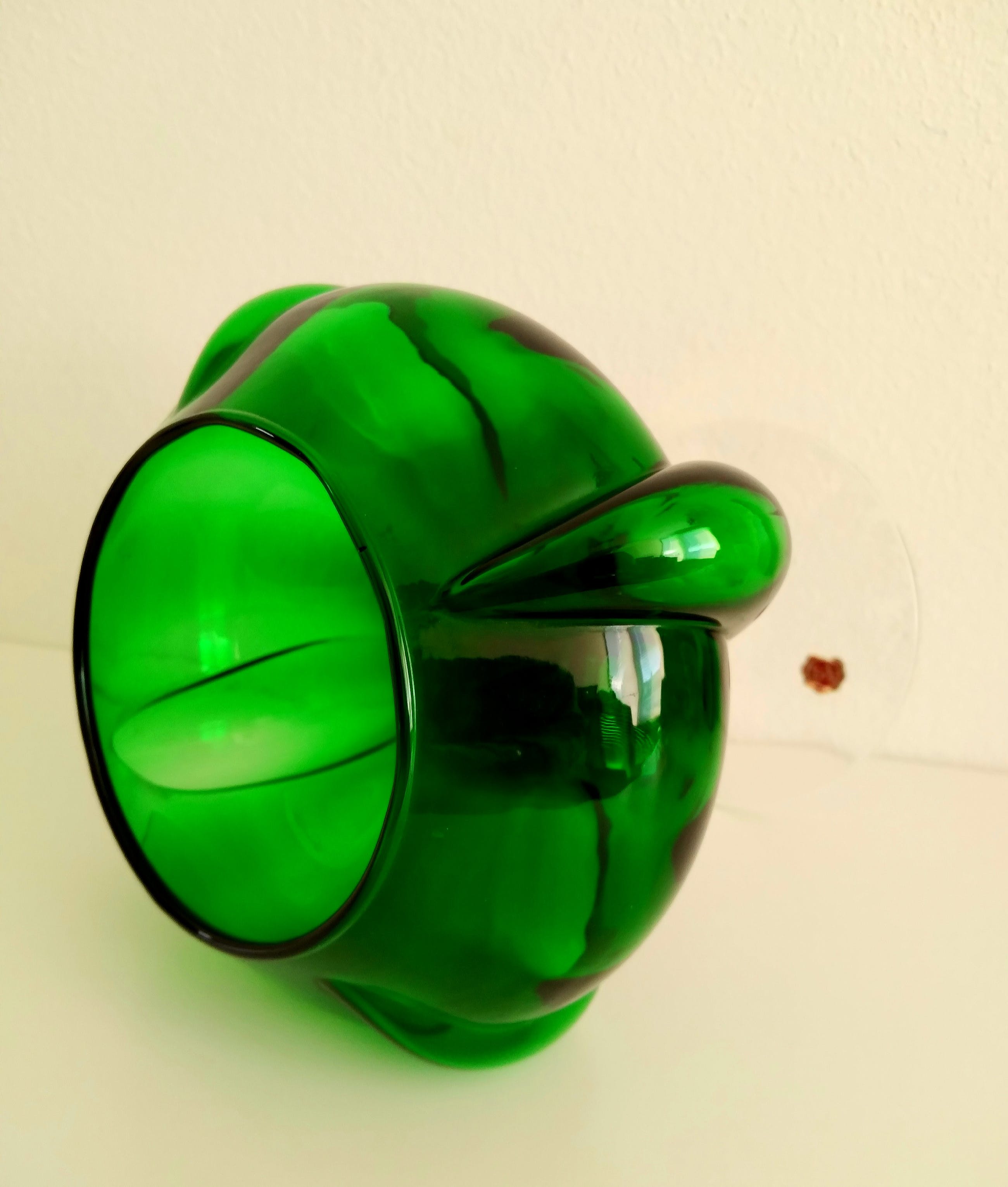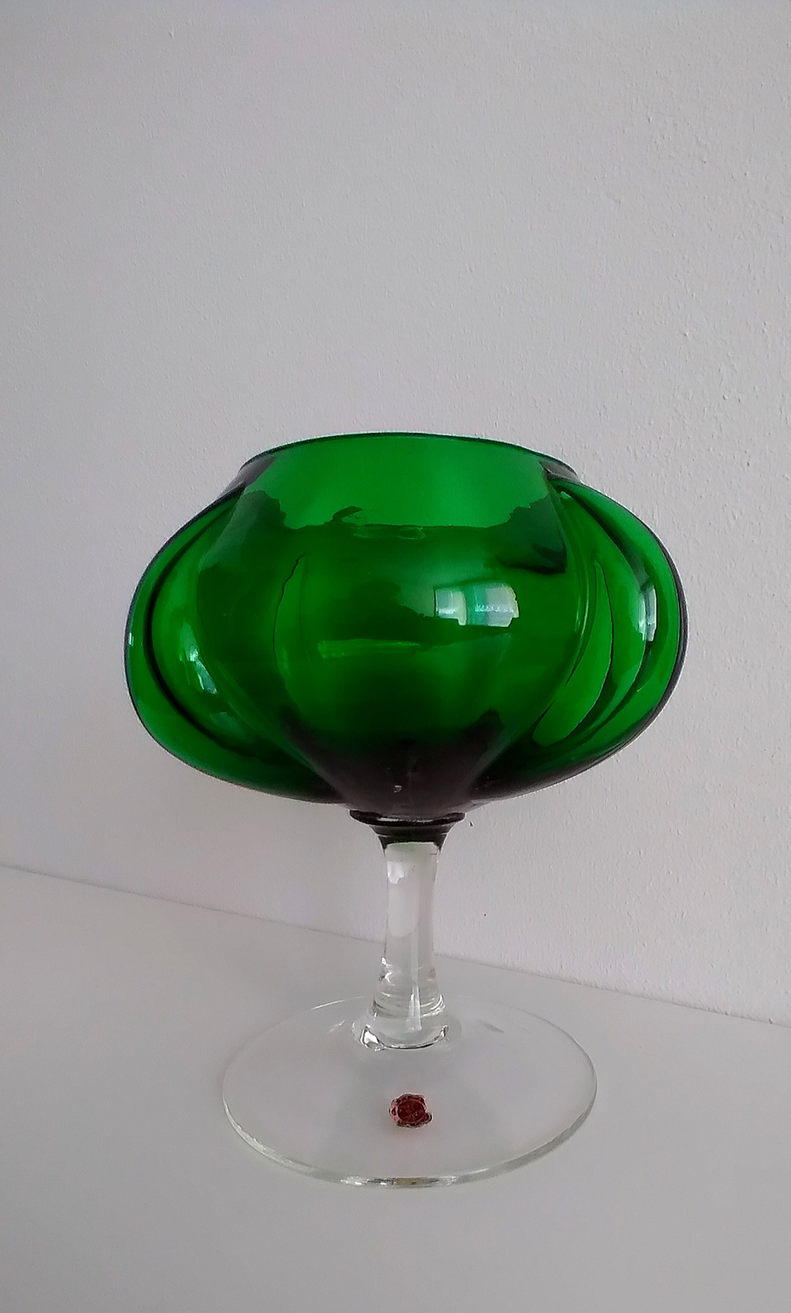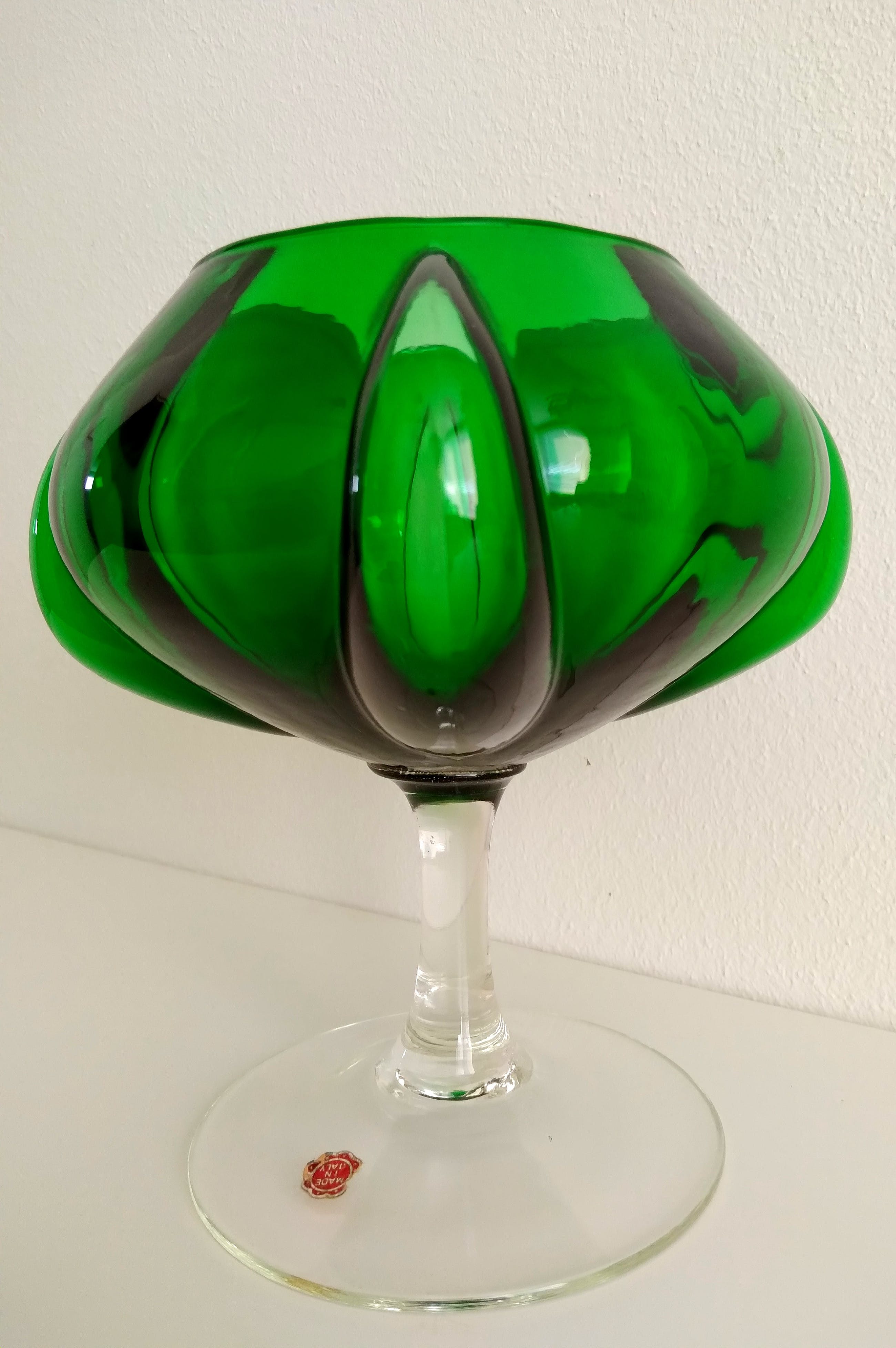 Prachtige vaas in smaragdgroen glas uitgevoerd. Gemaakt in Italië, zie de merksticker.