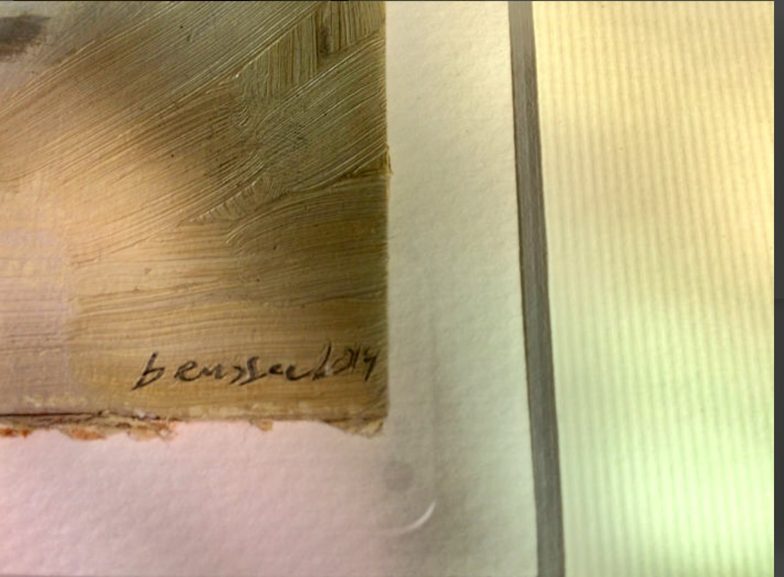 Bijzonder mooi werkje van Ben Sleek ? Gesigneerd met potlood Titel auto Olieverf op karton Unica Afmetingen 32x42cm In Passe-partout en blank houten lijst Conditie uitstekend Wordt aangetekend verzonden