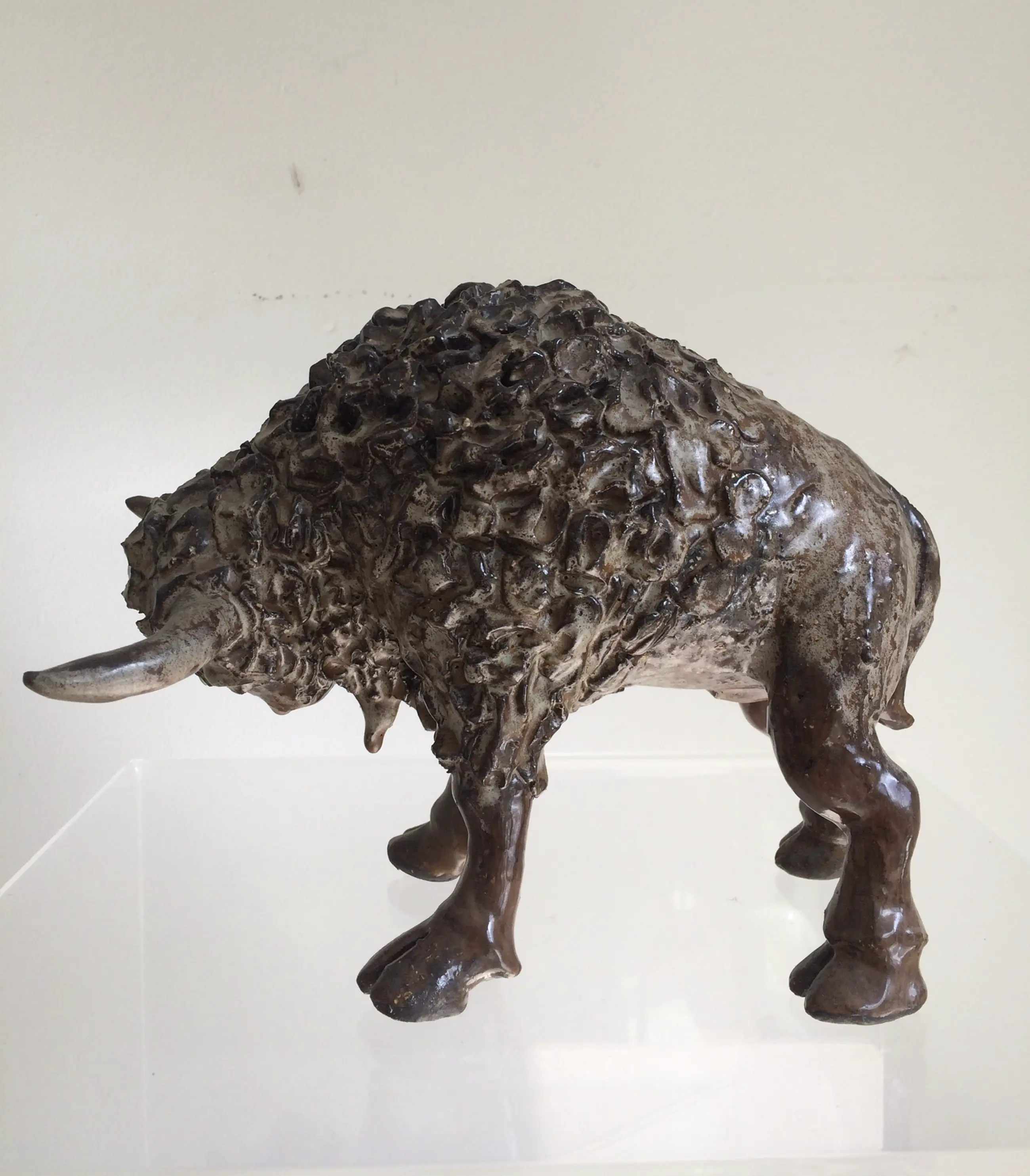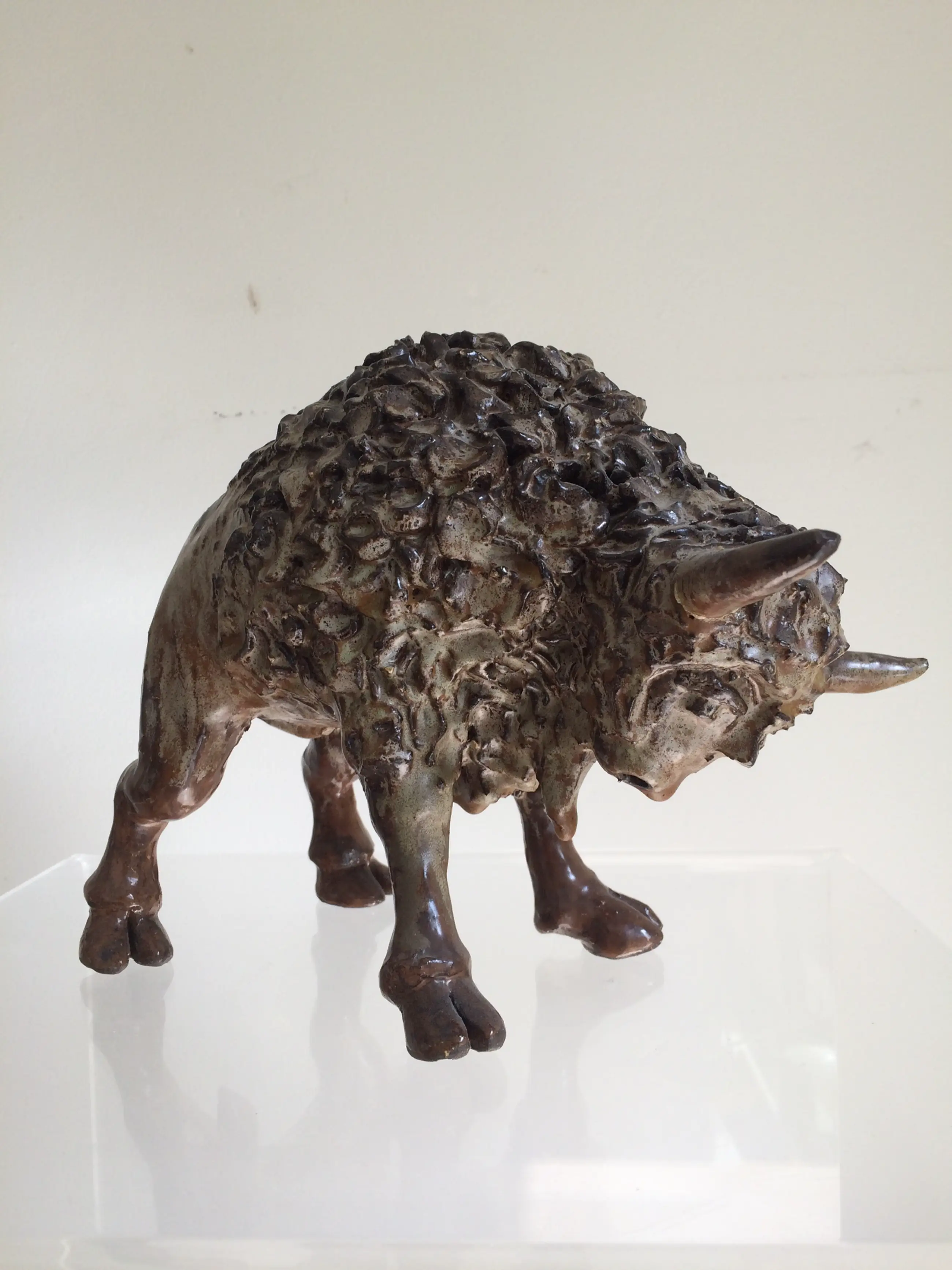 Prachtige Bison, in aanvals houding zo lijkt het. Gedetailleerd geboetseerd en een mooie patina/glazuur.