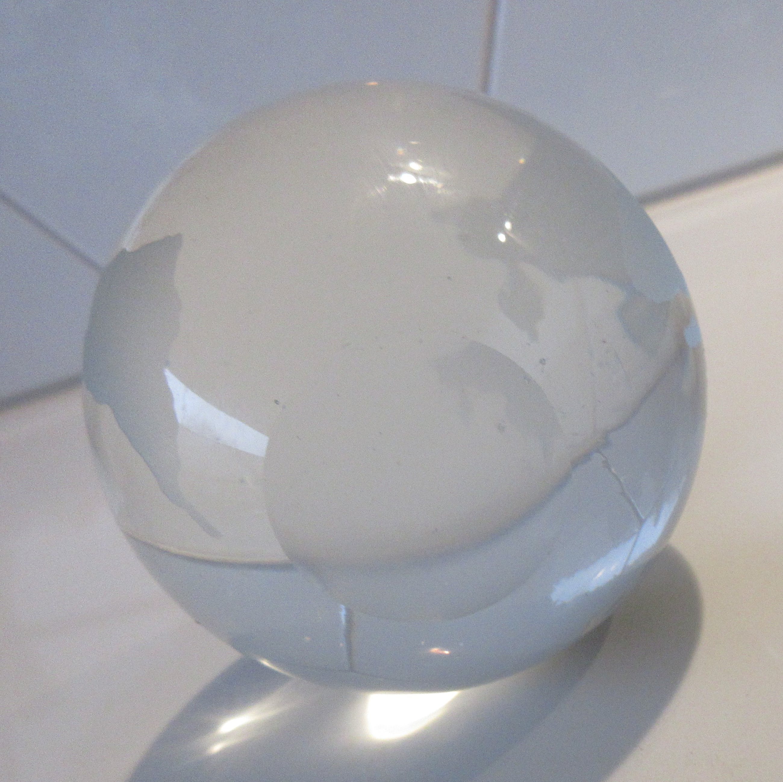 Blank glazen presse papier Globe of wereldbol. In prima onbeschadigde conditie. niet gesigneerd.