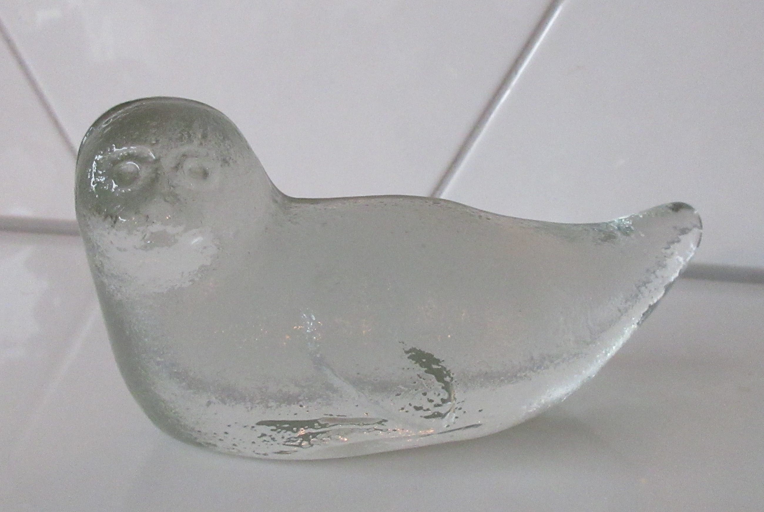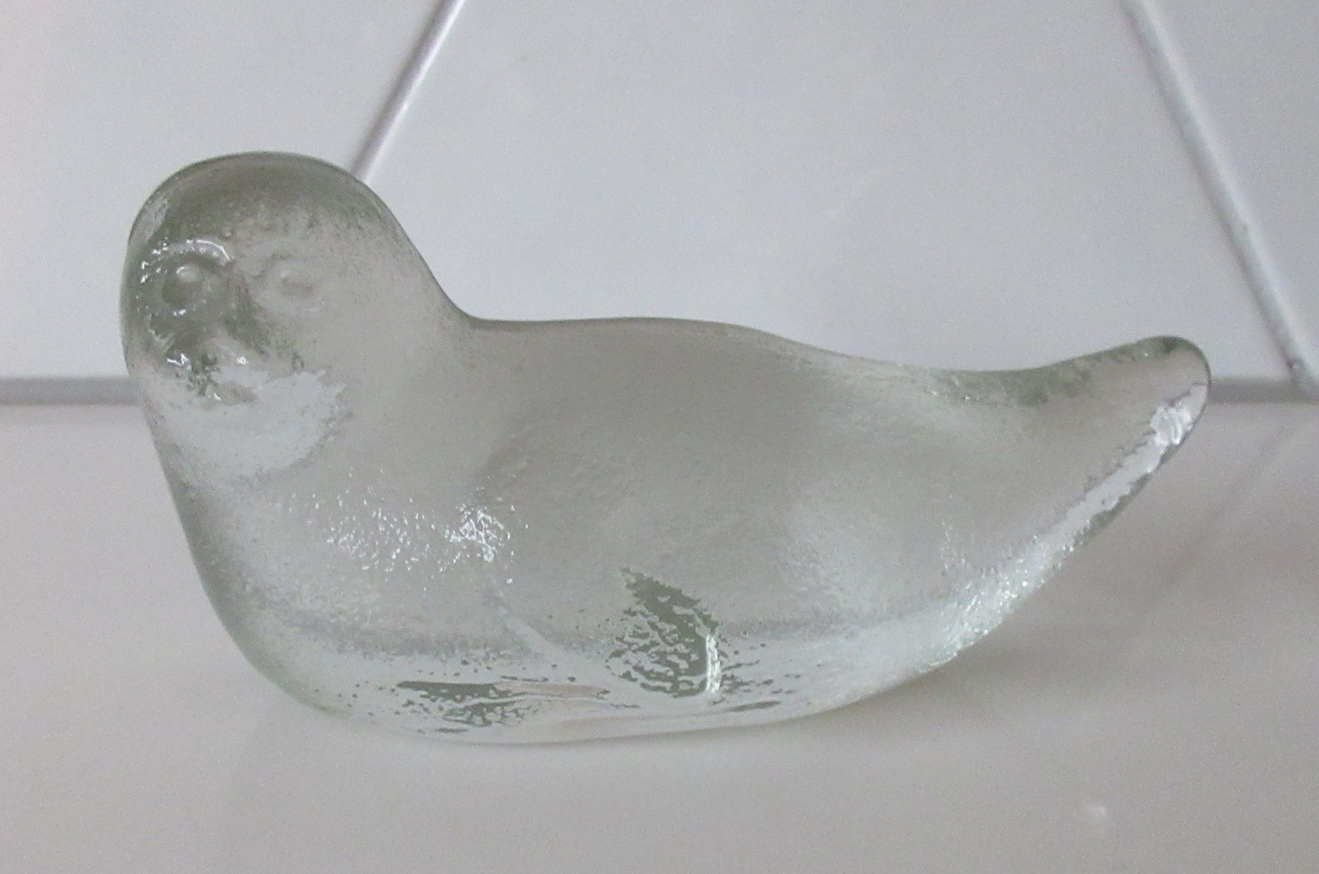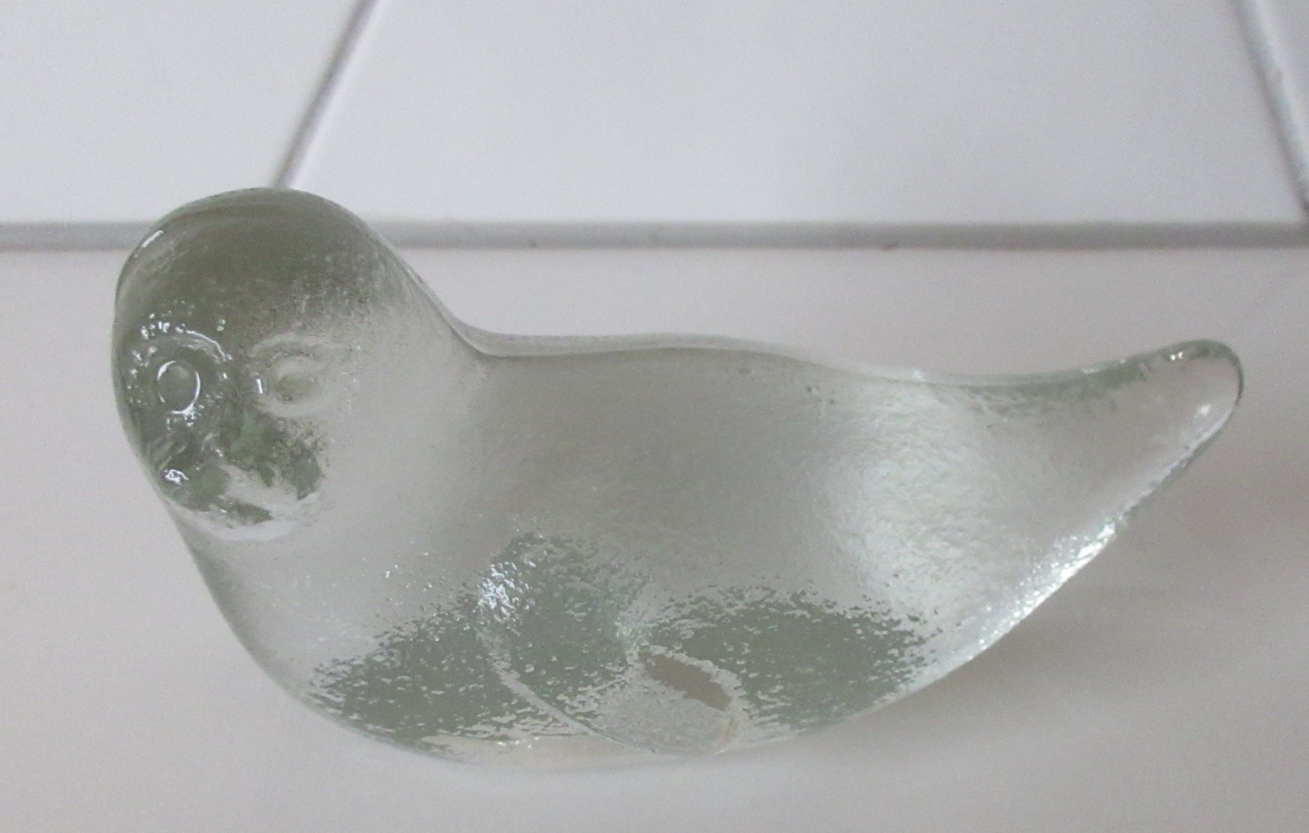 Blanke blokglazen presse papier van een zeehond. mogelijk van Scandinavische of Duitse origine. niet gemerkt.