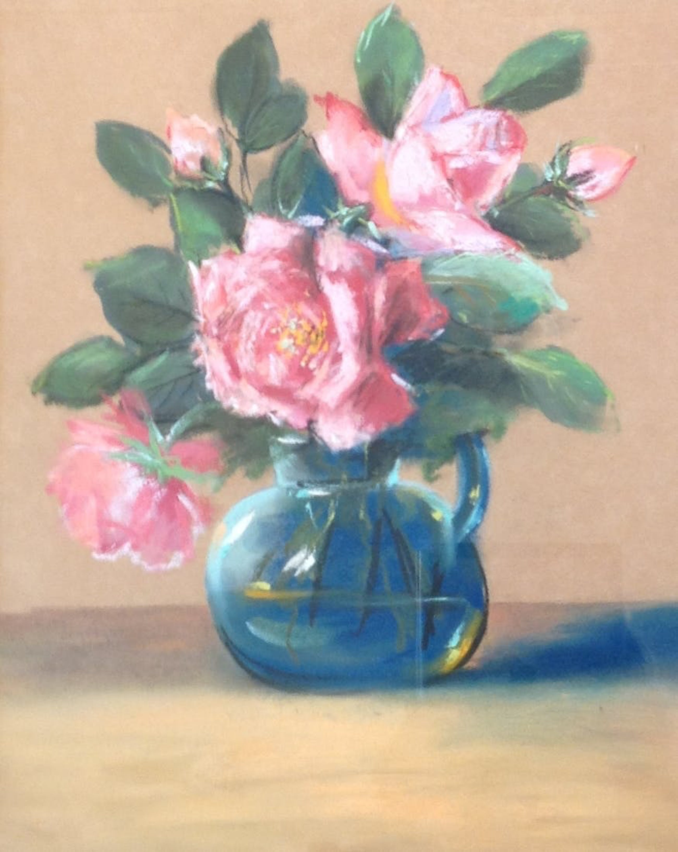 Onbekend - blauwe vaas met rozen - Verkocht