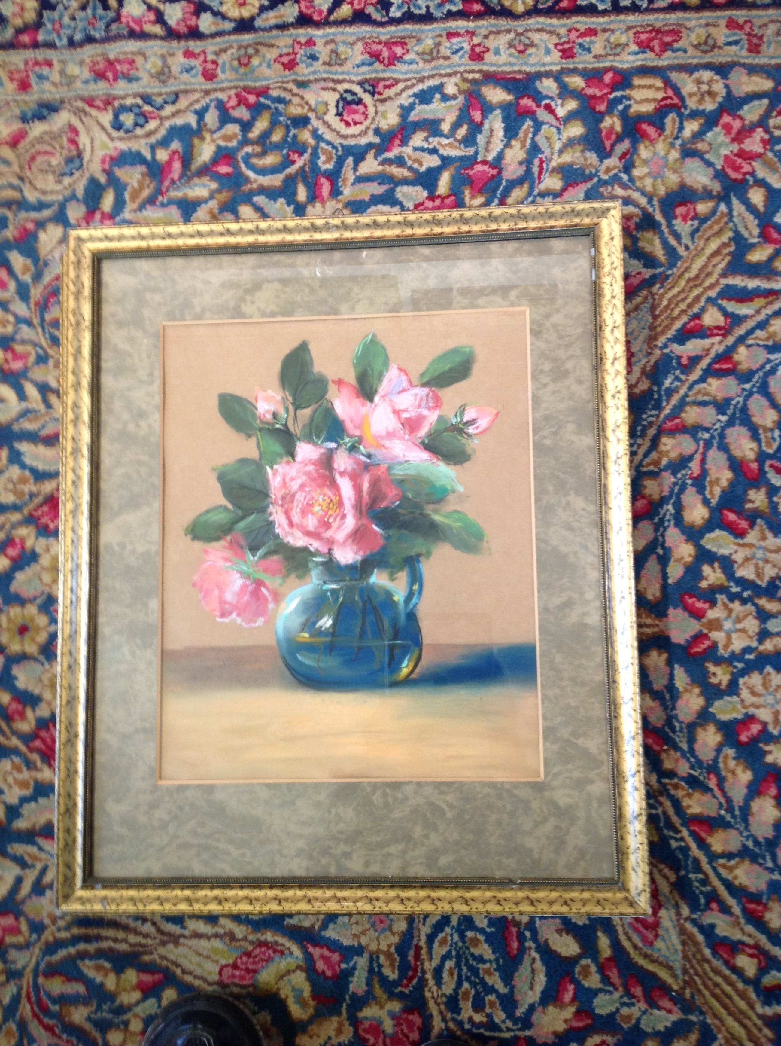Niet of onleesbaar gesigneerd - blauwe vaas met rozen kopen? Bied vanaf 1!