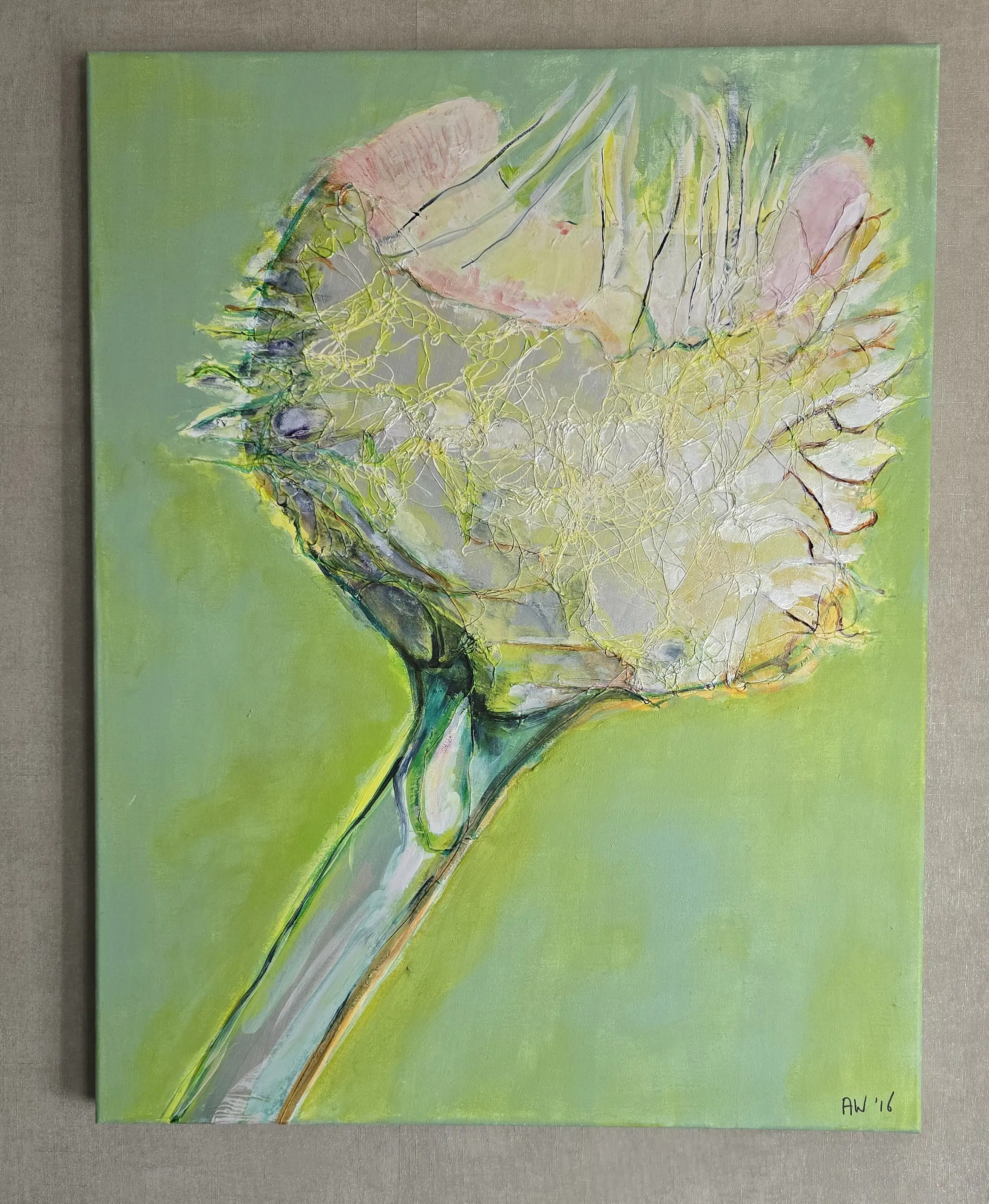 Mooi schilderij van een bloem. In perfecte staat. Gesigneerd met AW '16. Voor mij onbekend wie deze kunstenaar is.