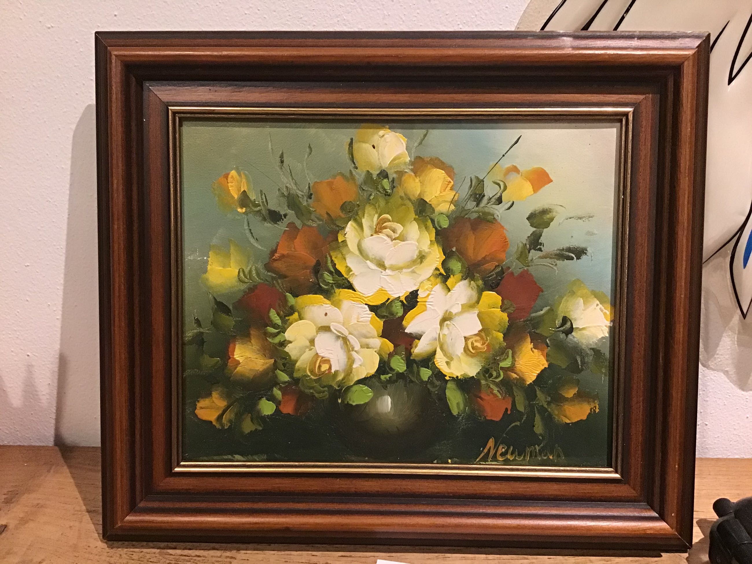 Mooi helder stilleven met bloemen in vaas. Uitbundig. Gesigneerd met Neuman maar welke Neuman is me niet duidelijk.